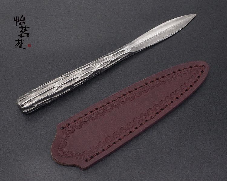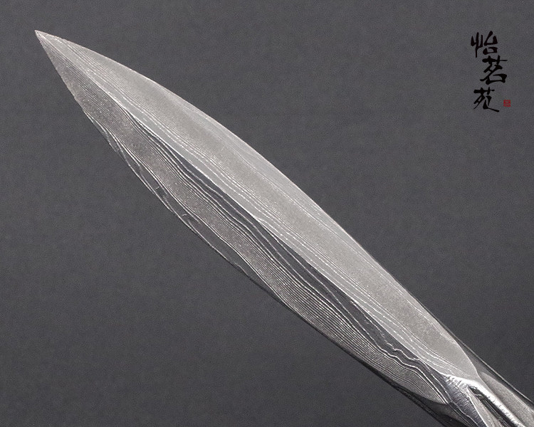 一款手工鍛打的精美不銹花紋鋼普洱茶刀