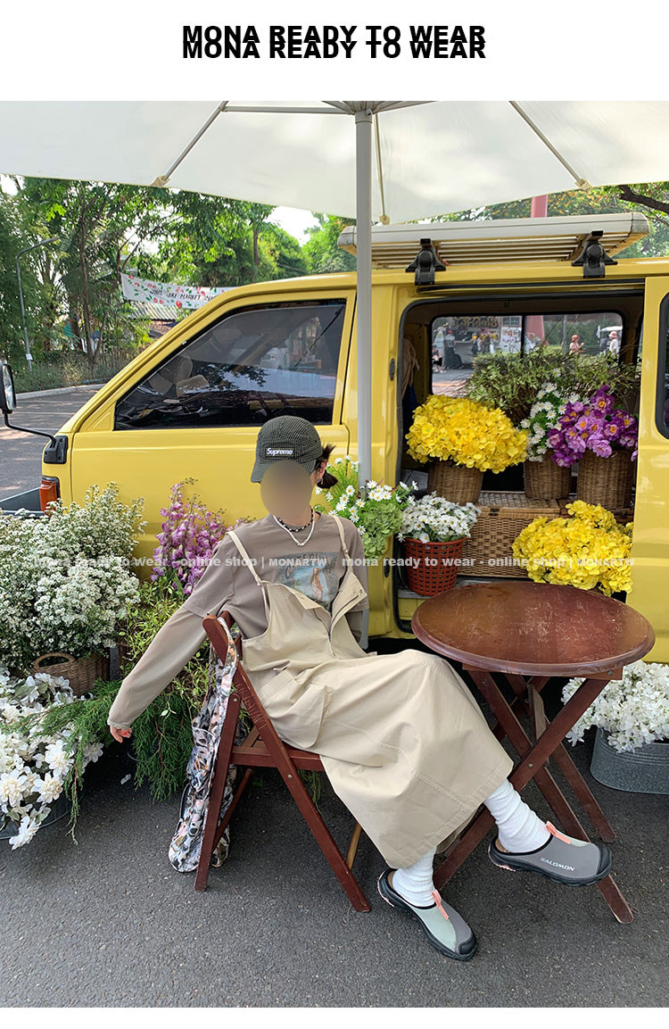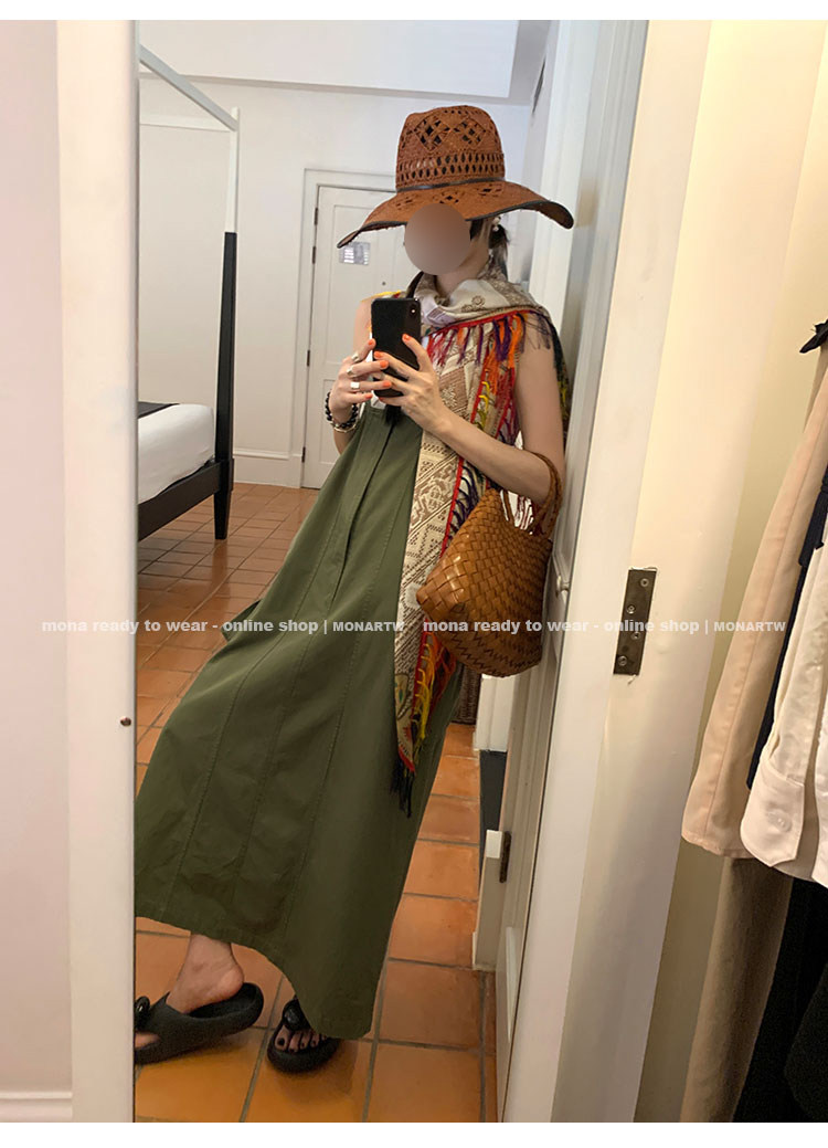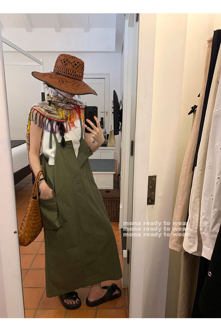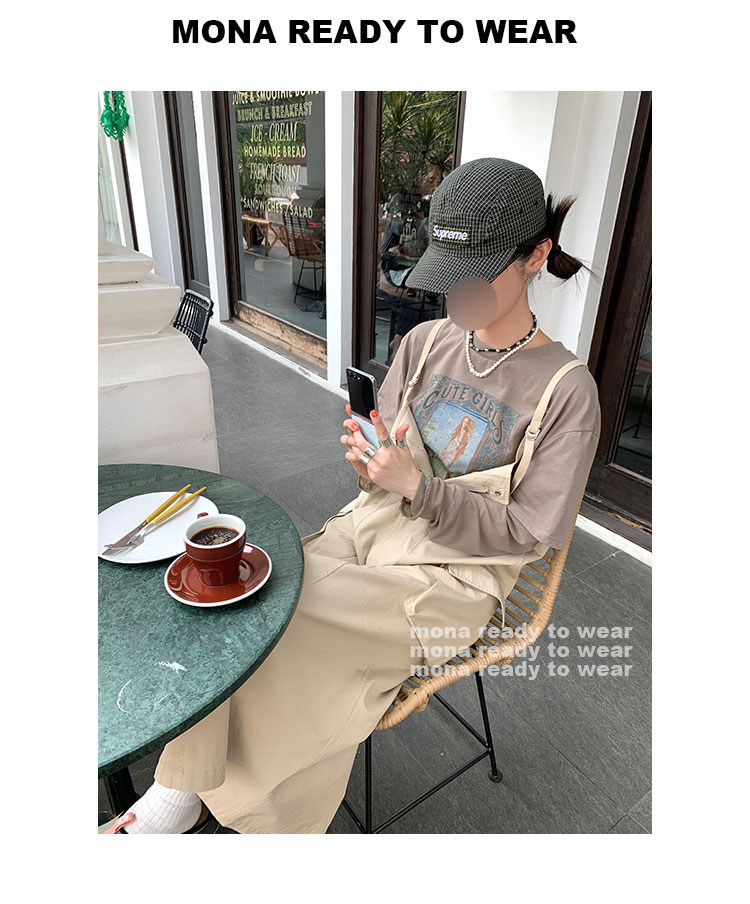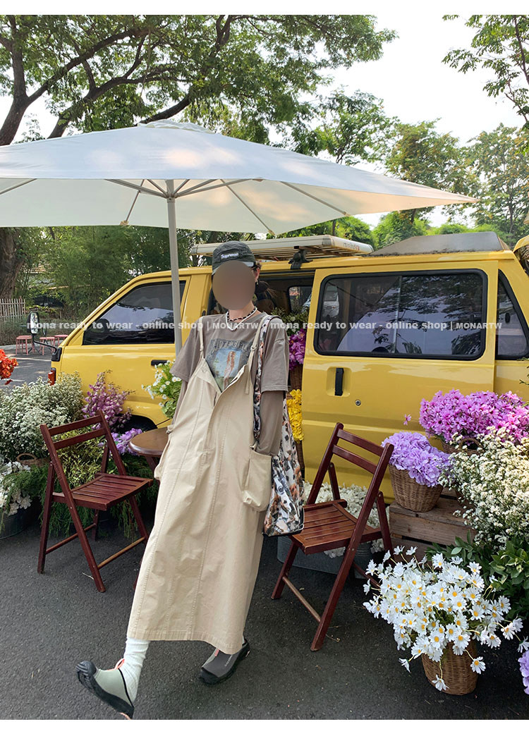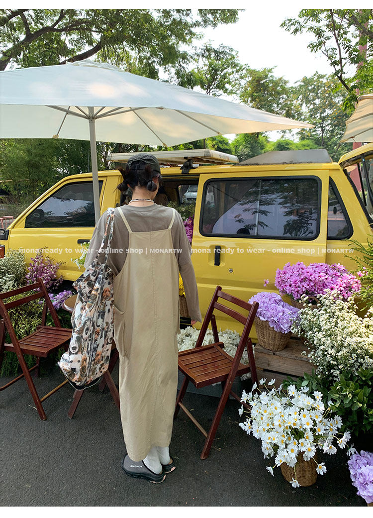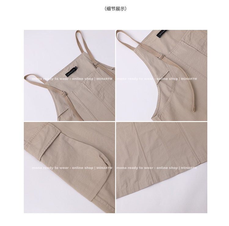 大口袋直筒型背帶褲,裙身呈H型輪廓,遮肉顯瘦