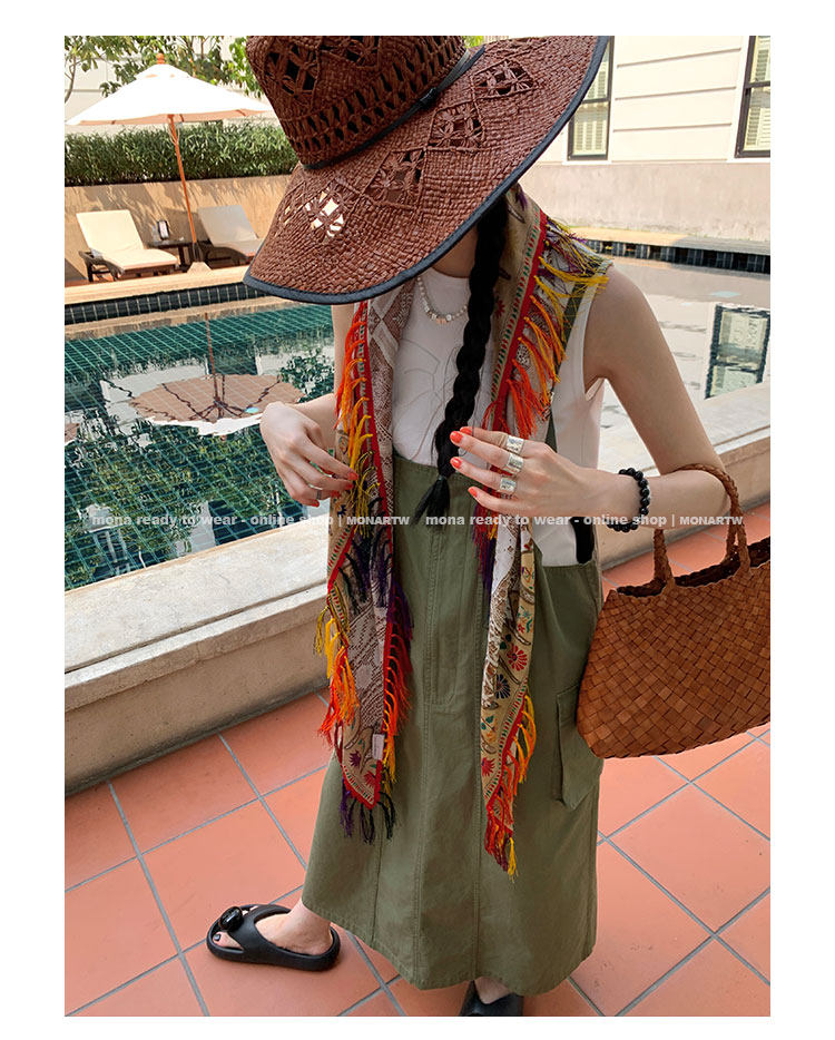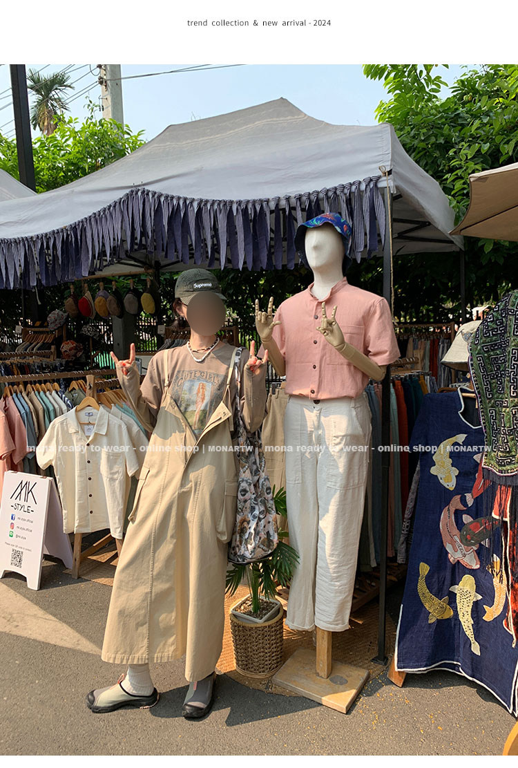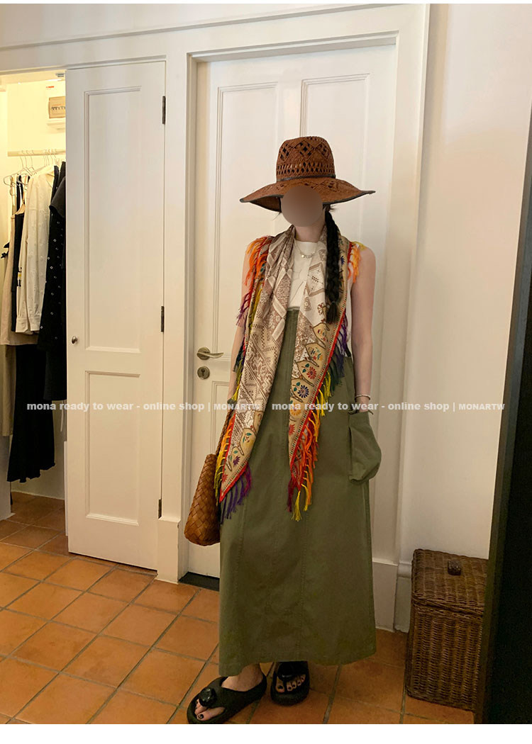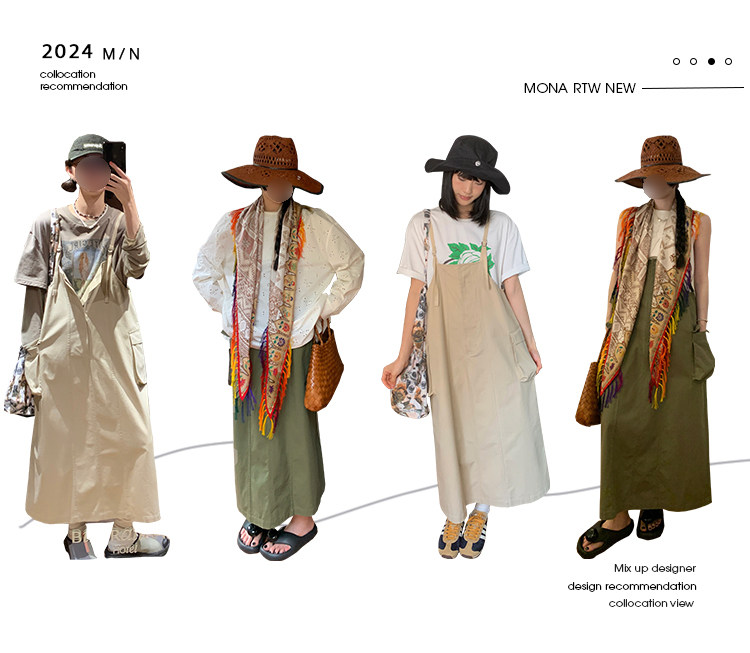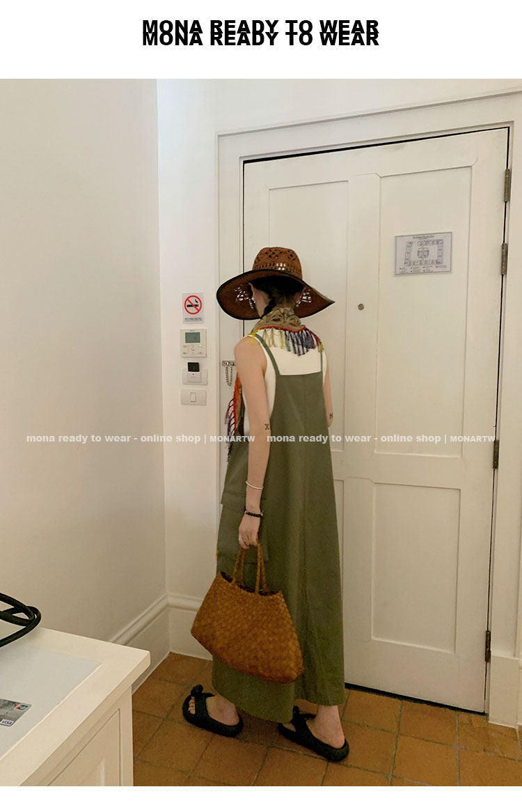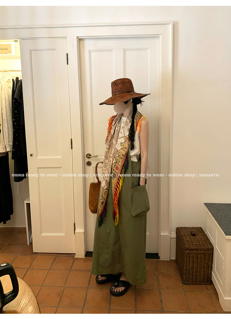 大口袋直筒型背帶褲,裙身呈H型輪廓,遮肉顯瘦