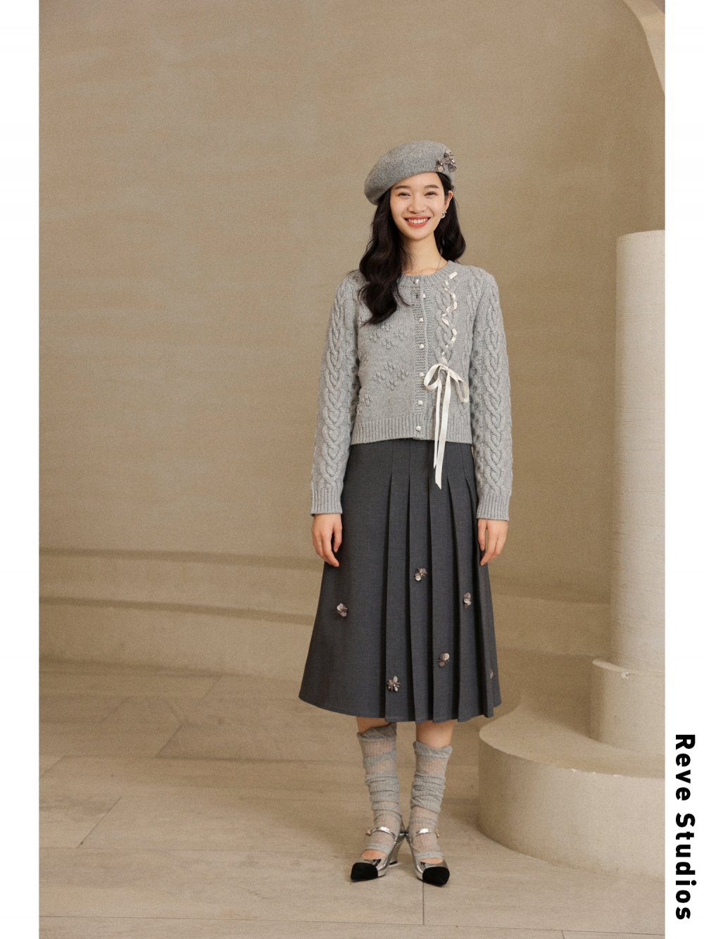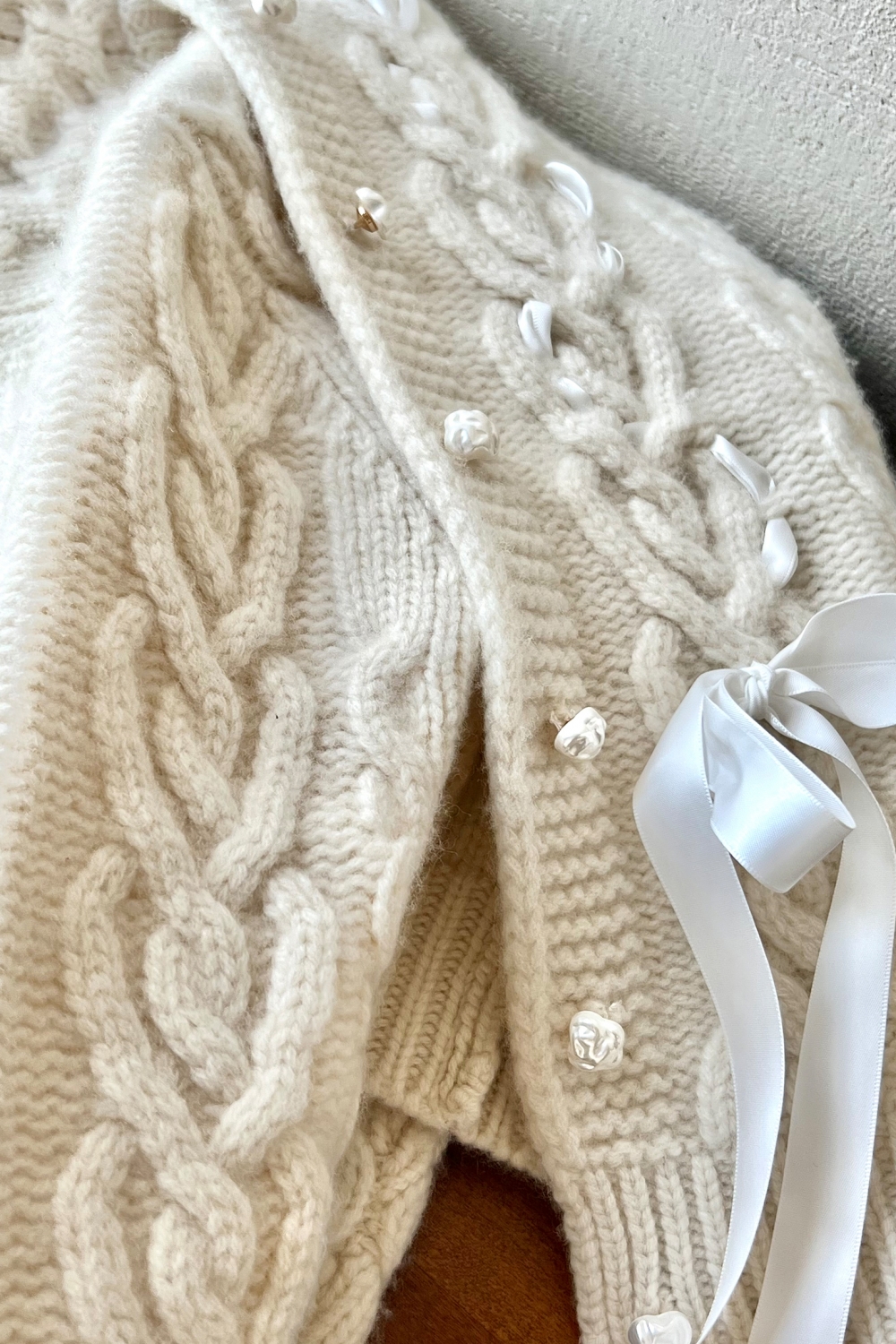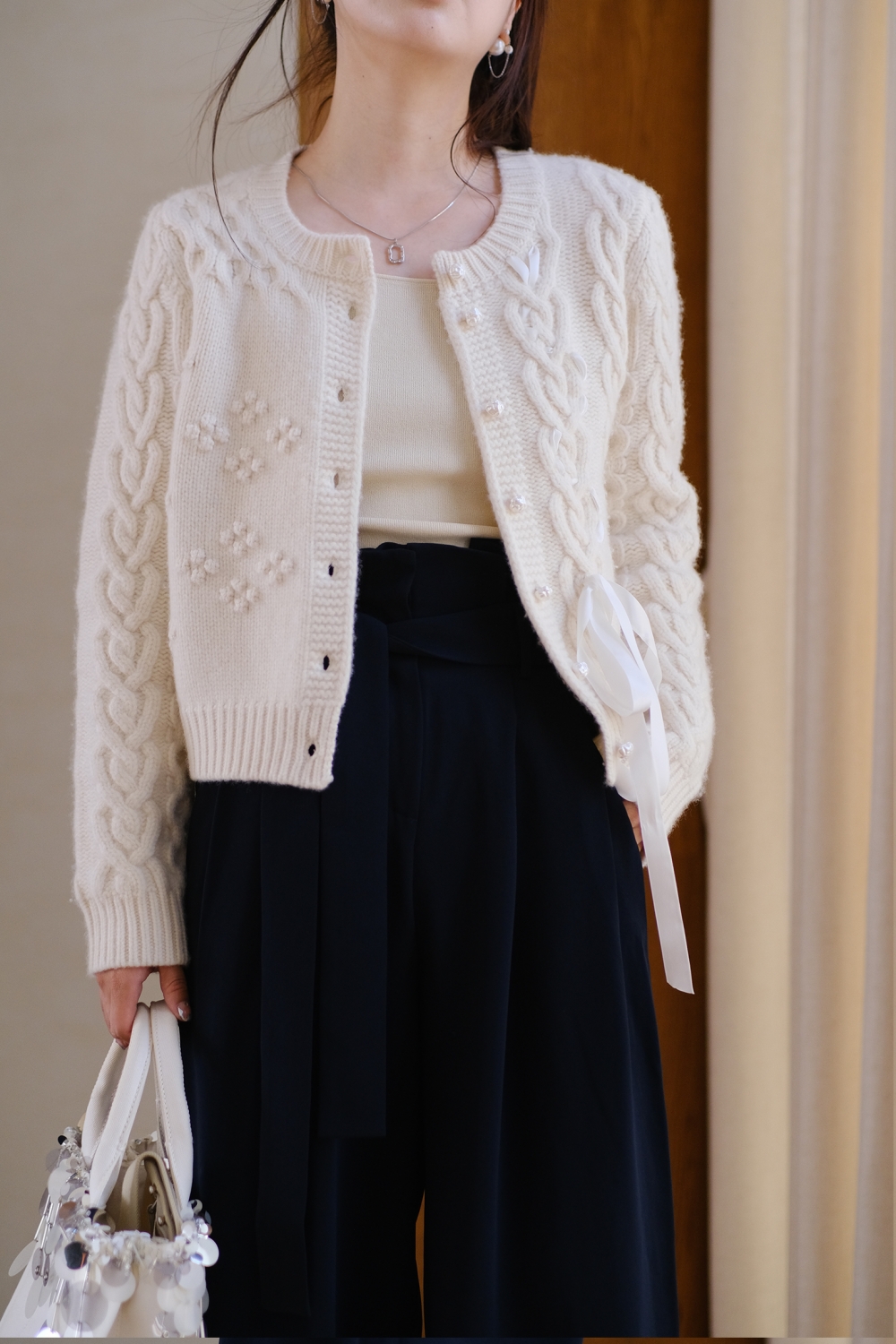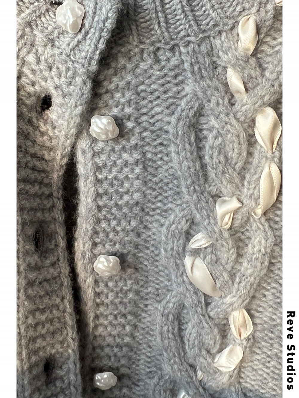 扣子是異形珍珠,絲帶是日本進口的緞面帶