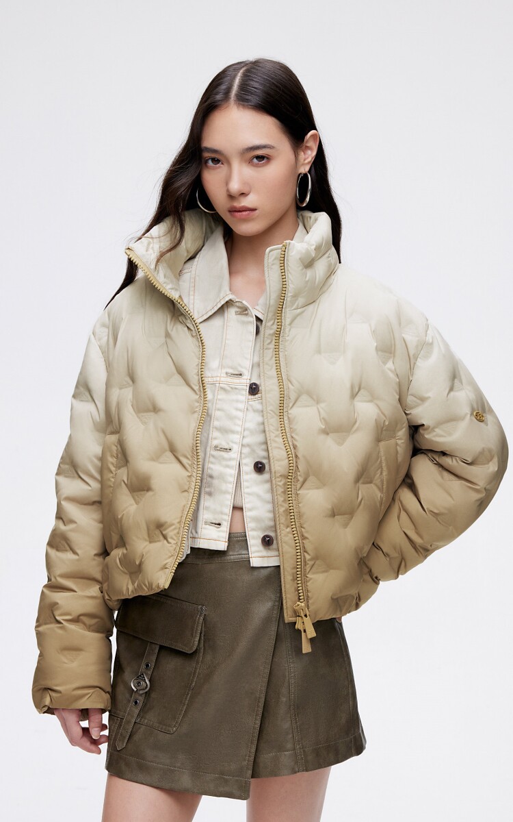| 面 料 | 古董白色、法蘭絨棕色 面料:復合面層:錦綸100%中間層:聚酯纖維100%復合里層:聚酯纖維100%(非纖維物質除外),里料:聚酯纖維100% 里料A:錦綸100%,膽料:聚酯纖維100%,填充物:白鴨絨 絨子含量:90%,充絨量:XS:105g S:110g M:115g L:120g XL:125g,其他填充物:聚酯纖維100%(無紡布除外) 薰衣草灰紫色、茴香棕色 面料:復合面層/復合里層:聚酯纖維100%(非纖維物質除外),里料:聚酯纖維100%,里料A:聚酯纖維100%,膽料:聚酯纖維100%,填充物:白鴨絨 絨子含量:90%,充絨量:XS:105g S:110g M:115g L:120g XL:125g,其他填充物:聚酯纖維100%(無紡布除外) |