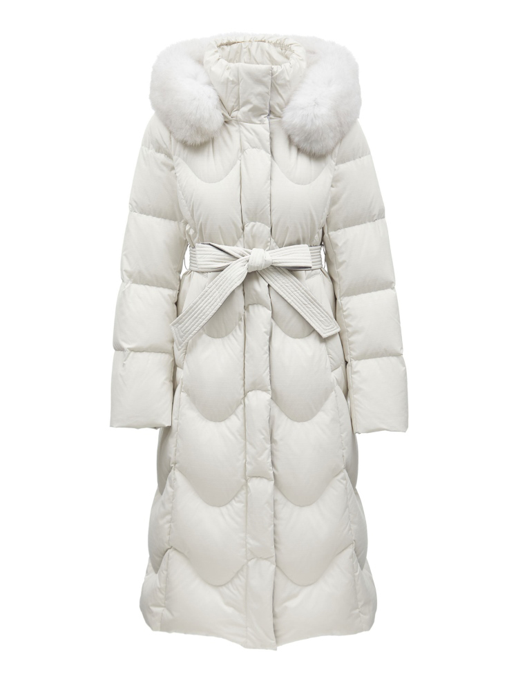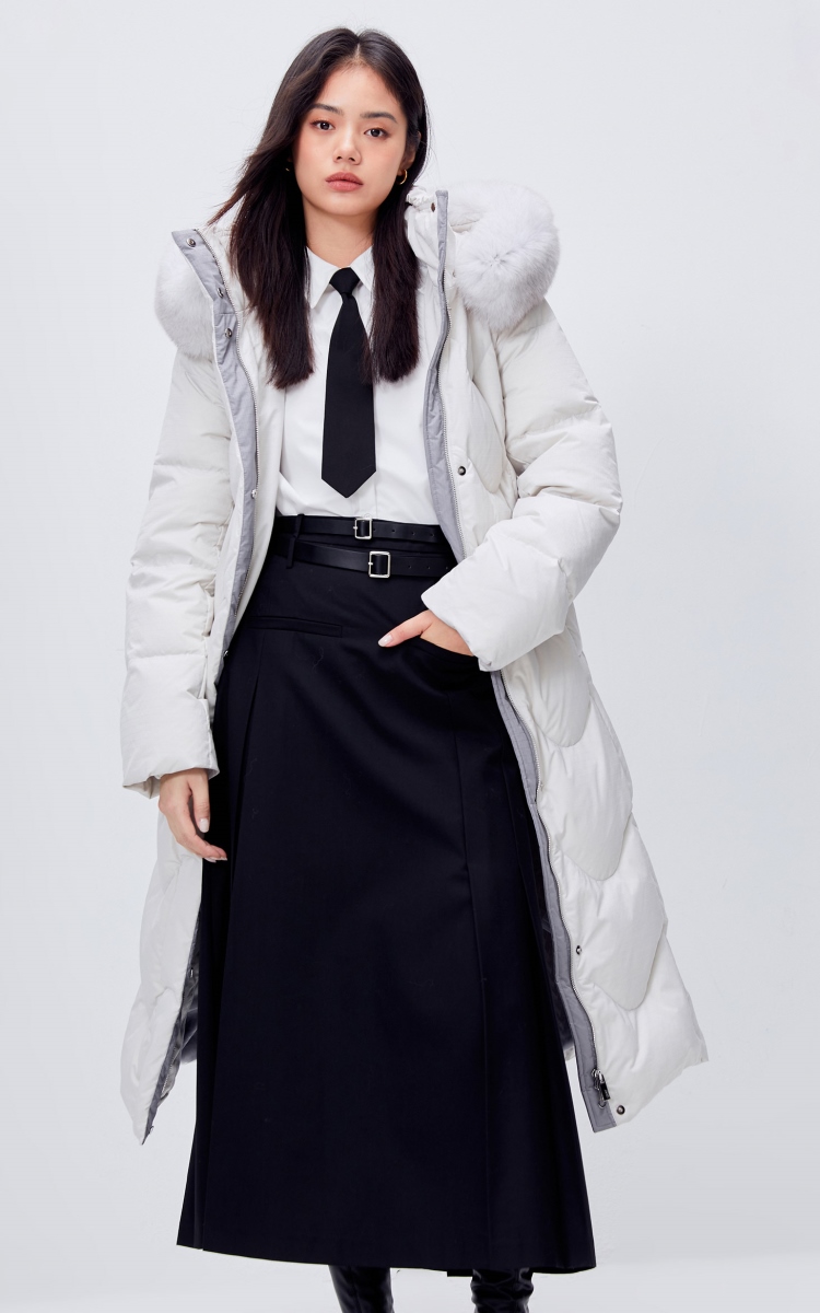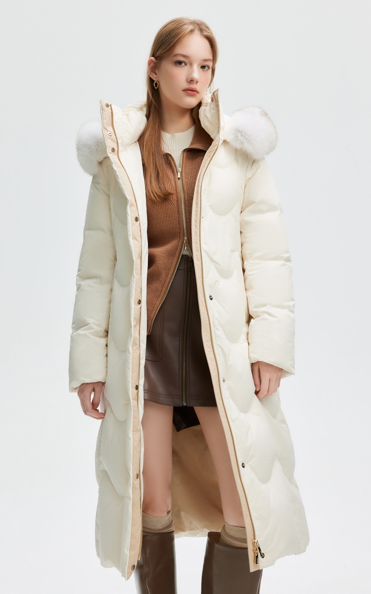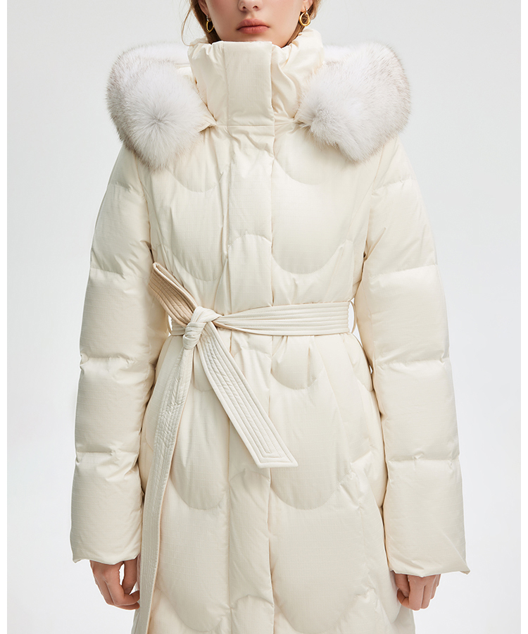 | 面 料 | 面料:聚酯纖維100%,拼接面料:聚酯纖維100%,里料:聚酯纖維100% 膽料:聚酯纖維100%,填充物:白鵝絨 絨子含量:90%,充絨量:XS:183g S:188g M:200g L:208g XL:216g,其他填充物:聚酯纖維100%,帽毛:狐貍毛皮 |