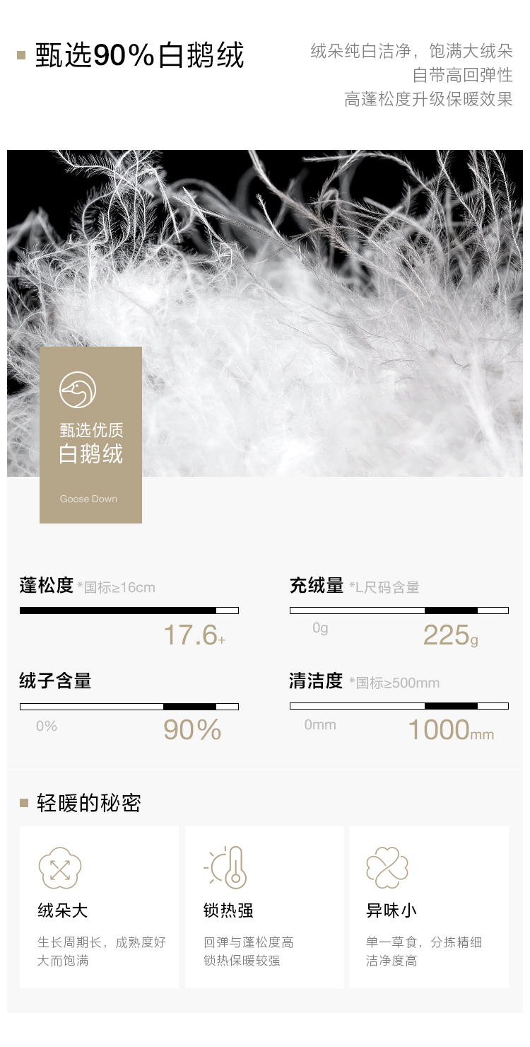 | 洗滌建議 | 及時洗滌,及時晾干。羽絨服盡量不要經常洗滌,次數過于頻繁是會影響到保暖性的。 |