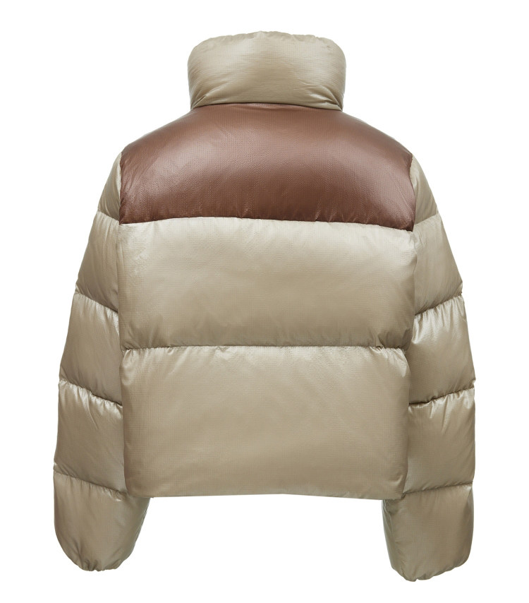 | 面 料 | 錦綸100%(涂層除外),里料:聚酯纖維100%,膽料:聚酯纖維100%,填充物:白鴨絨,絨子含量:90%,充絨量:XS:133g S:137g M:144g L:151g,其他填充物:聚酯纖維100% |