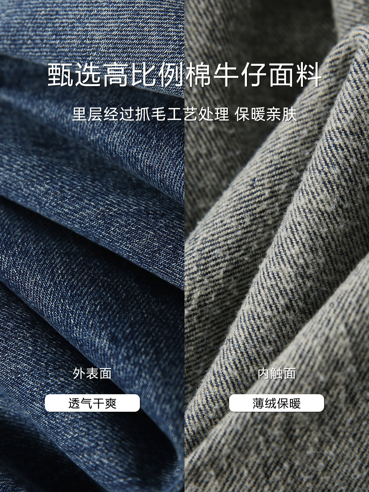 牛仔自身與抓絨的厚肉感,又保持著綿軟