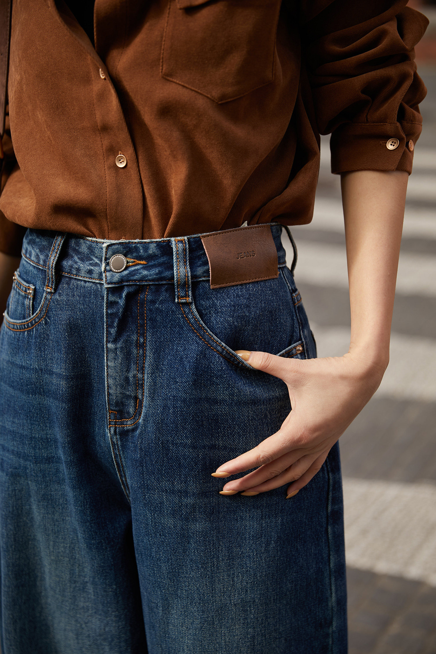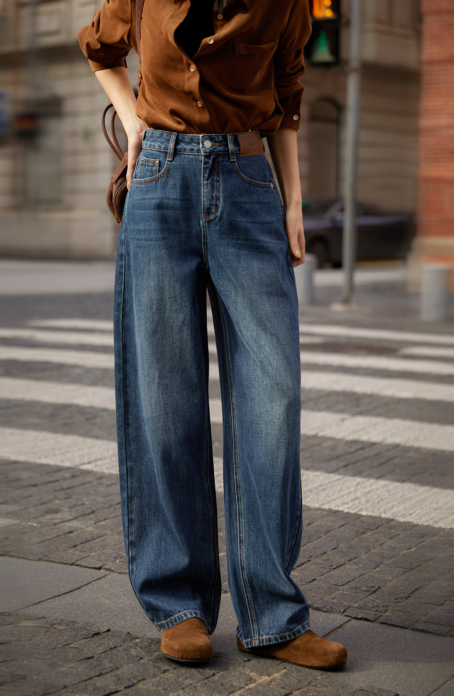 博主摯愛CHIC風 摩登廓形抓絨牛仔褲
