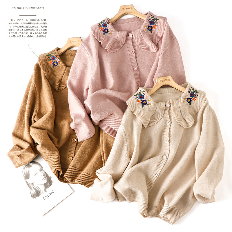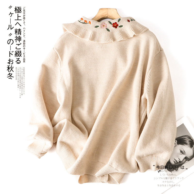 日系森女風大翻領毛衣