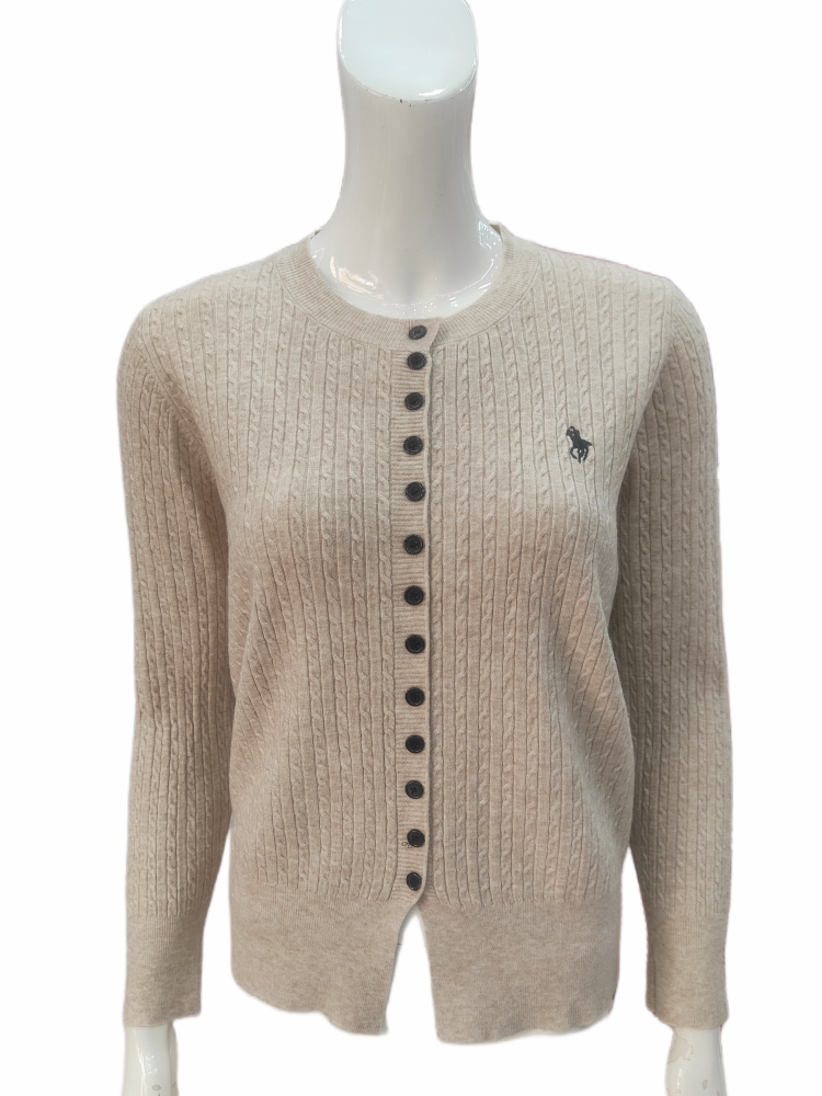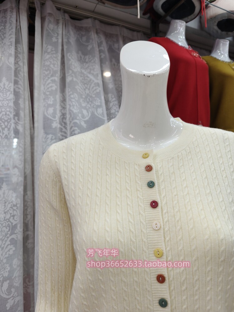 2 純色麻花條紋圓領鈕扣真開衫設計,顏色大氣,優雅百搭款