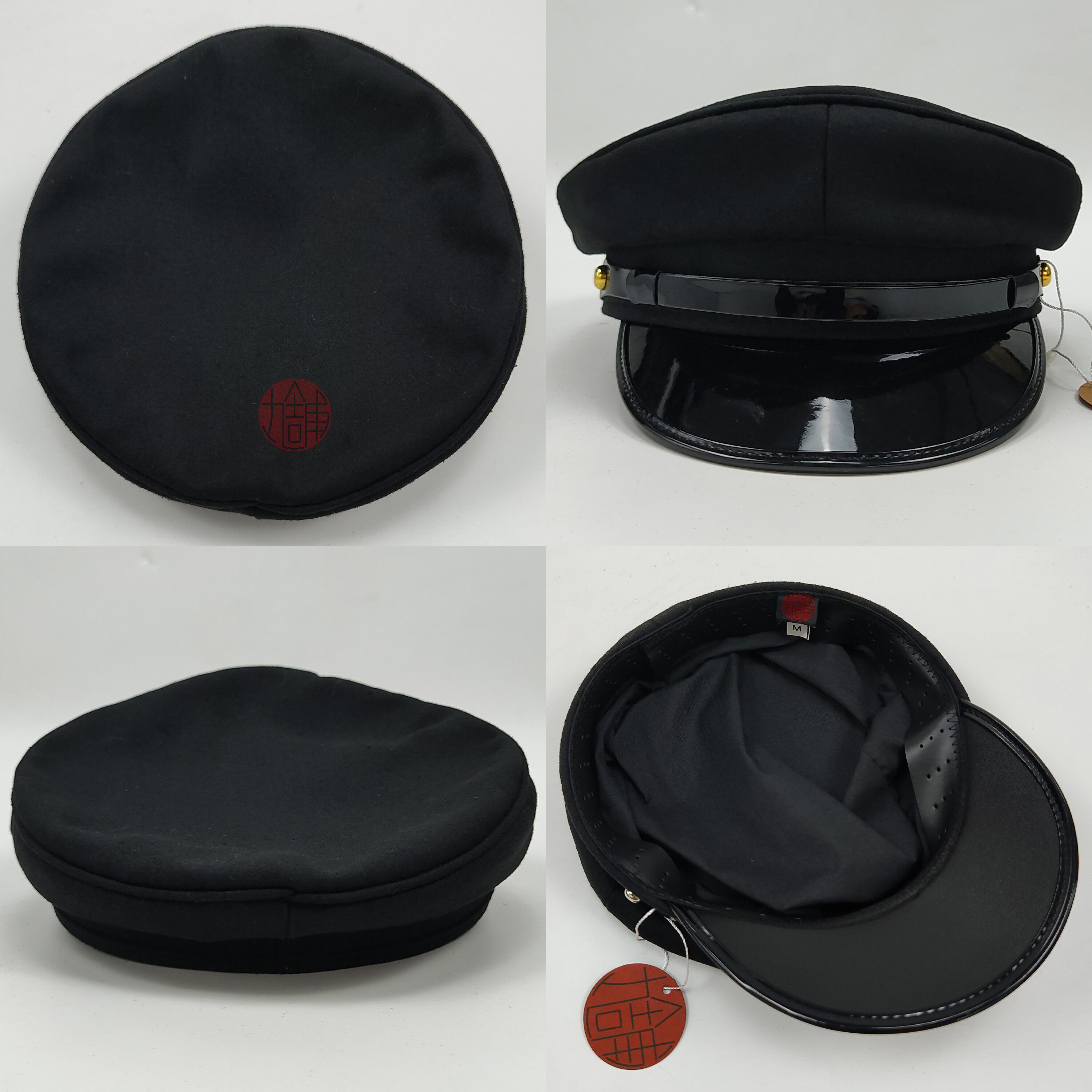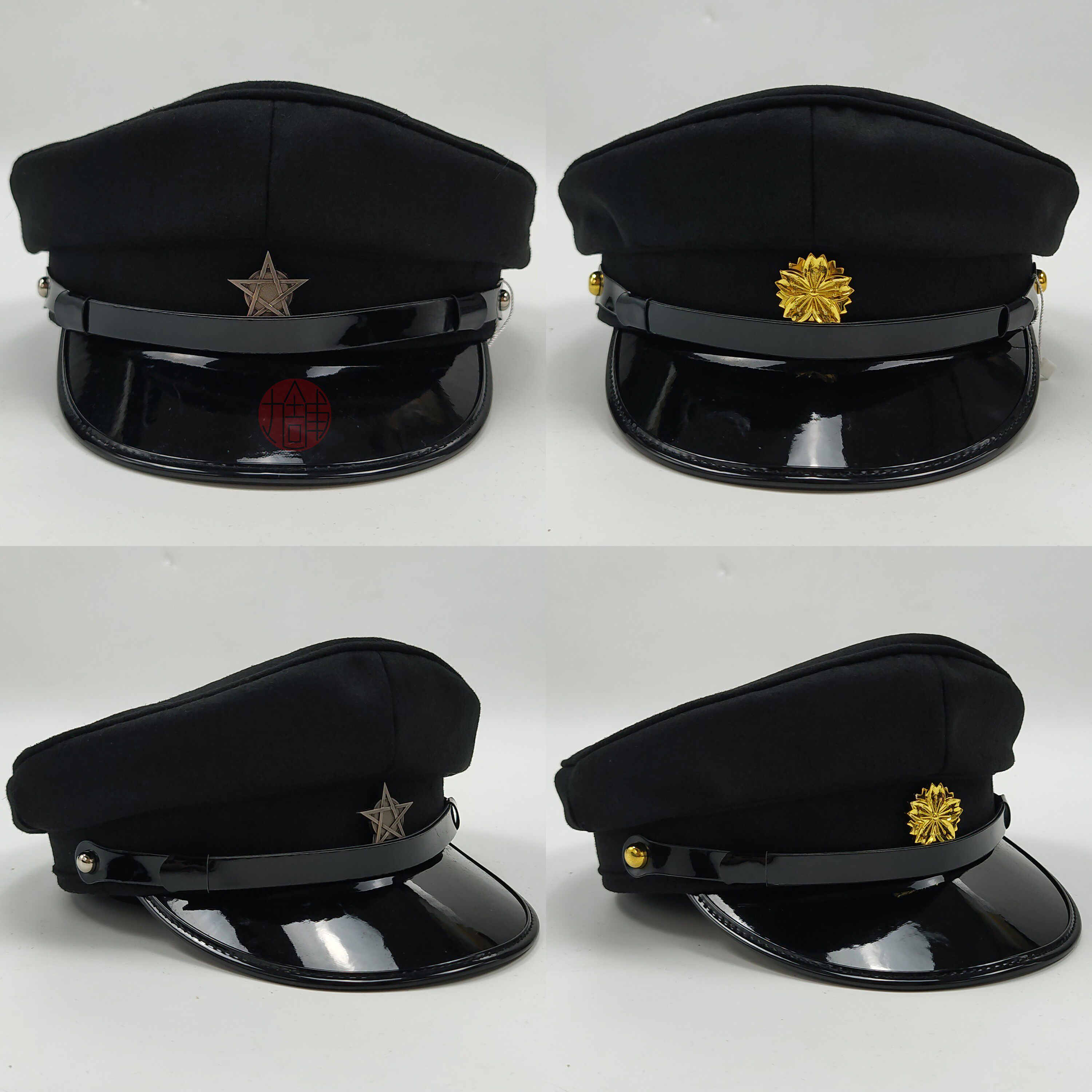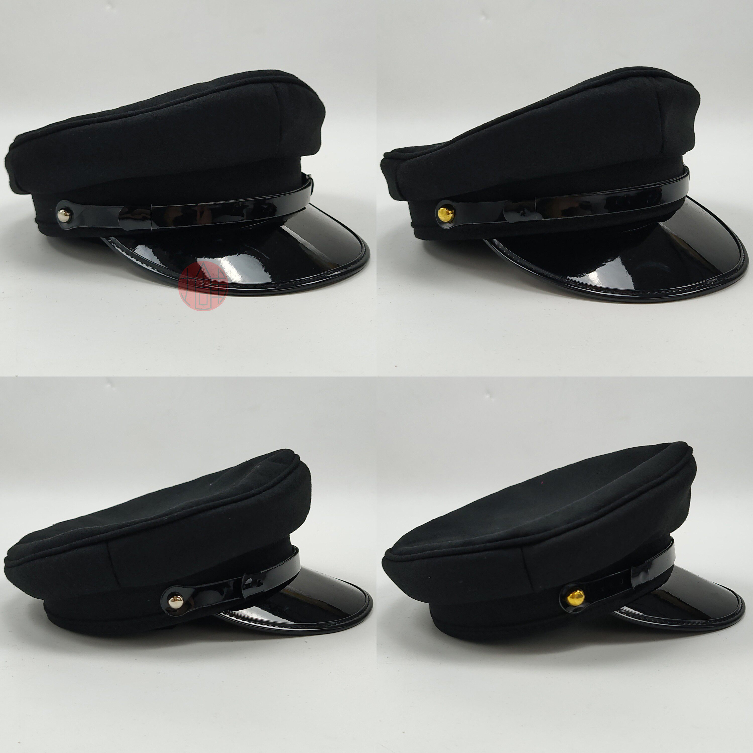 之前初版二版都是用成古銅色櫻花型可拆卸活帽扣,一方面扣子跟本店全靠原創設計詰襟套配件一致,都是黑色面料+古銅金屬件,一方面活扣也方便顧客更換帽扣顏色款式去搭配其他服飾。但在之后的實際repo中發現大家幾乎不會更換配件,故為了這次的百搭和方便考慮,直接開基礎款金銀雙色帽釘,適配更多現代風格。因為之前做(帽釘也是櫻花型的)配套設計時,看到很多顧客repo也選擇不戴帽徽,加上這次設計也是盡量做無特殊元素的百搭設計,就不綁定帽徽了,方便按需選購,也可以自由搭配其他徽章。帽圍調節夾實際也只有極少數人會使用,故這次不作為標配附贈,顧客可以按需購買。