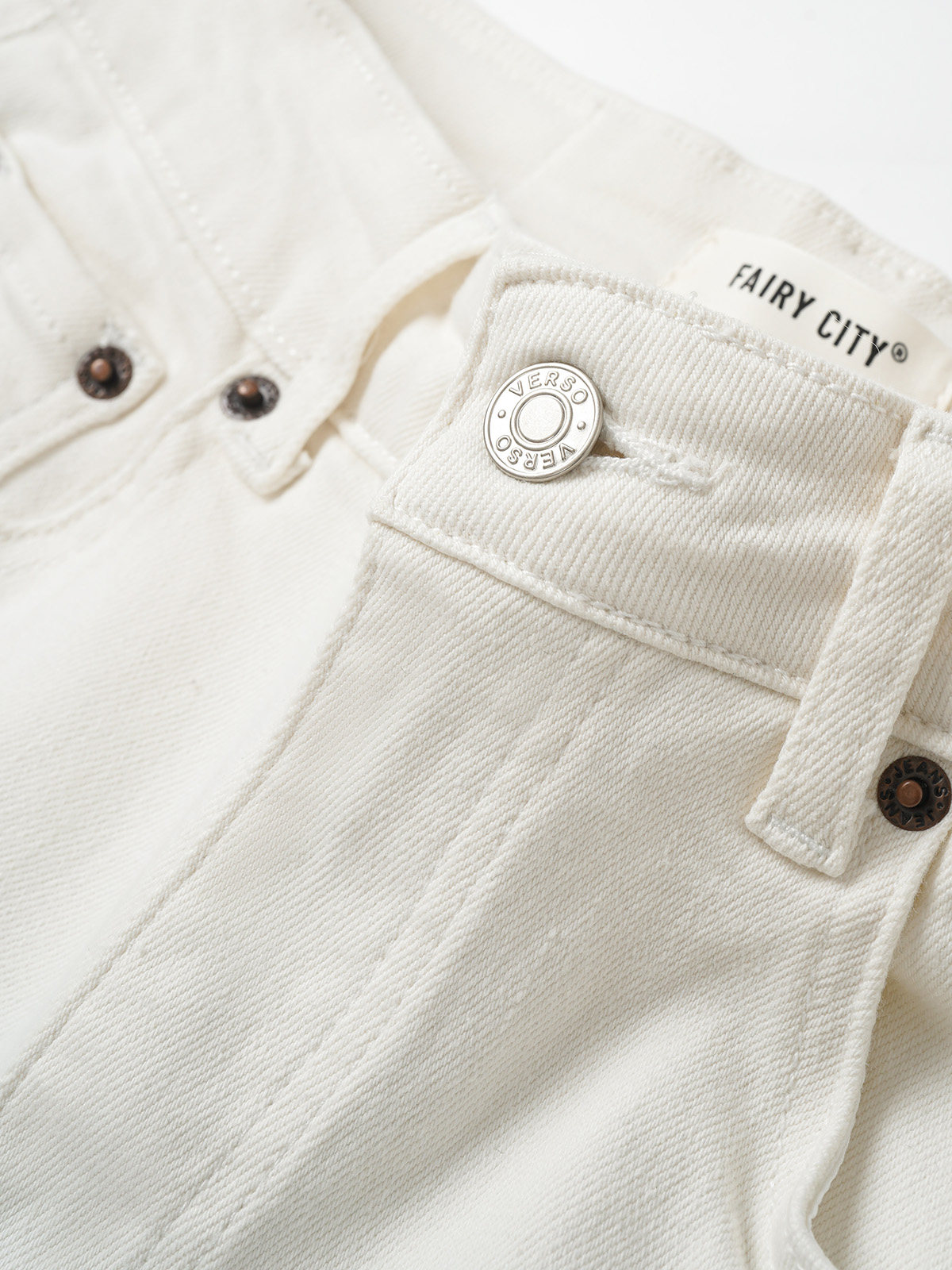 金屬紐扣和鉚釘:選用經典銀色,增加質感,同時為褲身增添細節亮點。