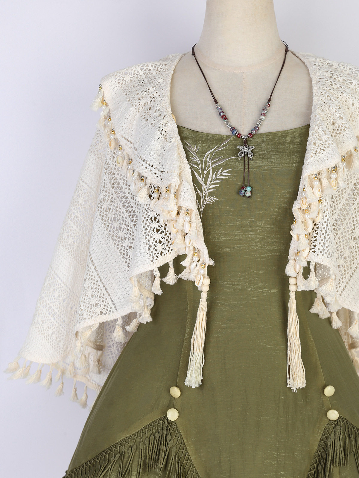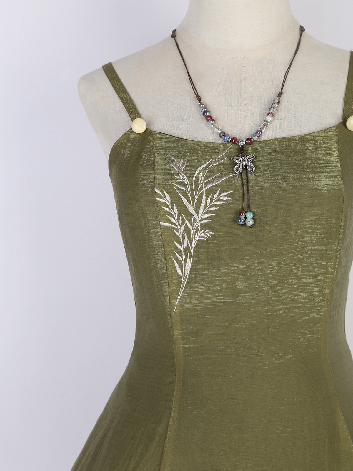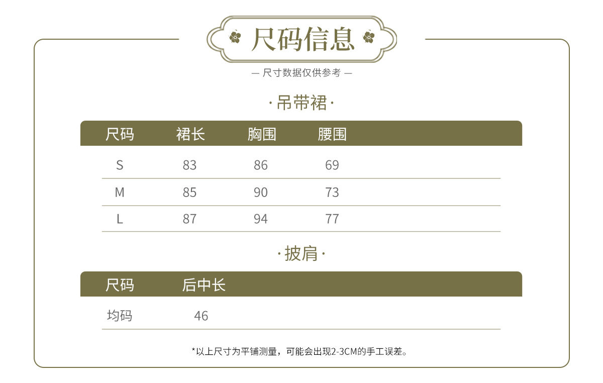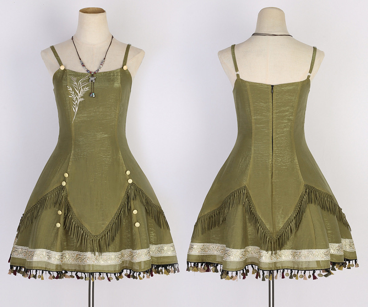 吊帶裙圖案為刺繡,附贈項鏈