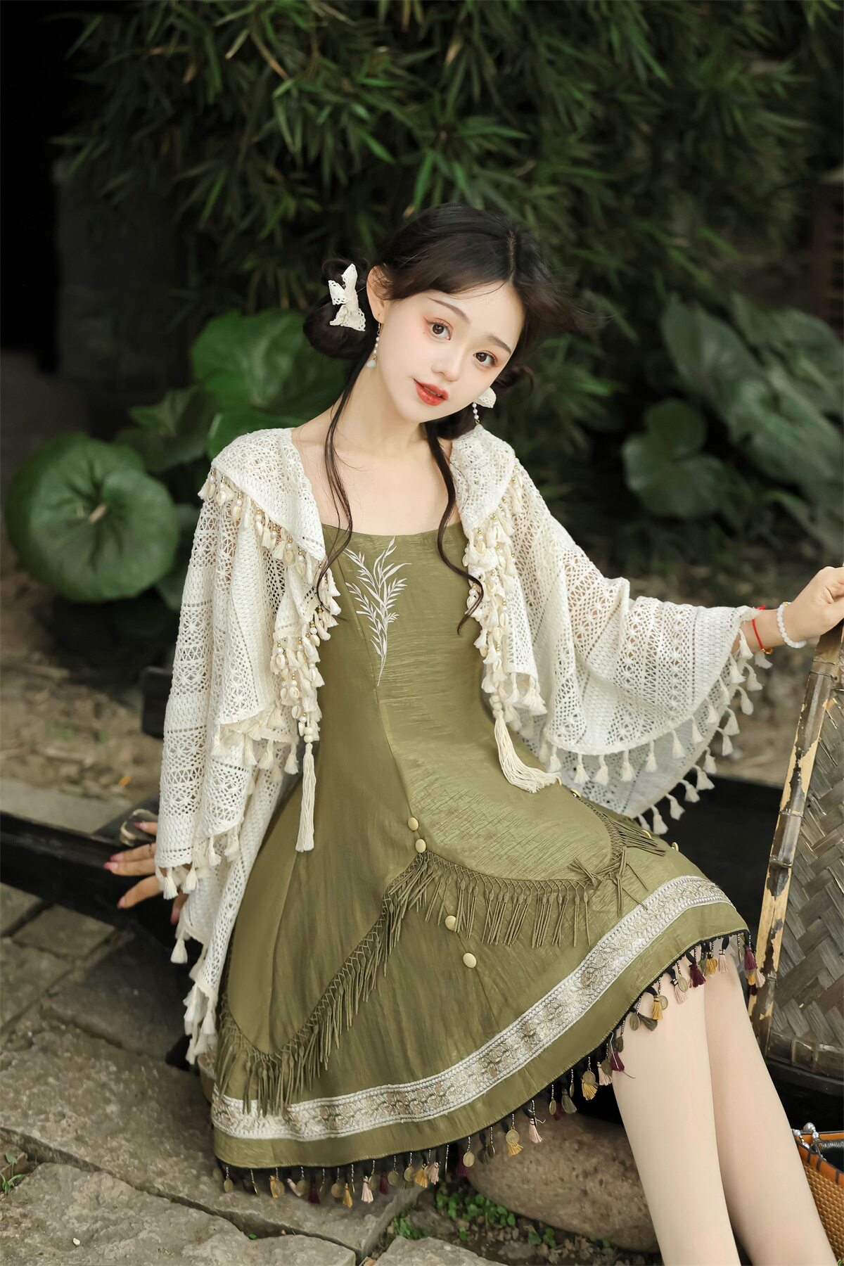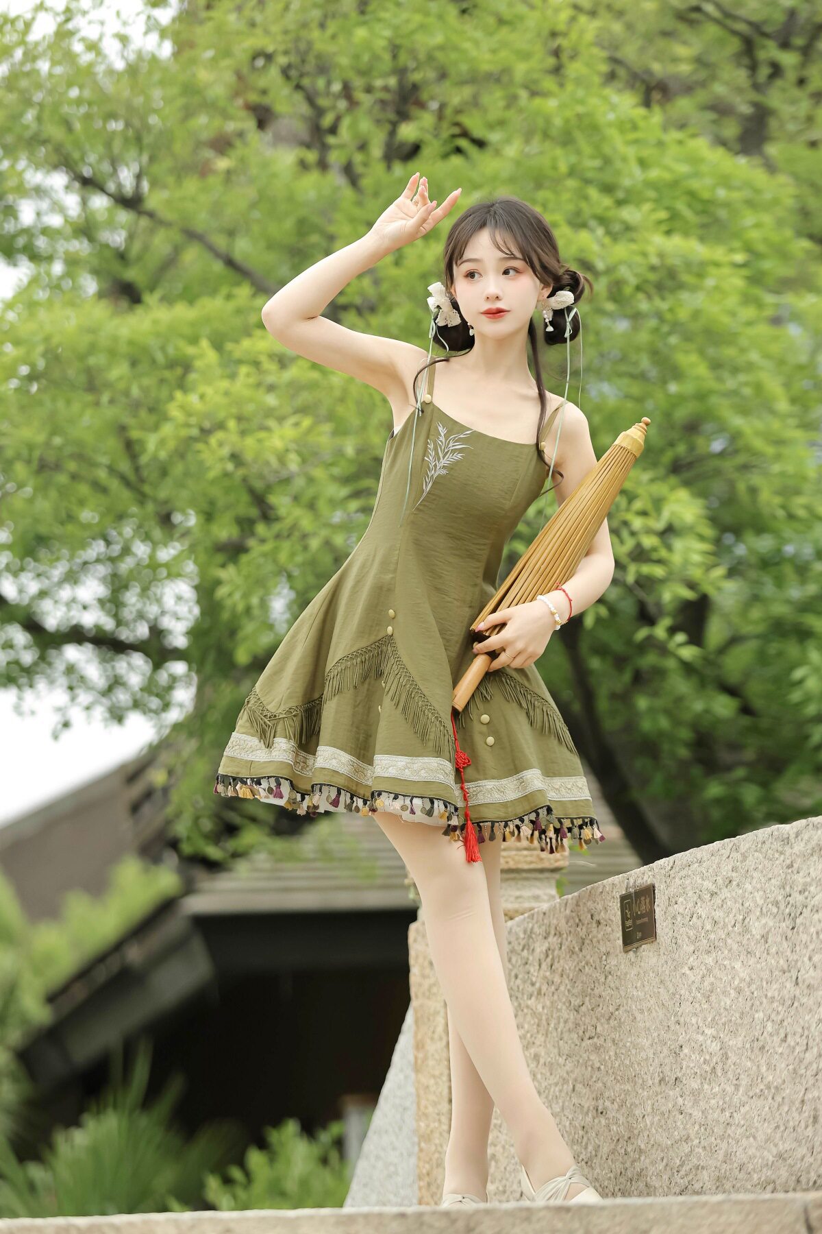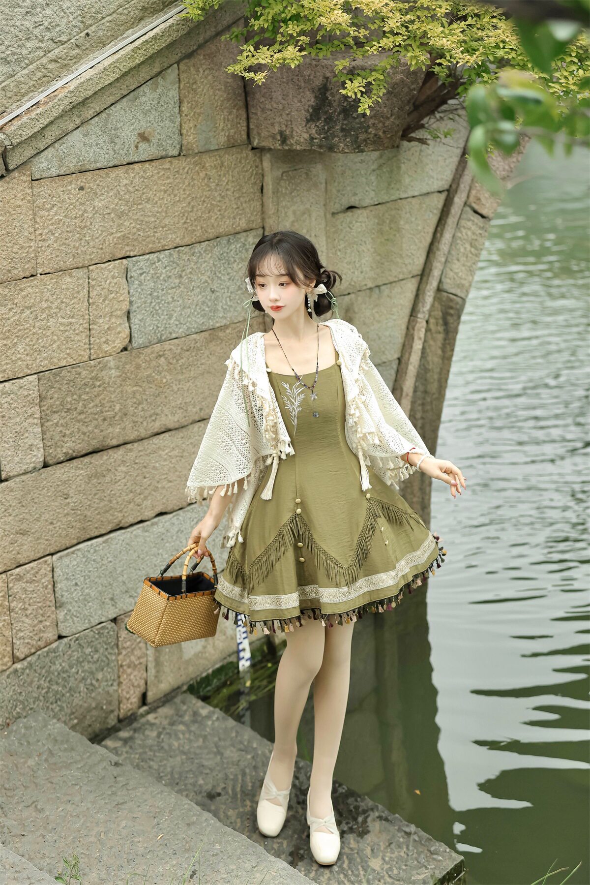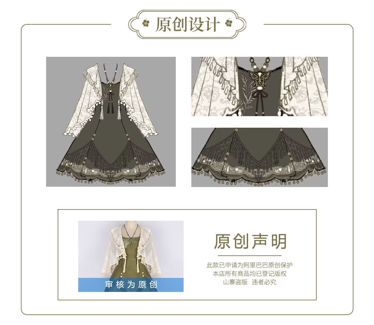 吊帶裙圖案為刺繡,附贈項鏈