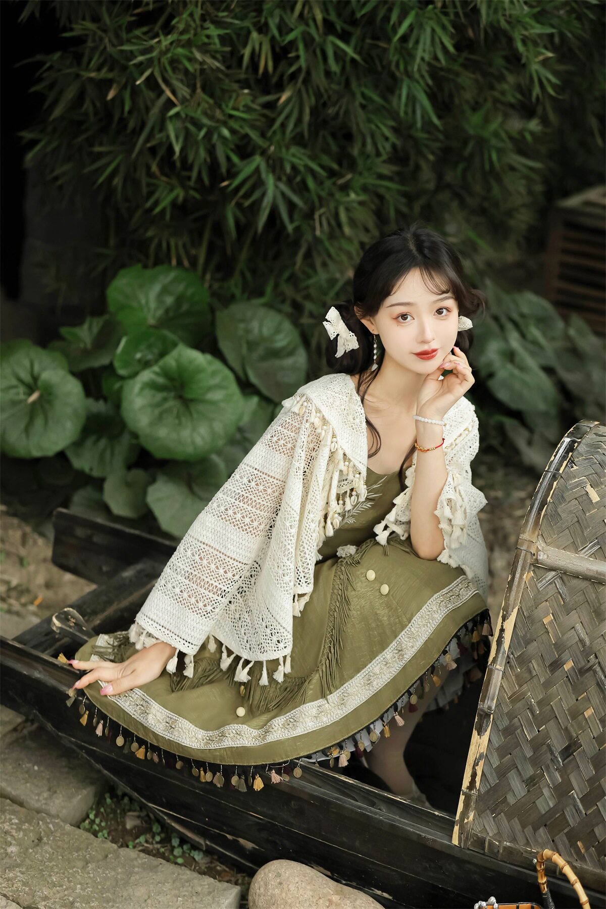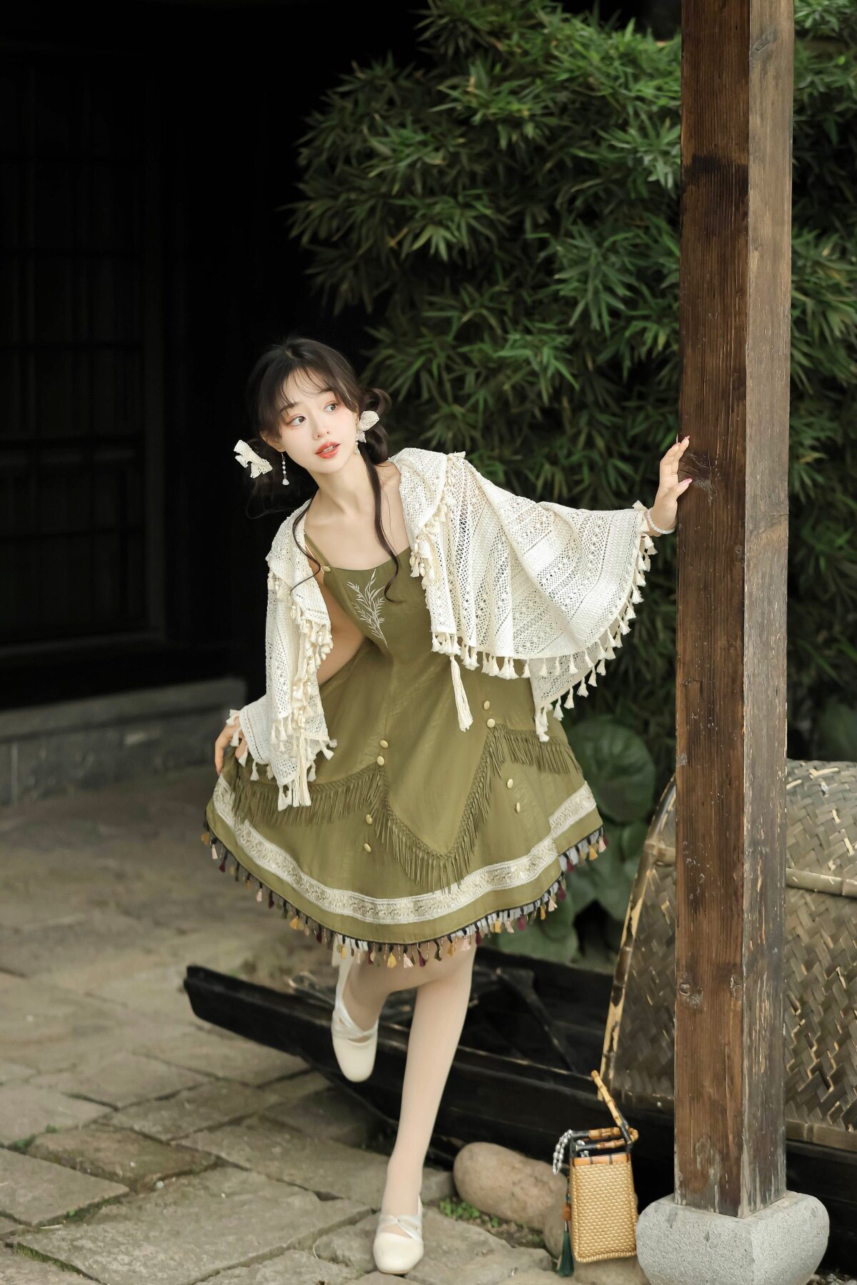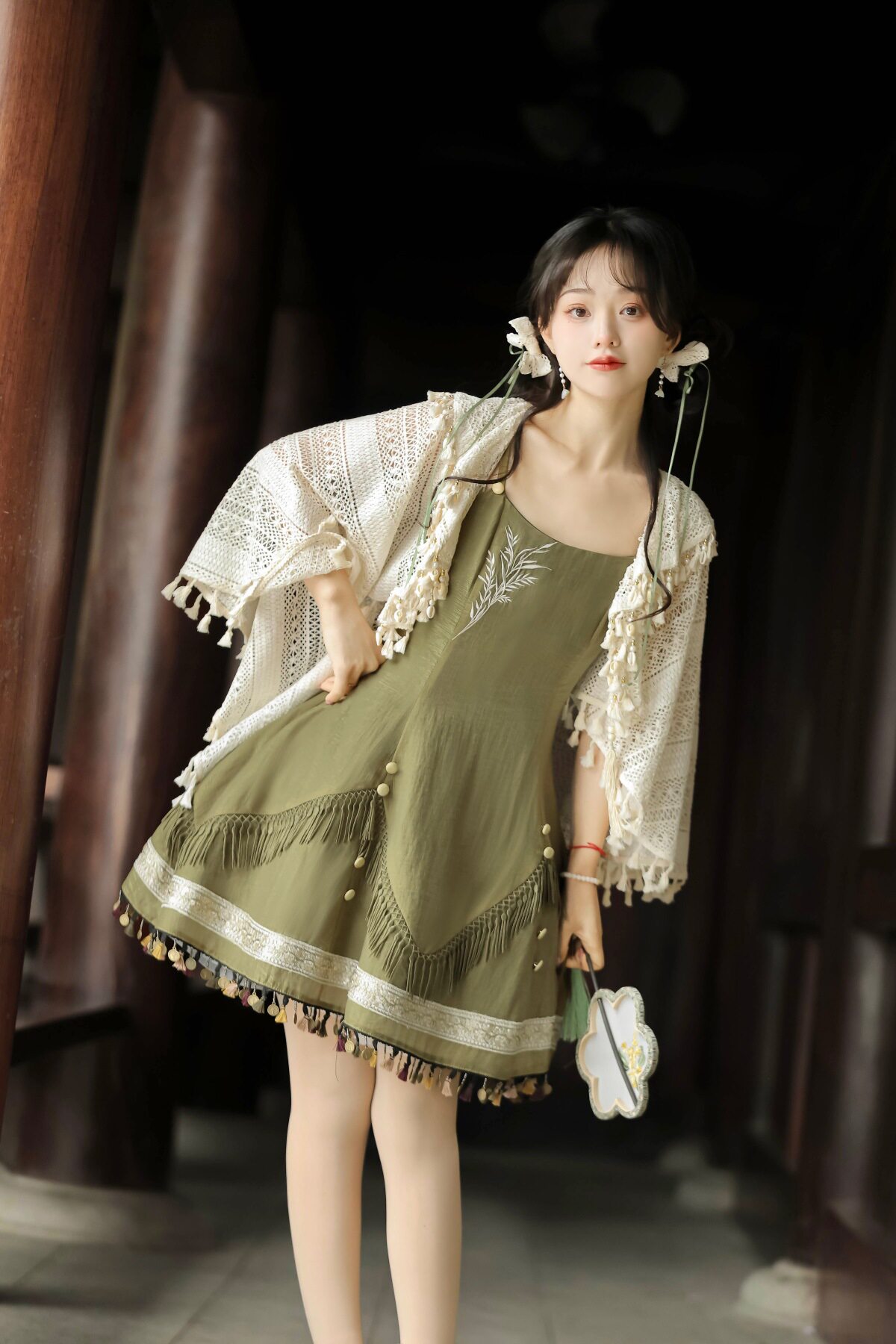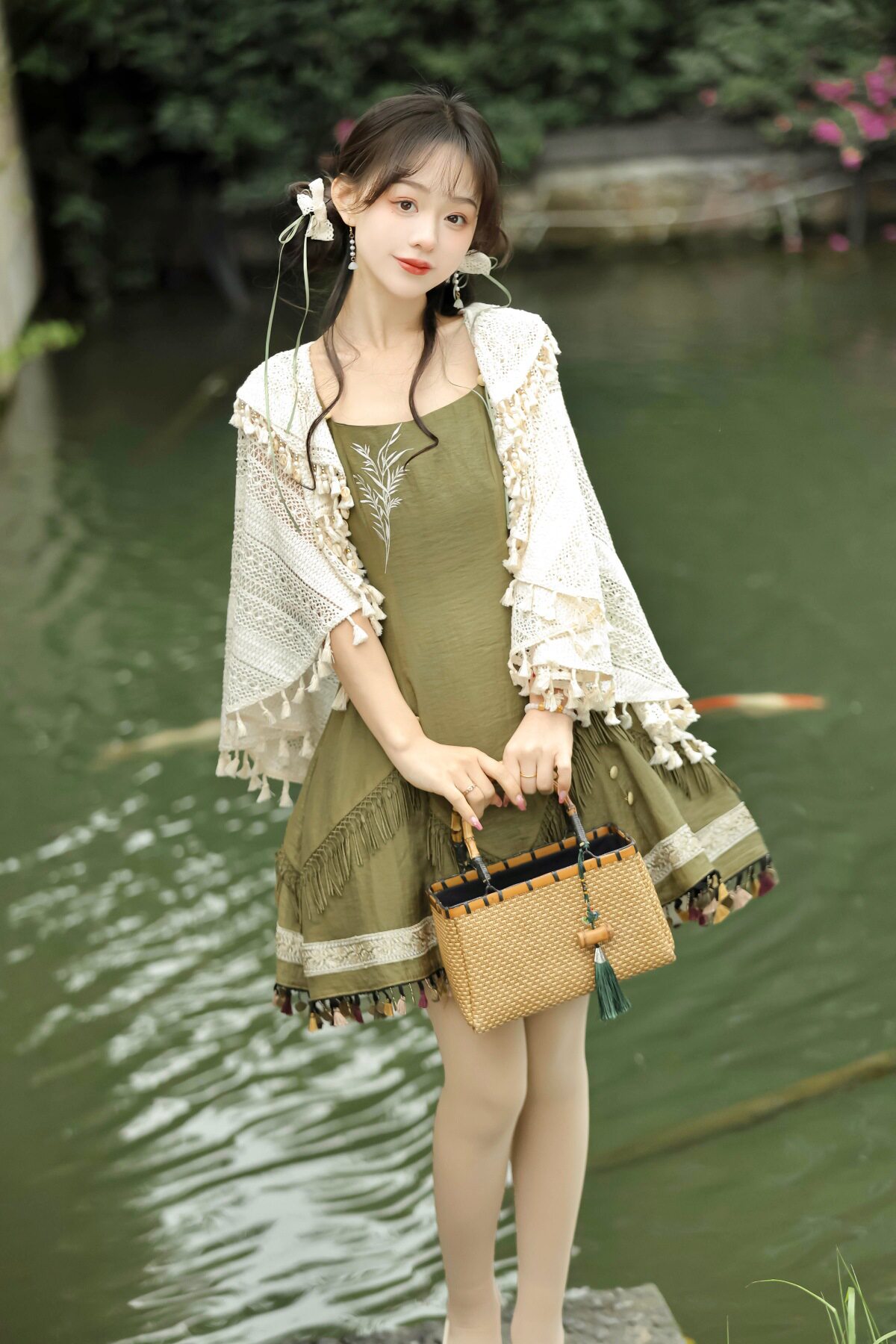 吊帶裙圖案為刺繡,附贈項鏈