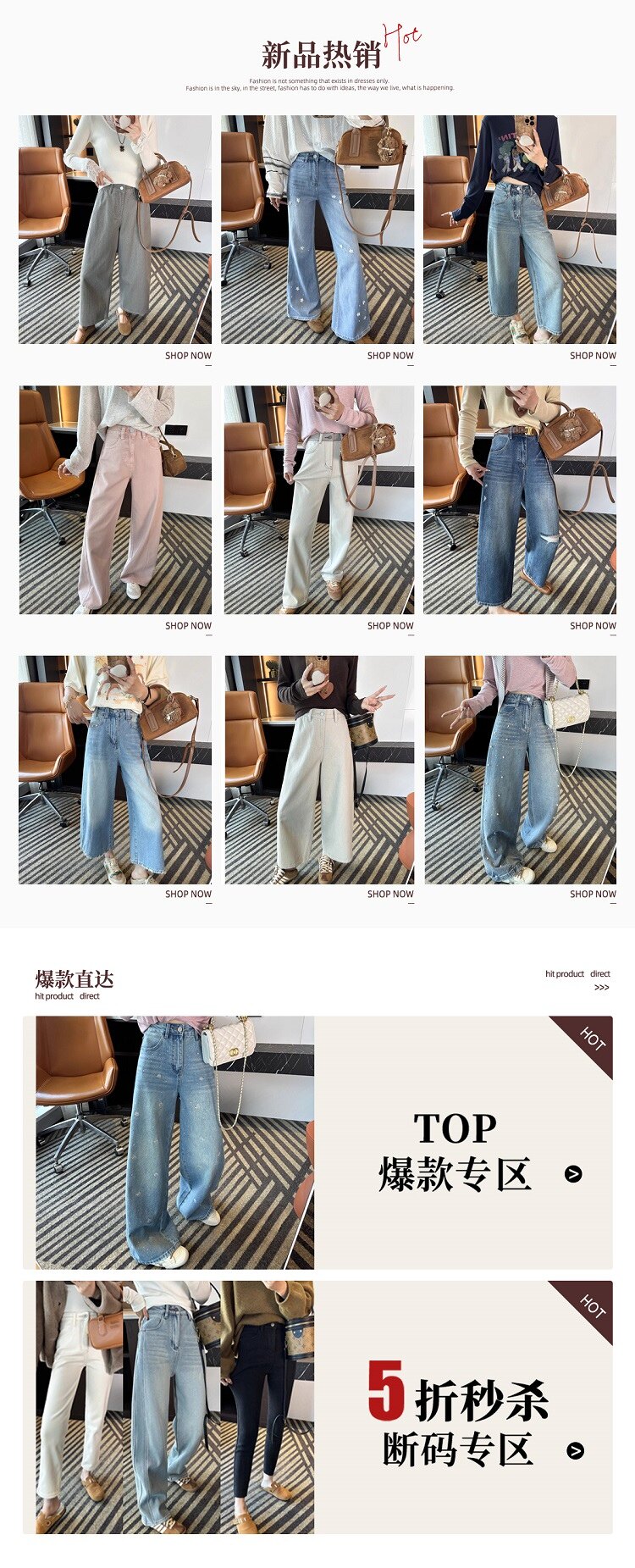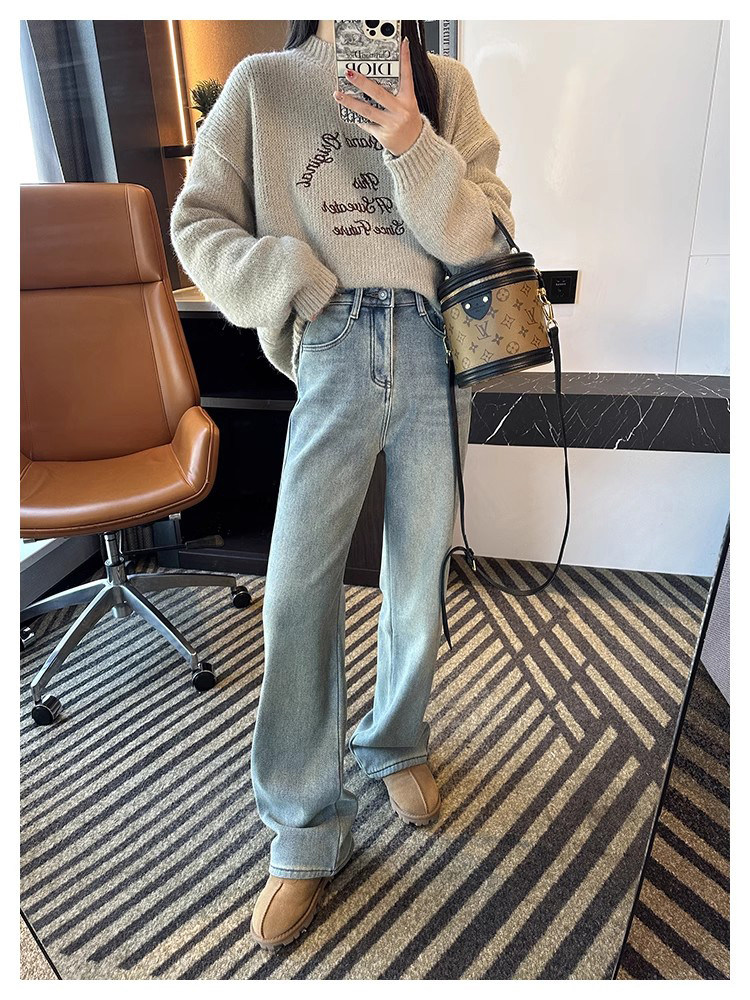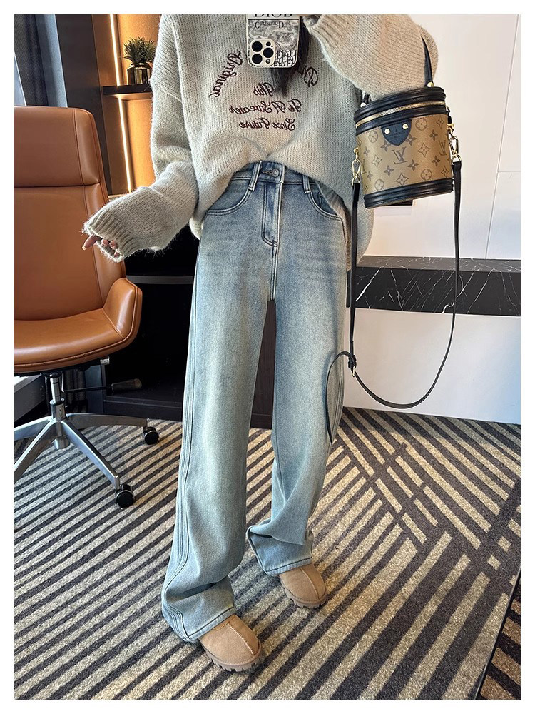 秋季百搭牛仔褲那必須有拖地闊腿褲的一席之地呀