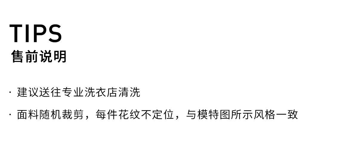 | | 溫馨提示: | 模特所佩戴飾品、配件均為搭配使用,不做銷售用途 |
