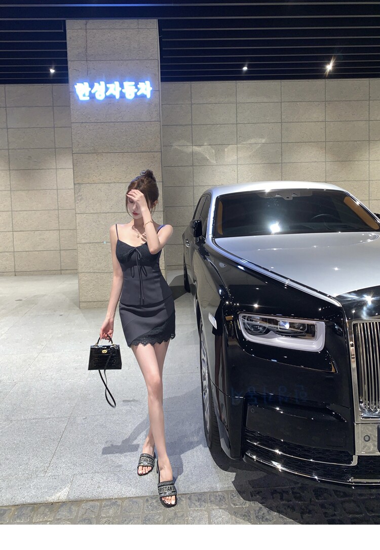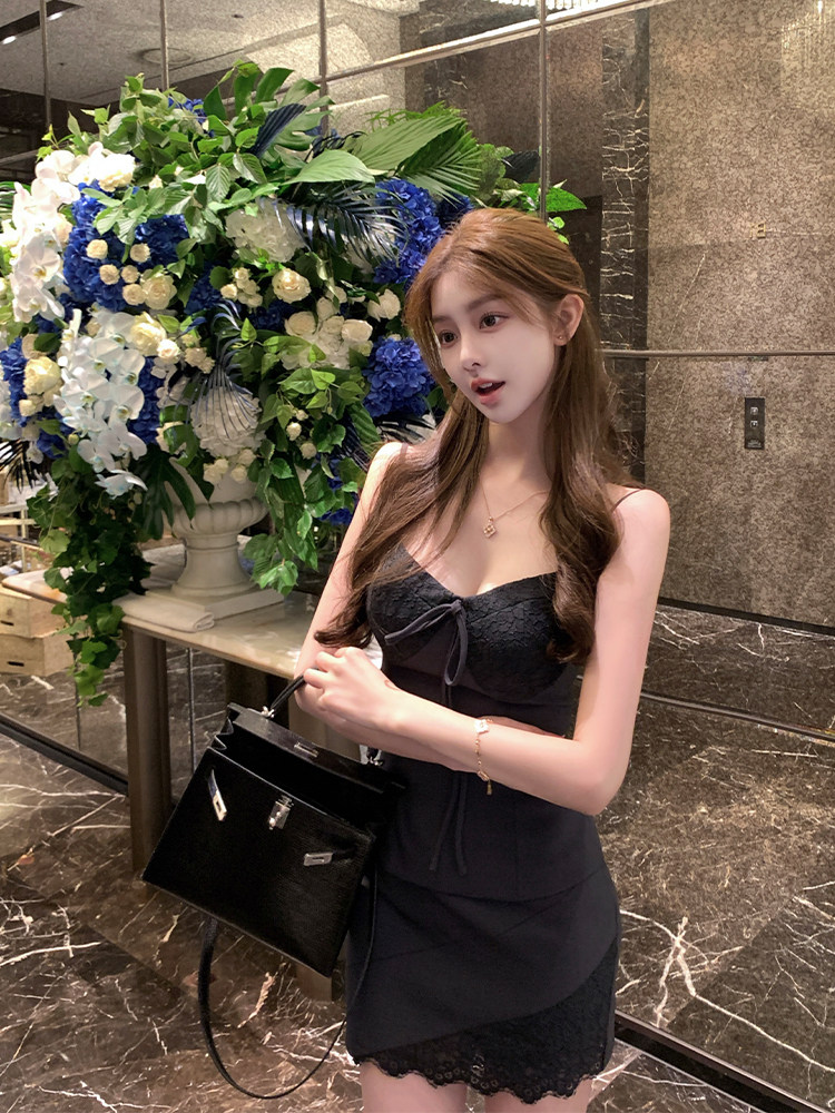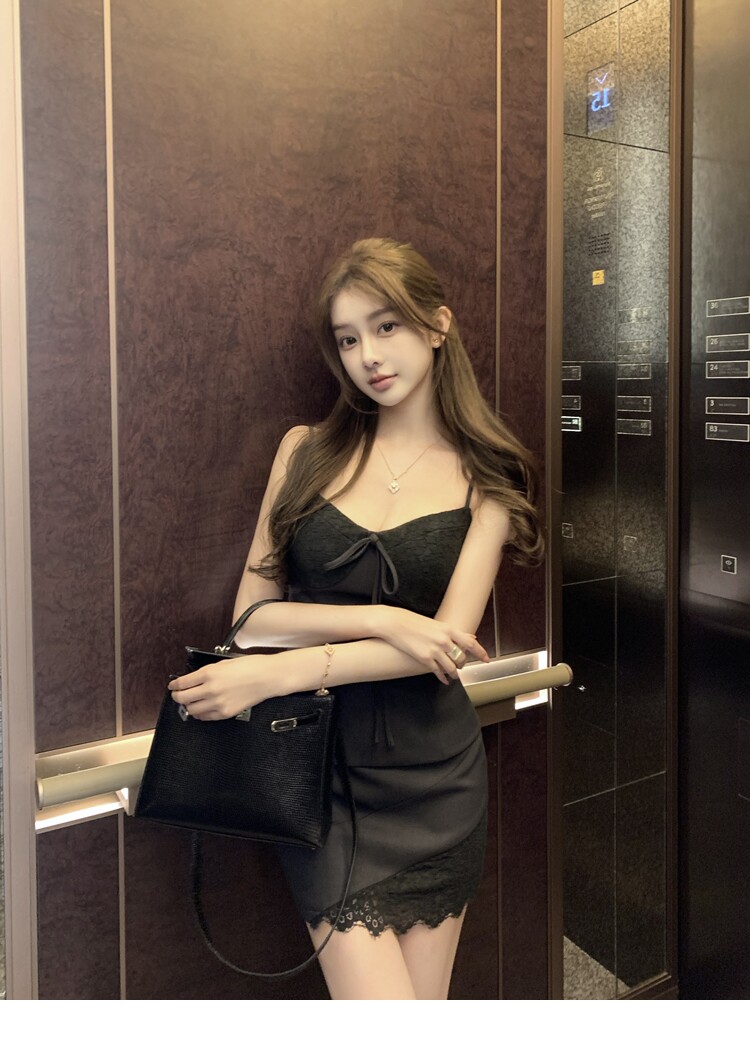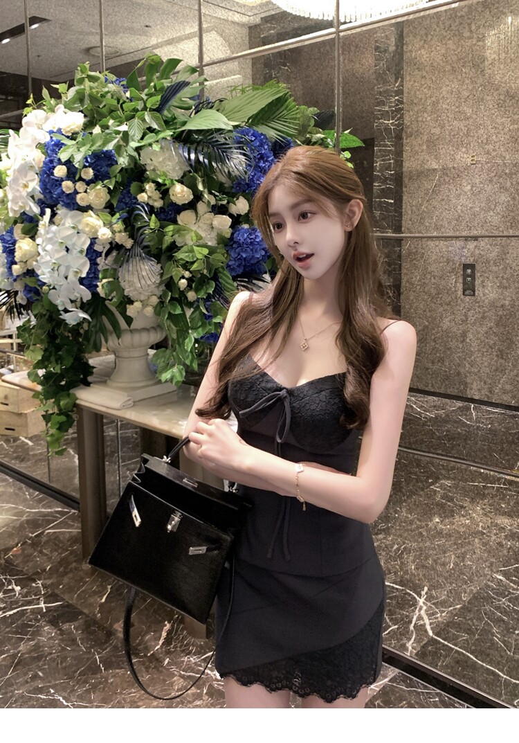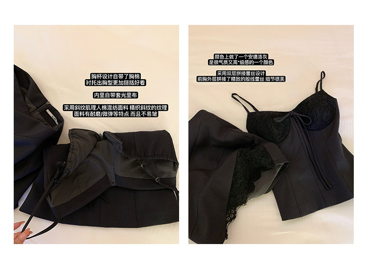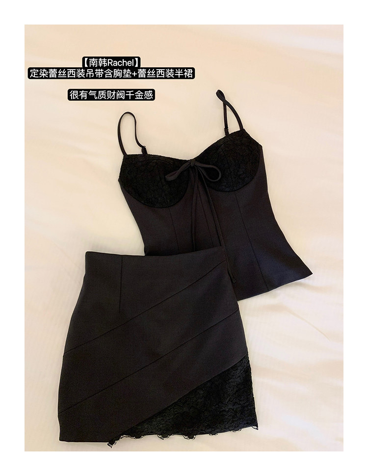 【南韓Rachel】定染蕾絲西裝吊帶含胸墊+蕾絲西裝半裙