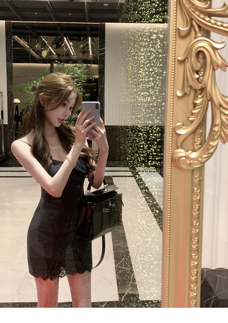 下擺斜邊雙層拼接蕾絲設計 蕾絲是du家定染的jing致感十足