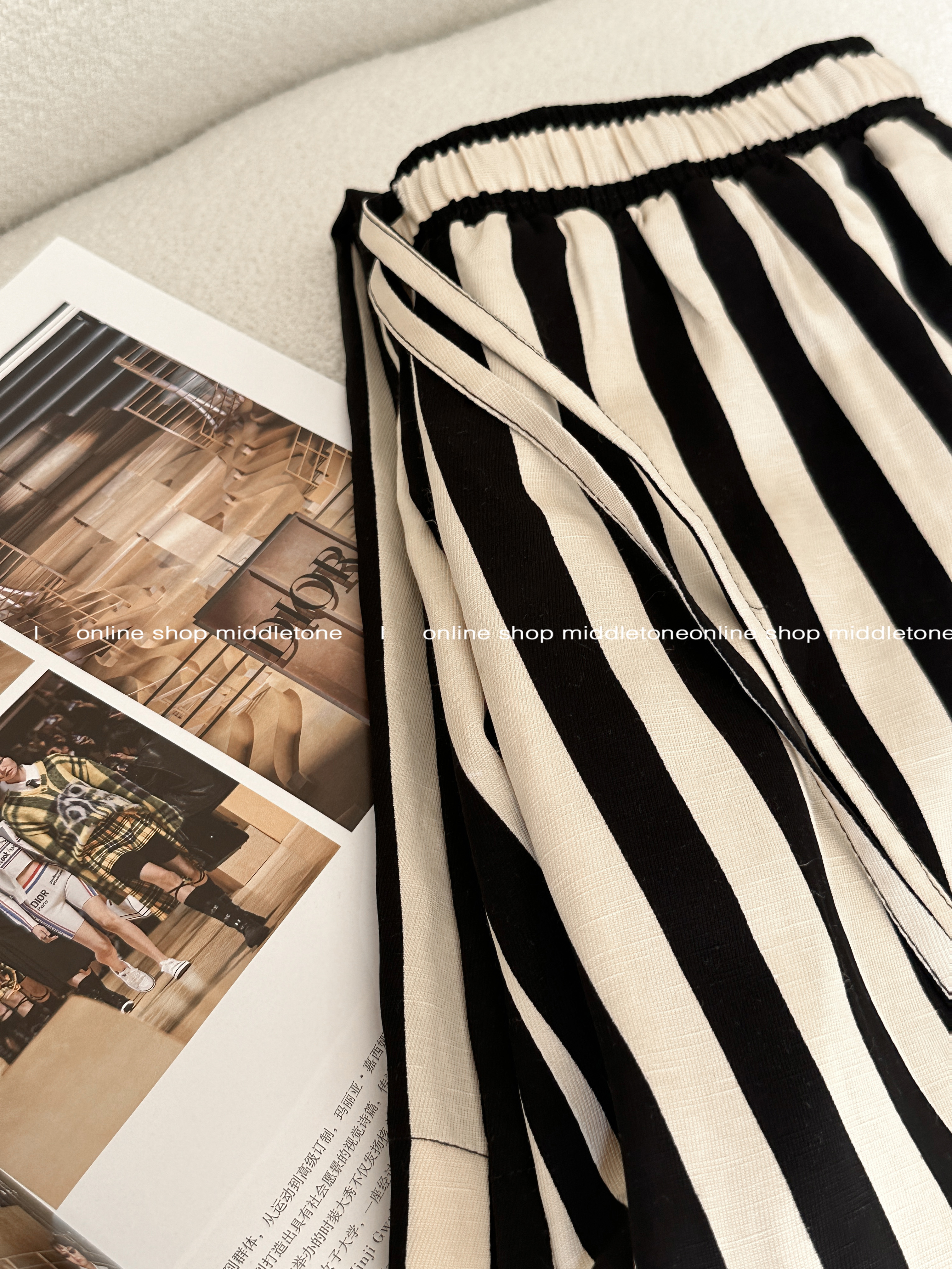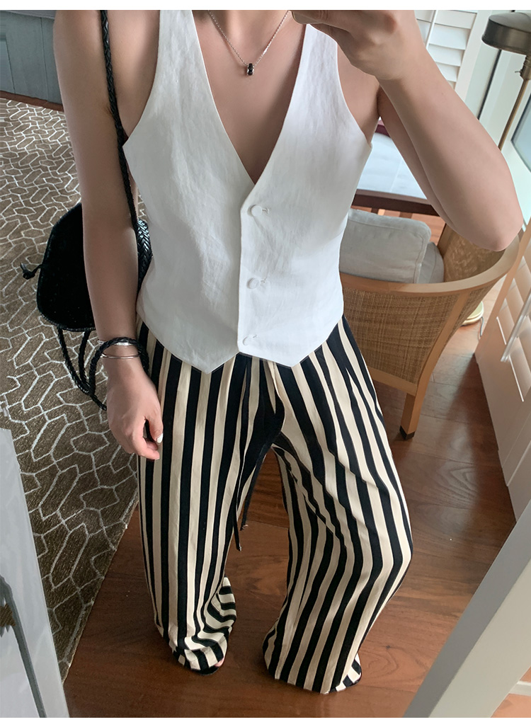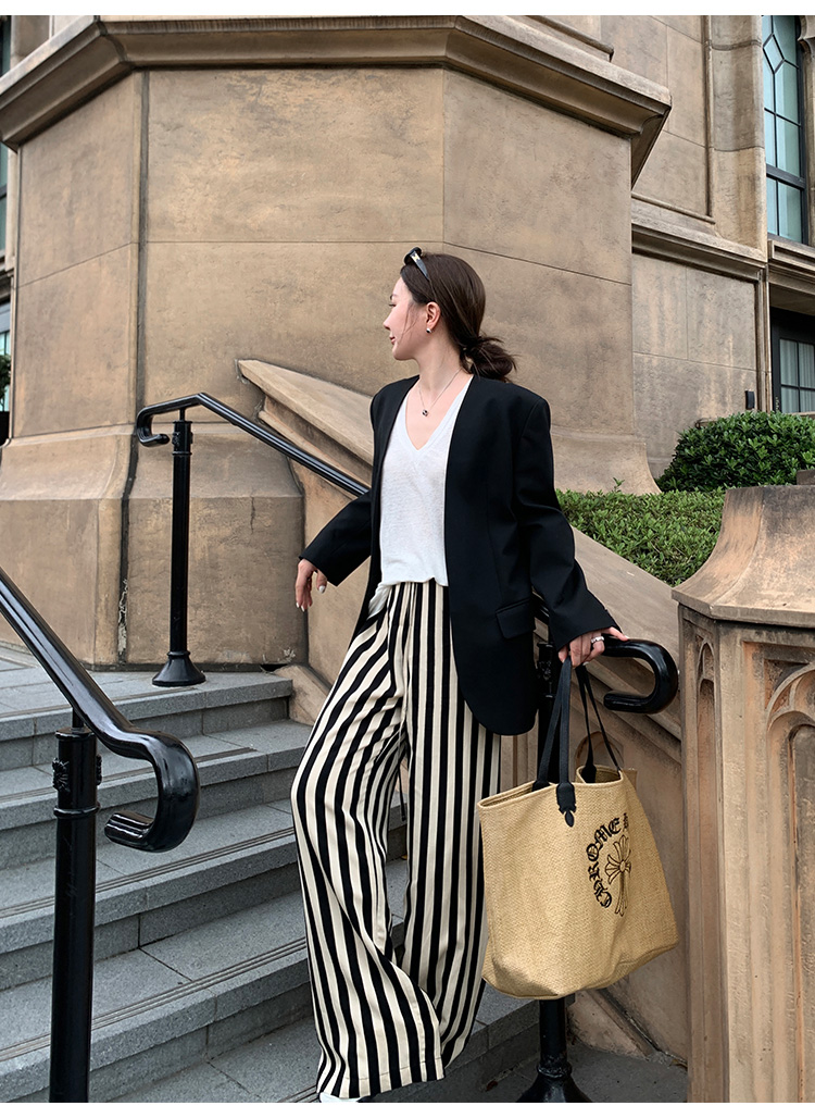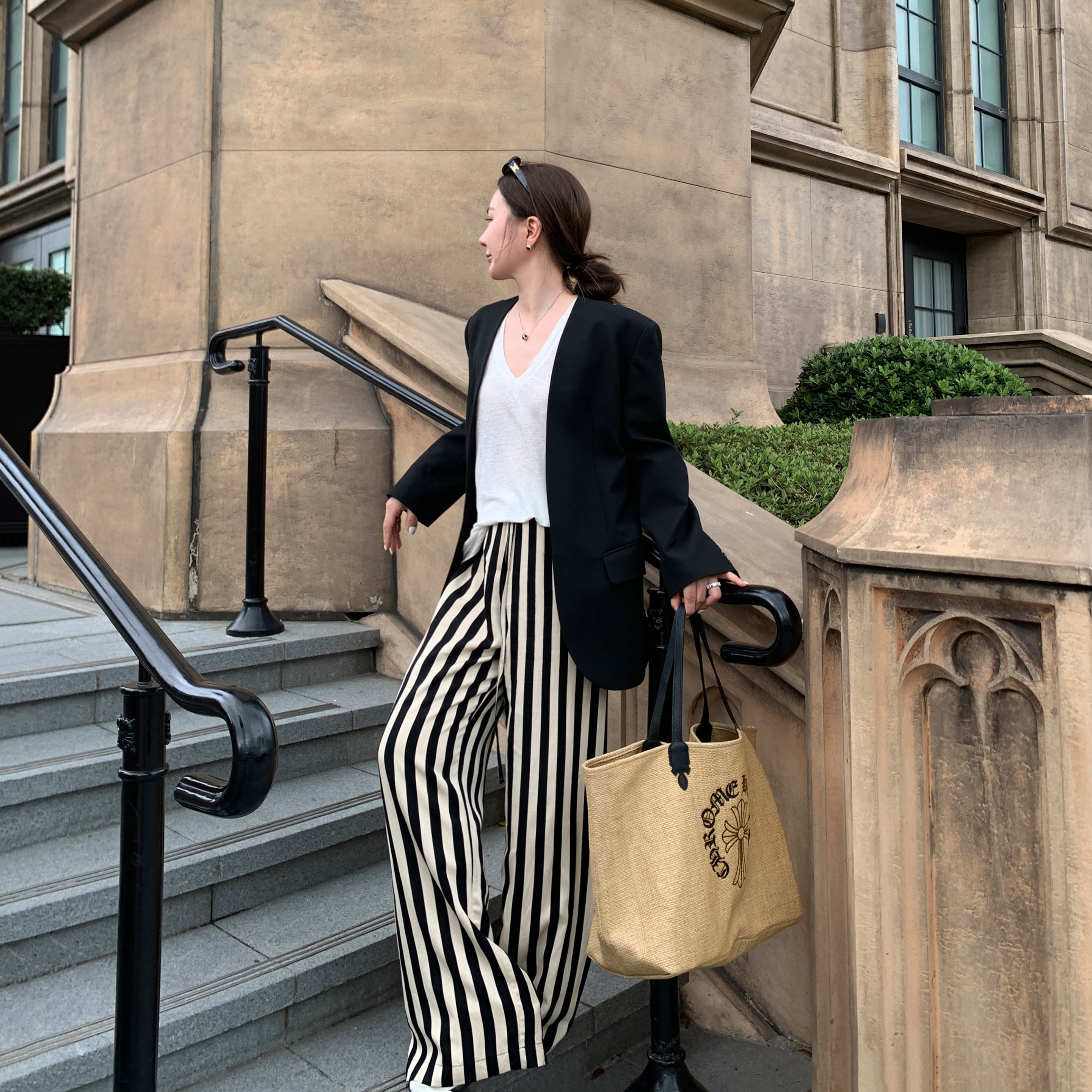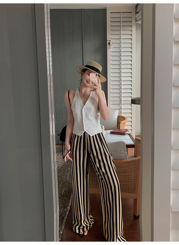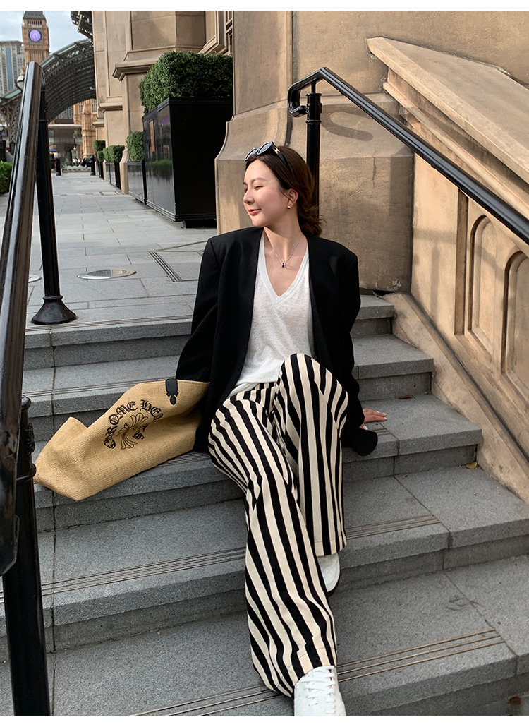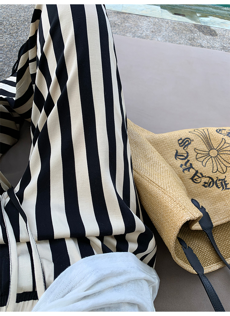 條紋長褲整體偏向于休閑又佰搭那卦的