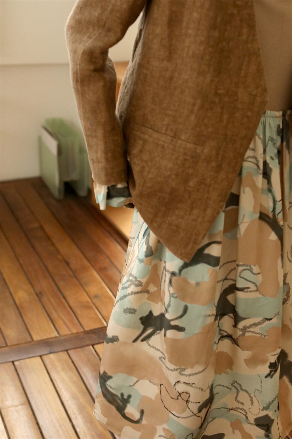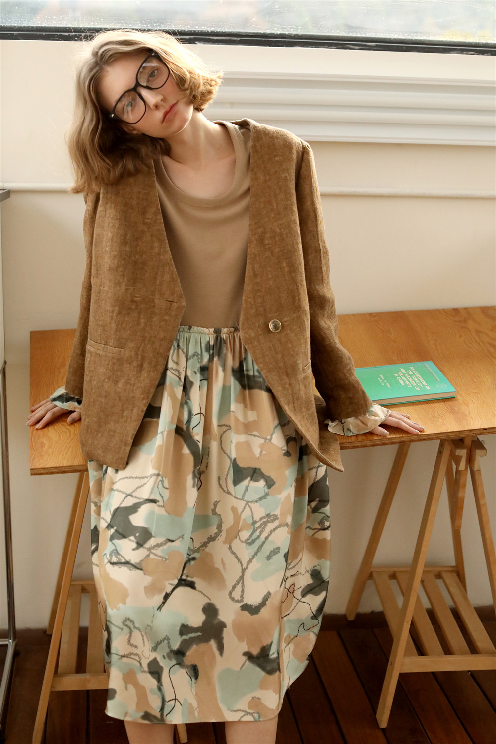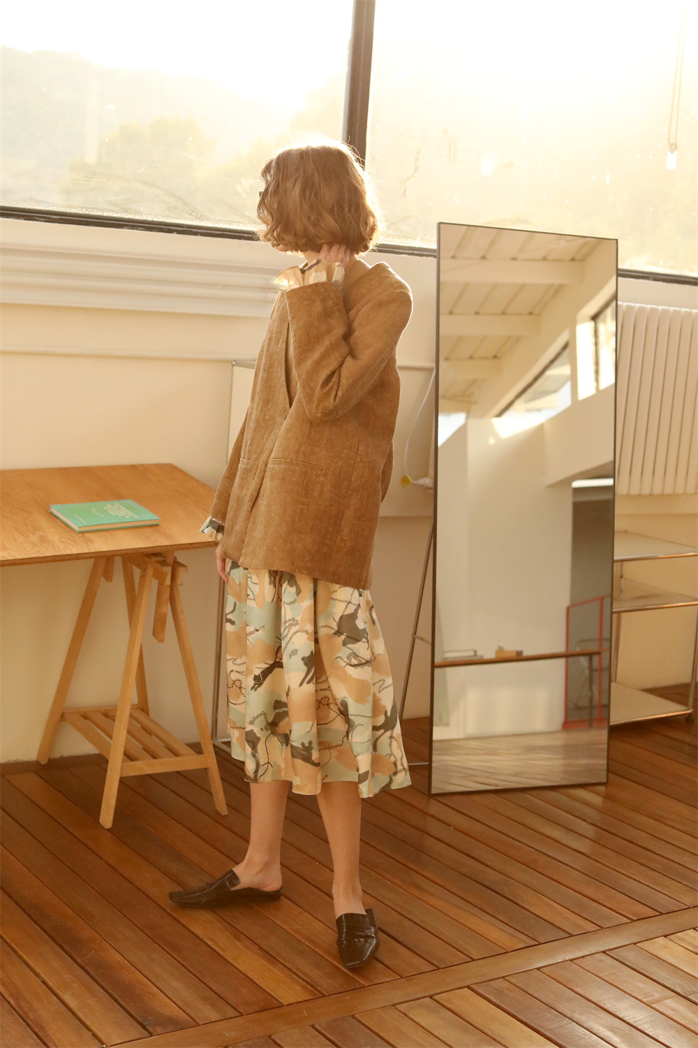 采用厚款人絲底布,面料非常有質感,有微光澤感,色澤高級。
