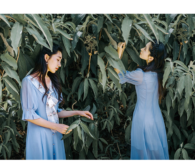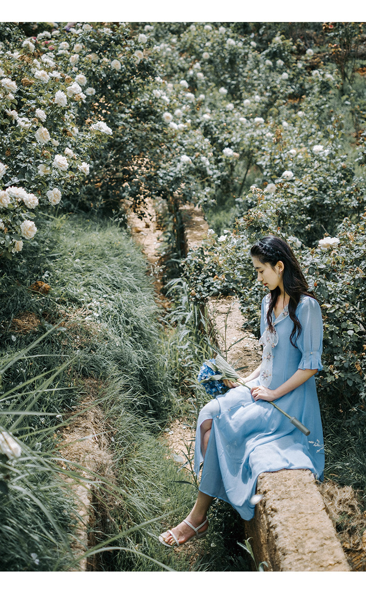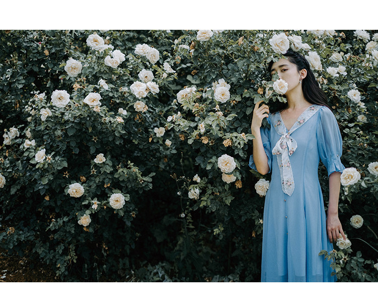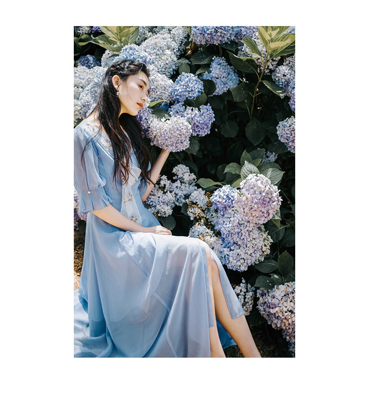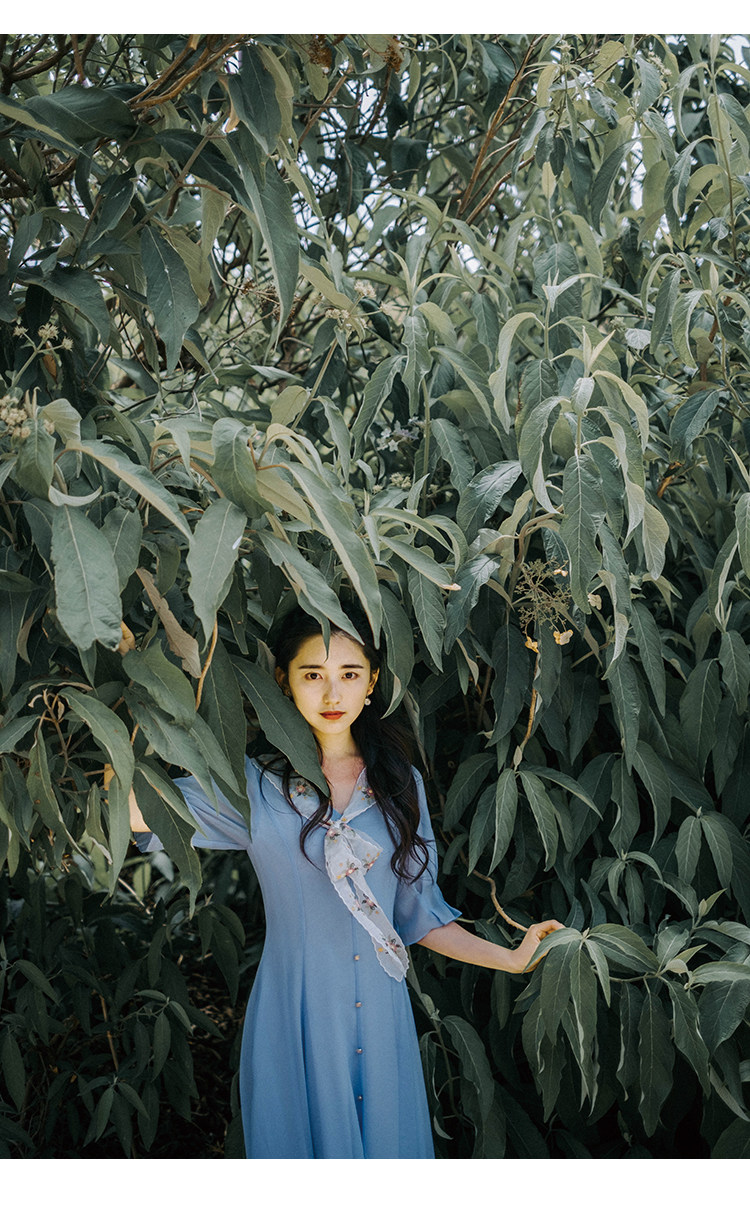 的開叉,讓裙擺隨風飄逸,有種花開花落的浪漫妙想