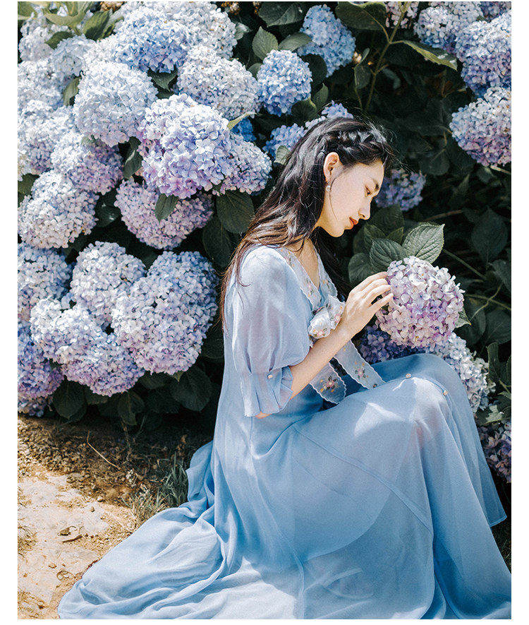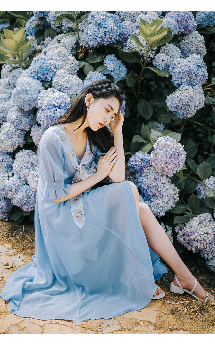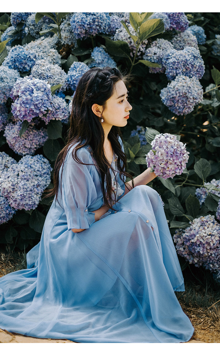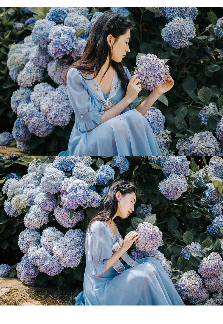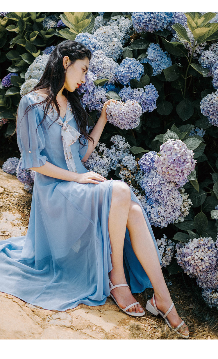 的開叉,讓裙擺隨風飄逸,有種花開花落的浪漫妙想