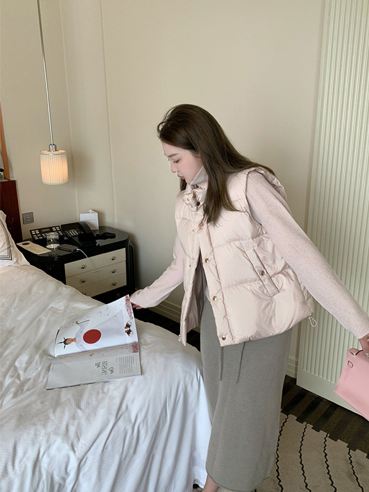 脫外套嫌冷穿棉衣嫌熱 ?一件馬甲搞定所有!這期的馬甲是我的心頭愛也是比較早定下來的一款 今年對于金扣有著別樣的情感 自帶高岌精致屬性一眼愛羽絨馬甲實穿度很高 搭配T恤 衛衣 針織衫 疊穿時髦指數都UP UP~ -Design Point-甄選90白鴨絨 手感到體感的雙重鎖溫高密輕量、抗皺、順滑的滌紡布獨立式雙層含膽內充絨 明線車縫格 絨感飽滿蓬蓬的 可愛感爆棚通身嚴選高品質五金 細節不含糊定制加厚“電泳噴漆“拉鏈頭分量和色澤都不輸Da牌氣眼和豬鼻扣均采用順色掛噴工藝啞光且高級今年超火的淺金logo四合扣也安排上 微閃不俗超養顏眼的~進口彈力繩 收縮之間便利調節松緊度 版型完全不挑身材 chao級百搭!上身秒變韓國小姐姐feel~H廓形結構 纖瘦量感的同時大大的包容度衣擺兩側外貼式斜插口袋 藏個物納個手 暖意融融適度的衣長 鎖溫的同時也夠利落不累贅.今年很火的小立領版型 軟萌可愛~防風護頸立領設計 四合扣門襟自由的扣合度 方便又顯質感衣襟拉鏈按扣設計 簡約氣質 穿脫方便保暖性和防風度都很贊 -Material &Color-黑色經典高及是永不出錯的安全色日本棕是很奶的香檳色非常du特 很多面料都沒有這么少見的時髦色調日常搭配還是蠻加分的裸粉色非常本命了 少女心爆棚hen低飽和度的粉色 wanquan不挑人穿有種很自然的微光感 顯白時髦 減齡感十足 墻裂種草~FABRIC CONTENT ● 面 料 成 分 與 保 養 100%滌綸填充:90白鴨絨 充絨量:150g 洗滌方式:建議手洗/干洗 不要機洗