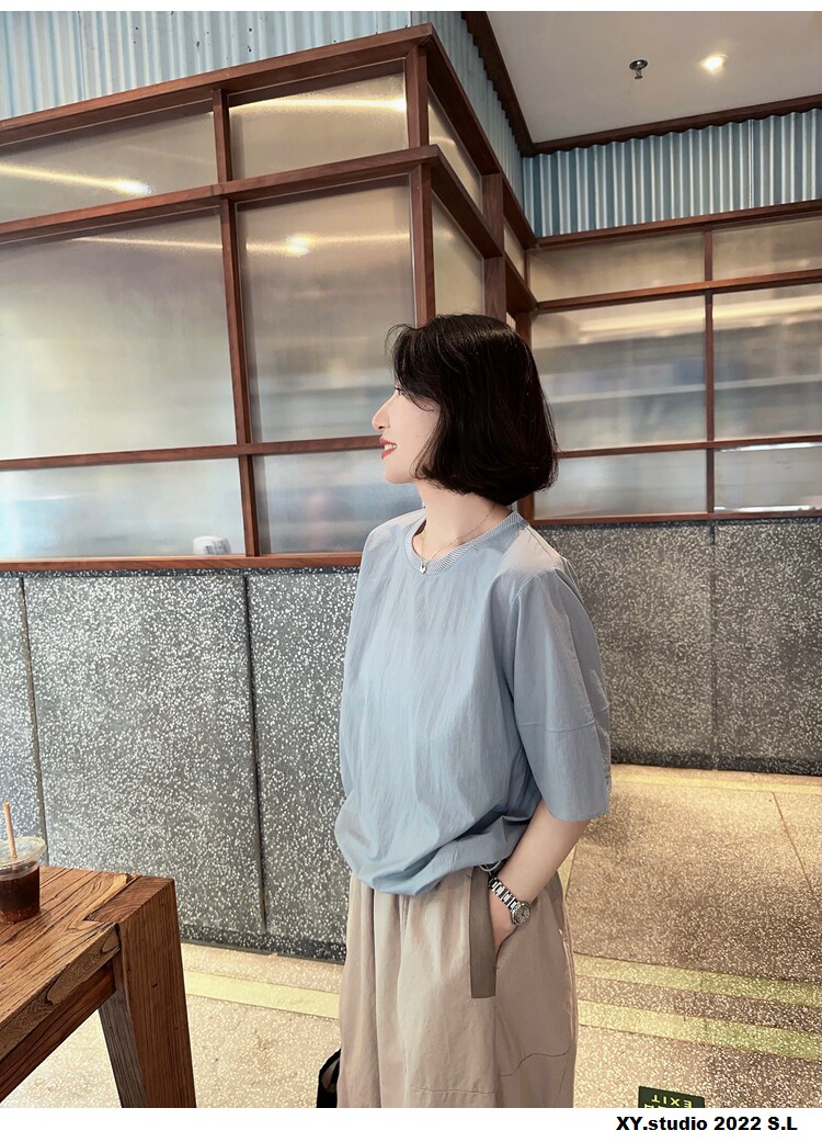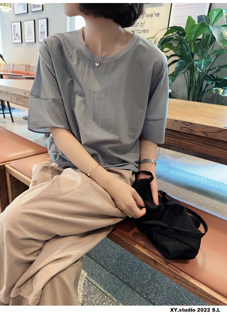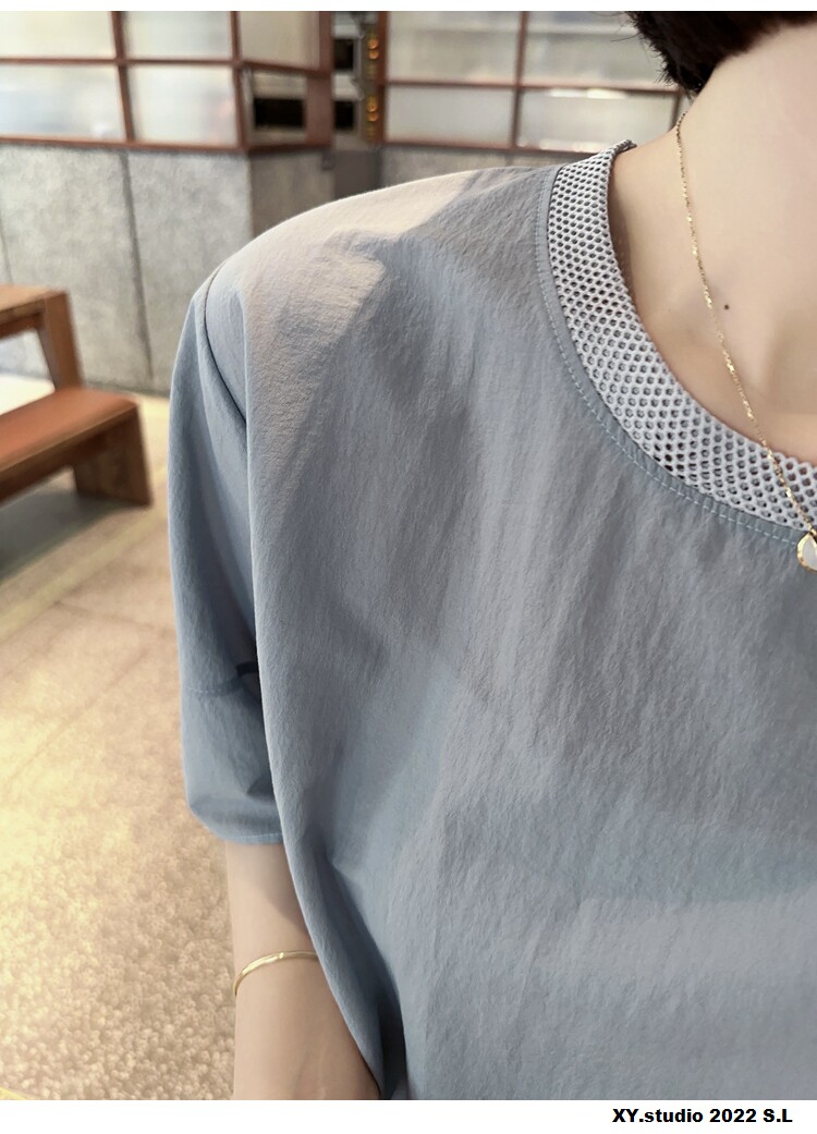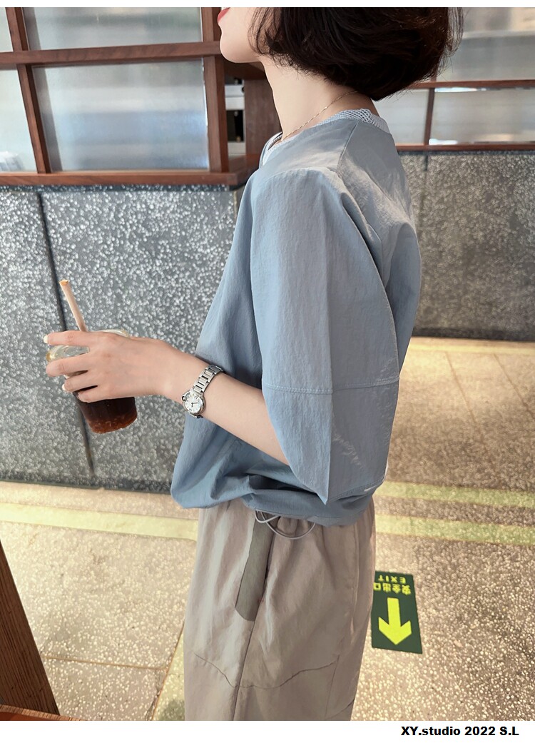 + 備注 :-網格圓領拼接 下擺條紋拼接 松緊抽繩下擺-