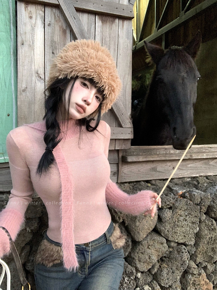 紗線軟糯又親膚,仿貂毛的拼接質感絕了