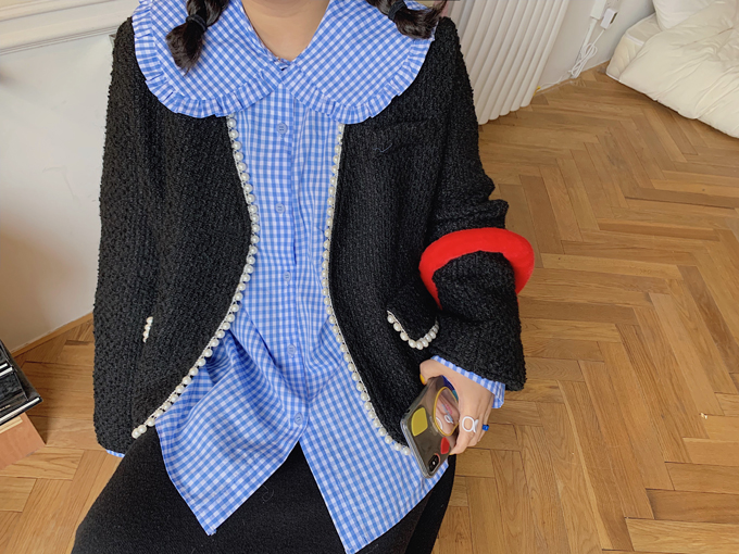 甜美可愛的娃娃領是這件襯衫設計的一大亮點