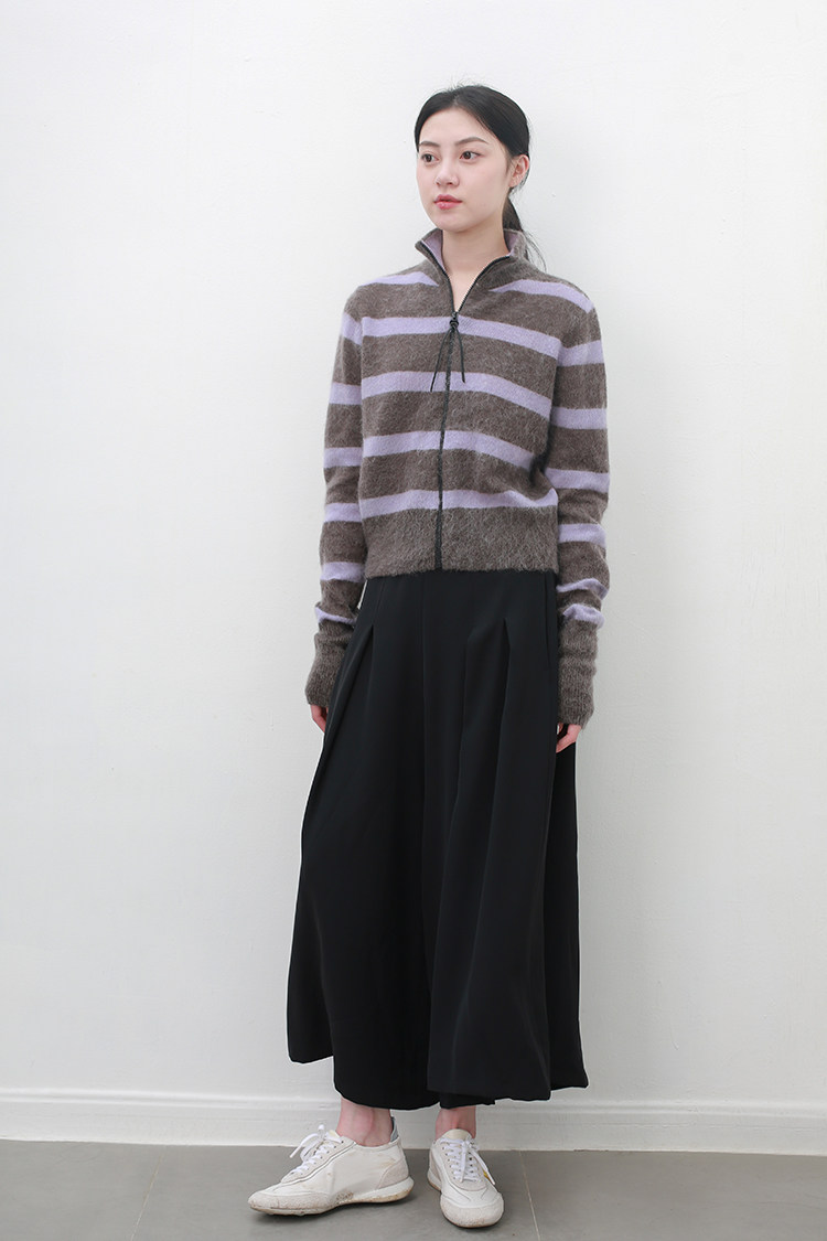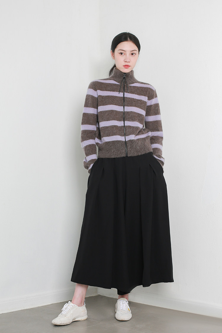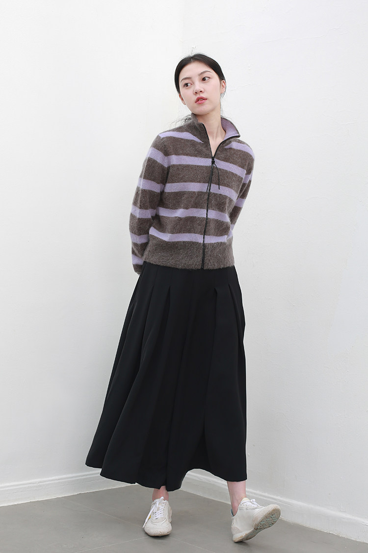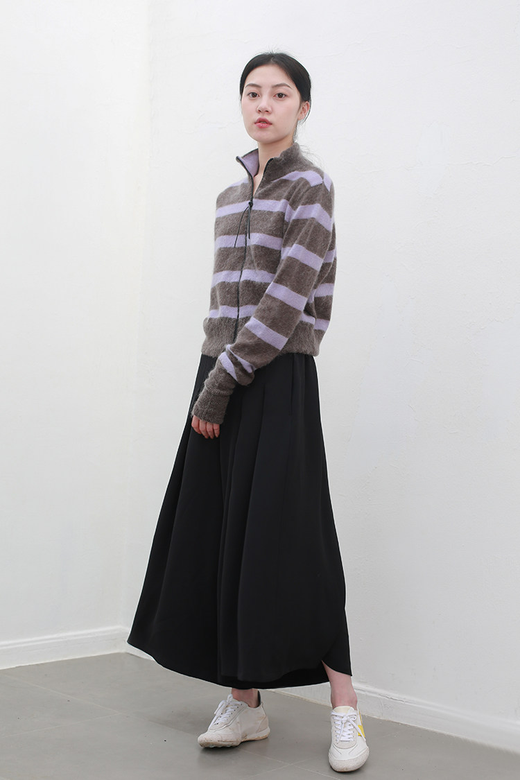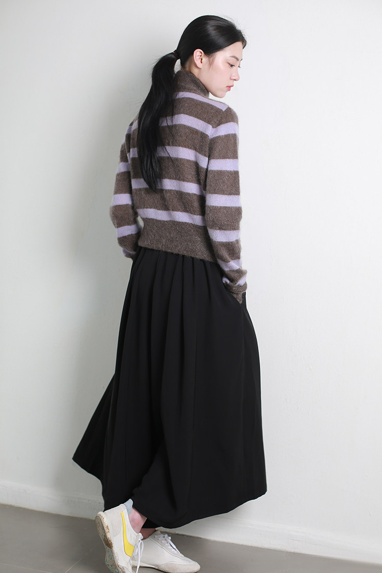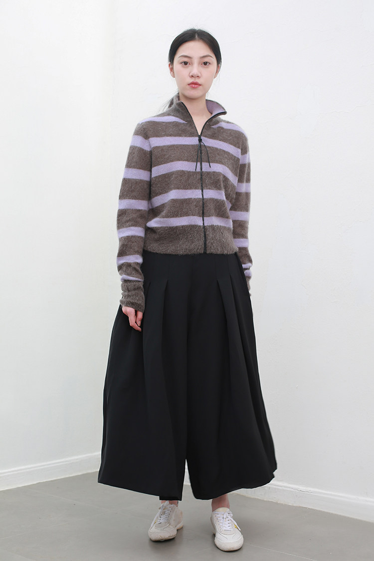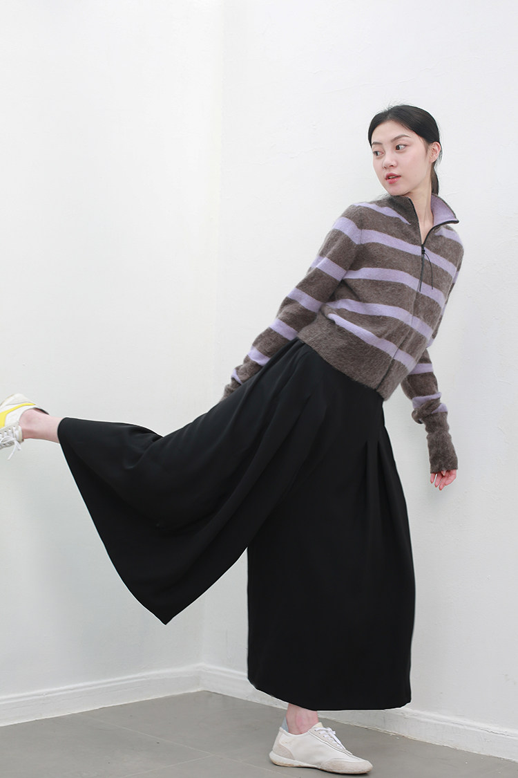 褲管前后都有打攬做寬裥的百褶設計,下擺有圓弧的圓潤感,低調又不失趣味性,打造靈動的線條感。