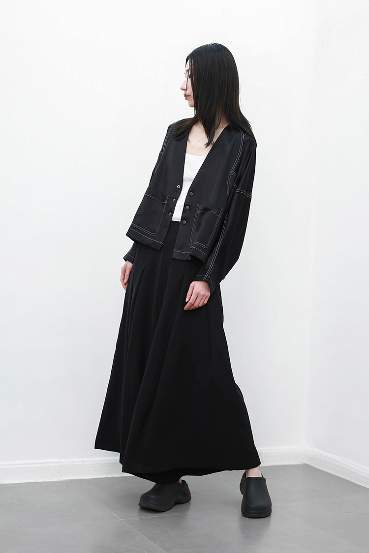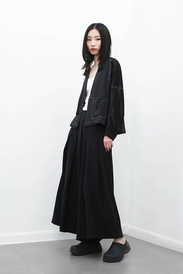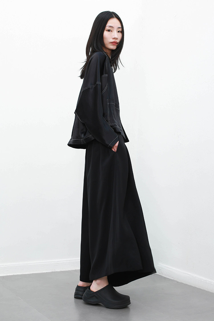 闊裥百褶設計,帥氣瀟灑,飄逸俊美,造型感強。