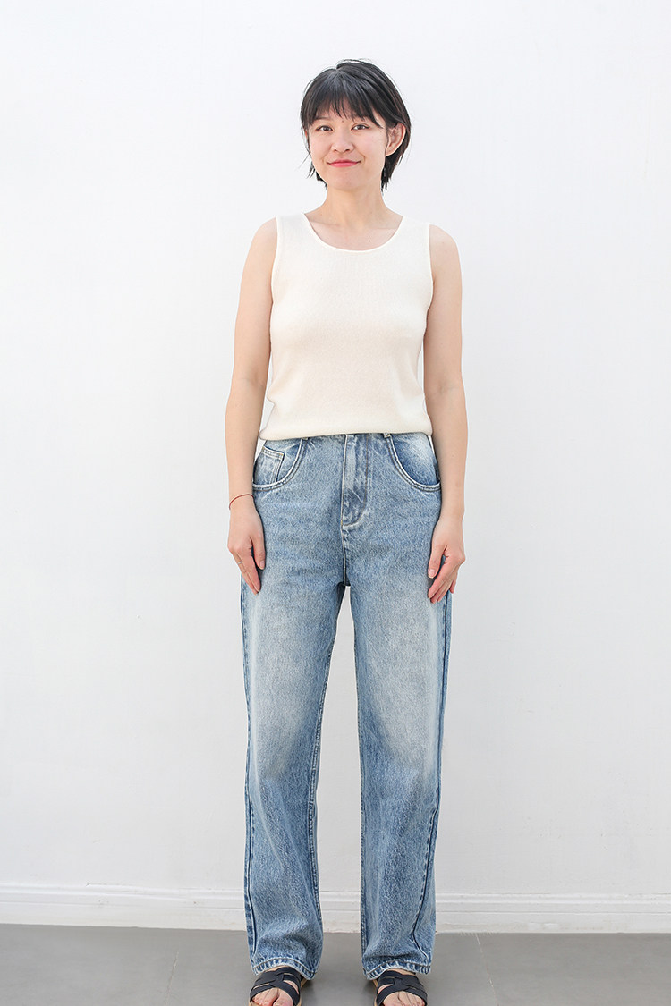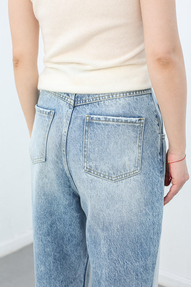 褲身正面前后磨白處理,增添復古層次,還原牛仔本身的味道。