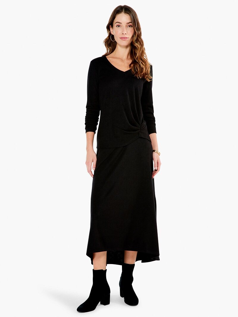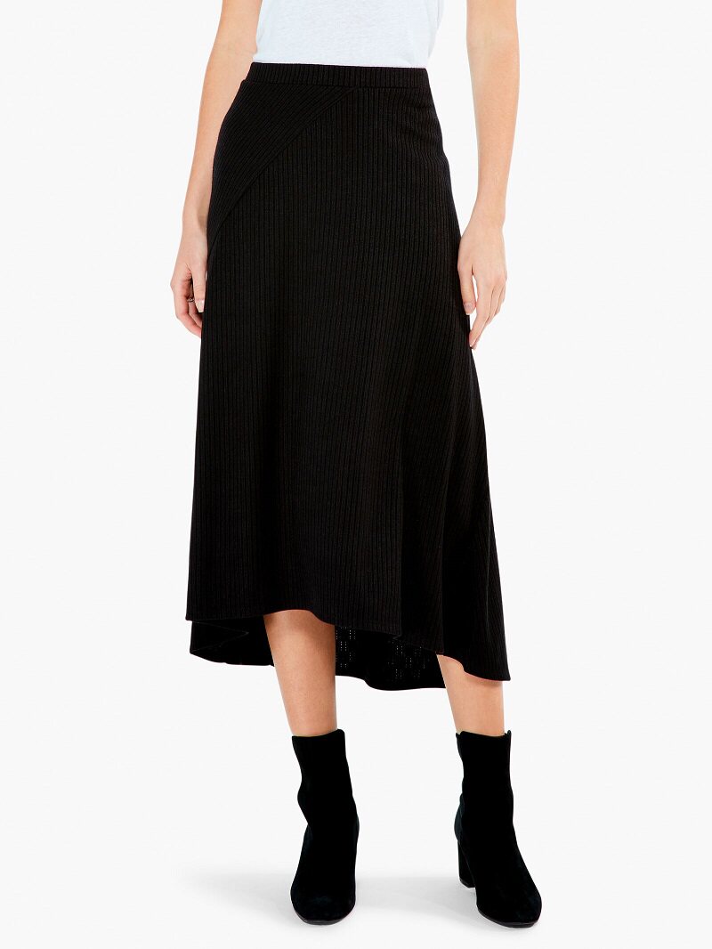 高腰長半裙斜接縫下擺,立體剪裁前短后長,一套穿上增加現代感,暖和又顯瘦,彰顯品位和氣質。