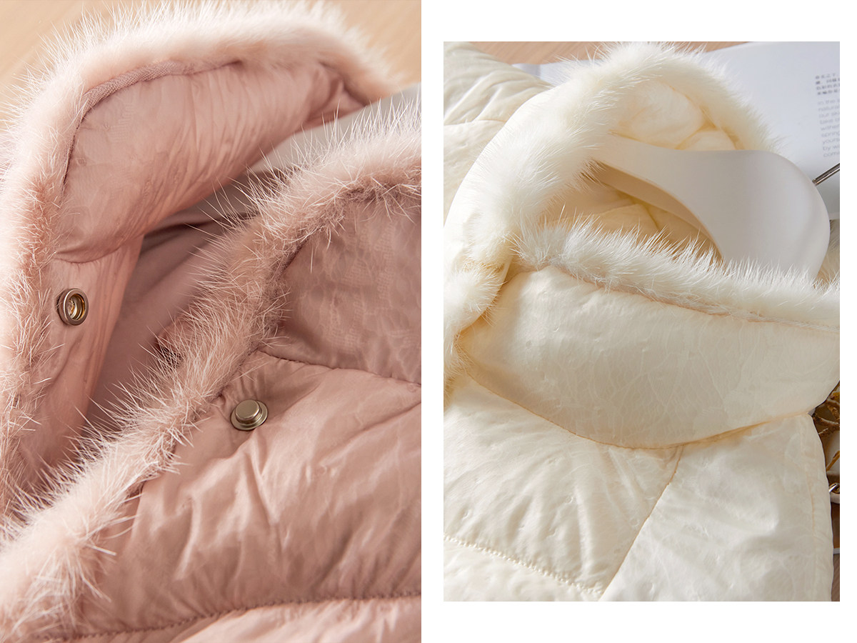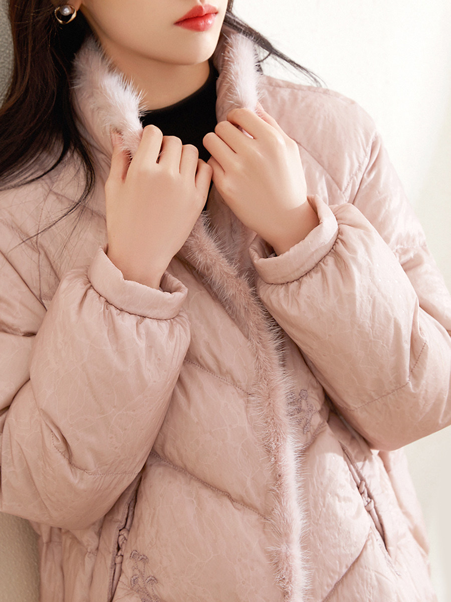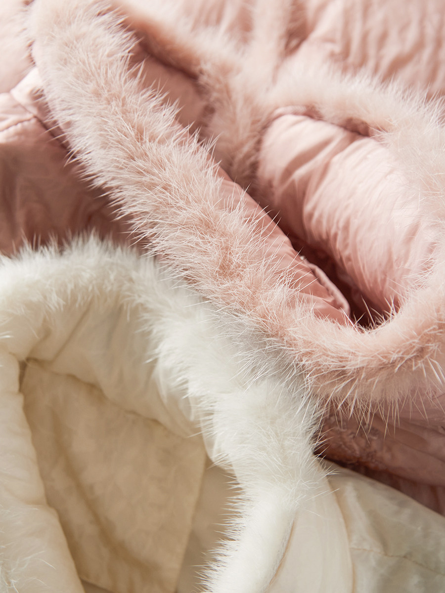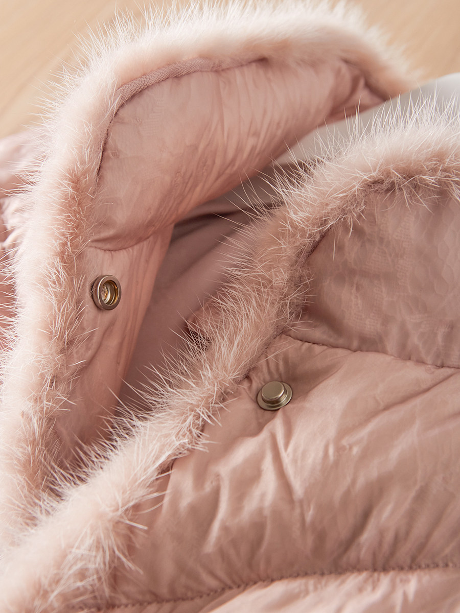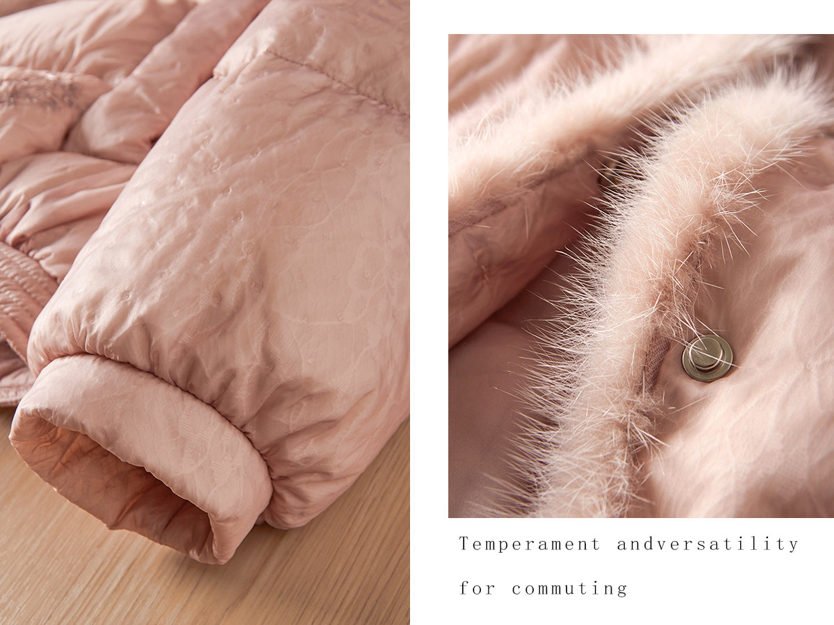 這 款 水 貂 毛 拼 接 蕾 絲 肌 理 羽 絨 服