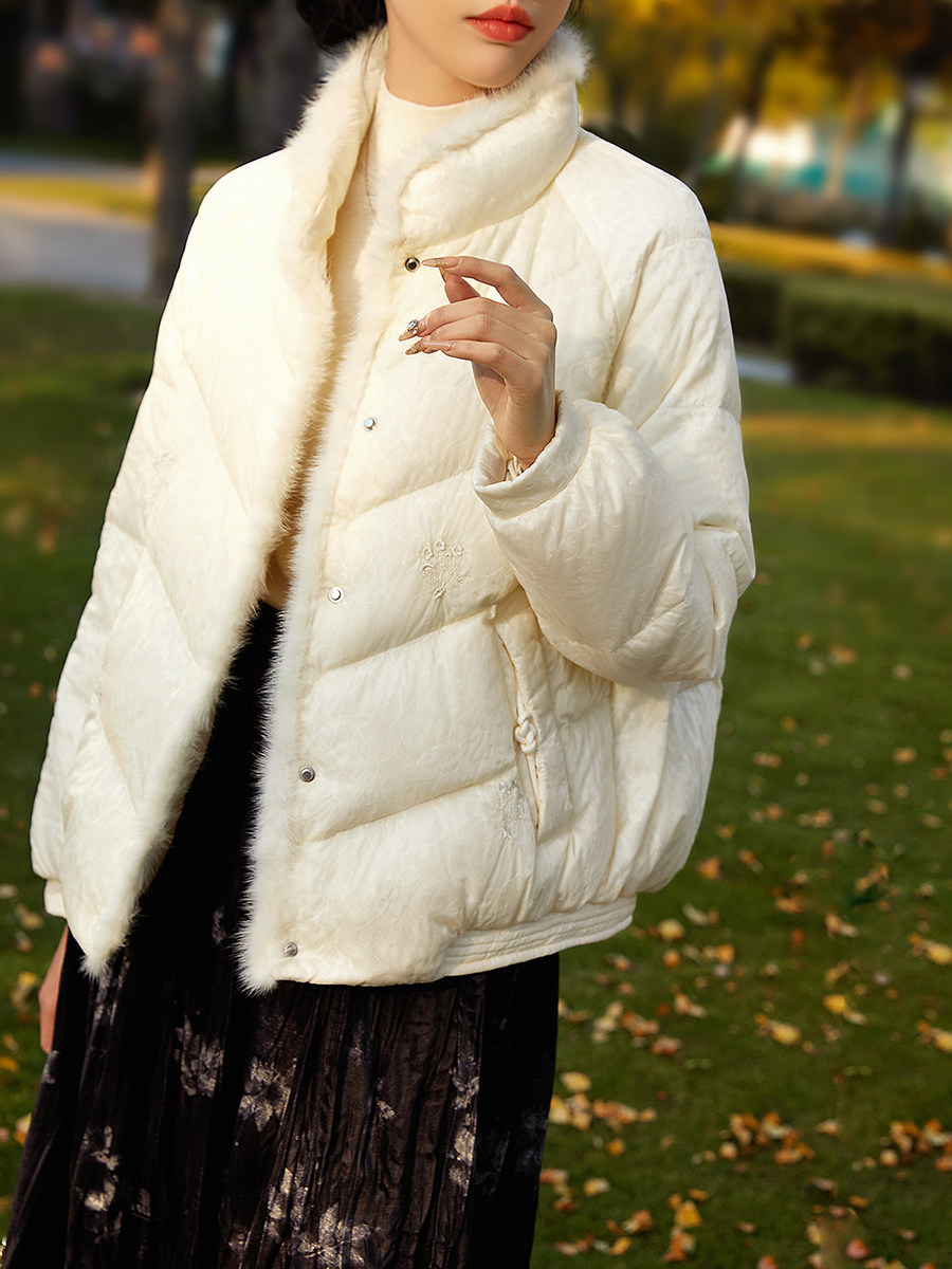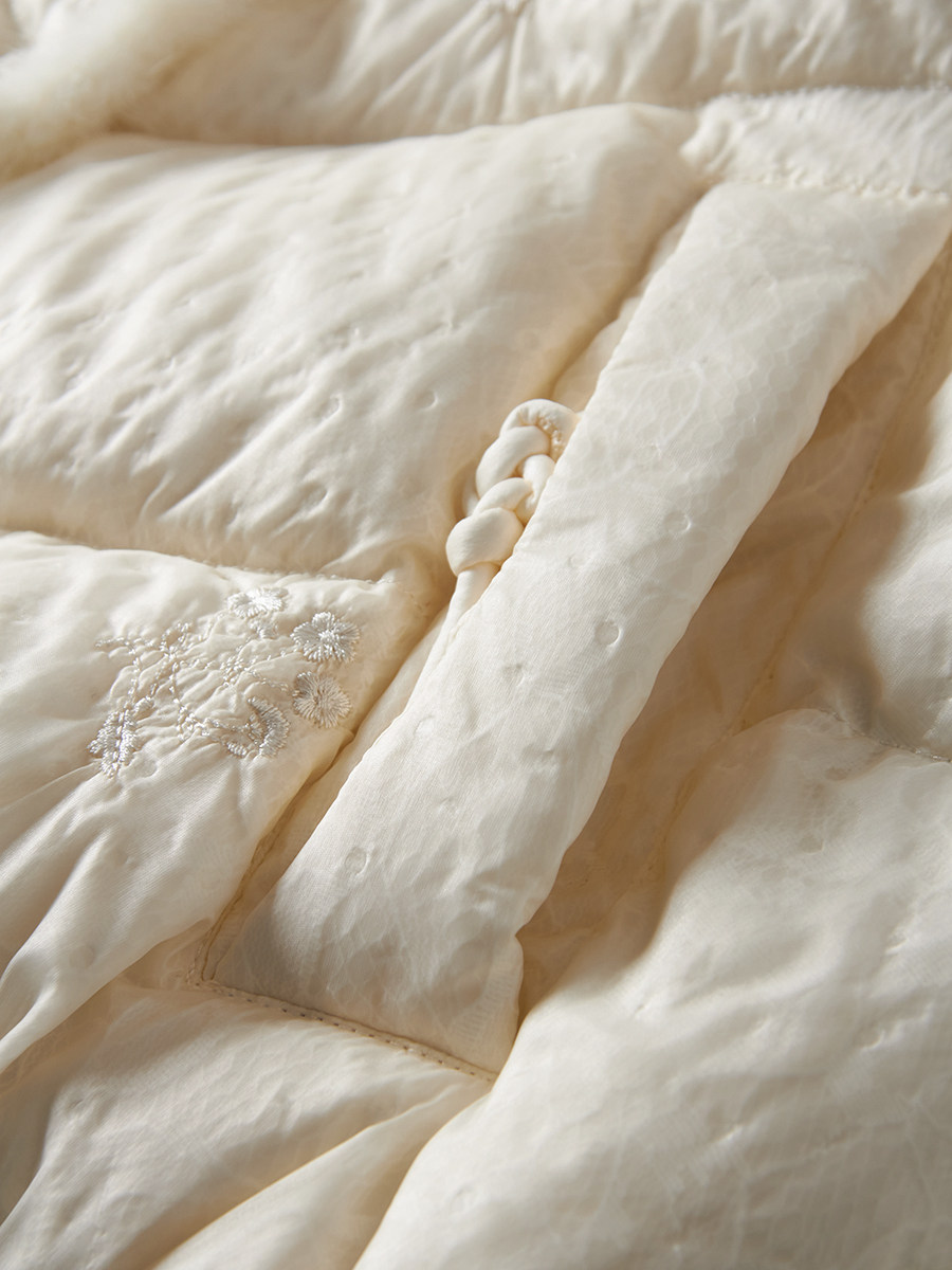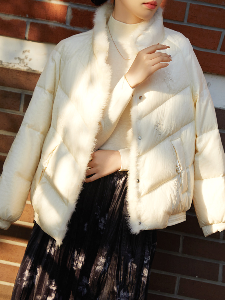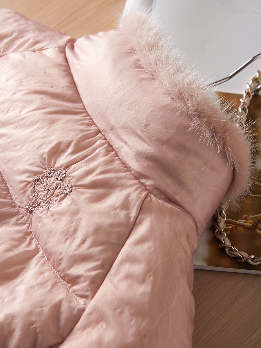這 款 水 貂 毛 拼 接 蕾 絲 肌 理 羽 絨 服