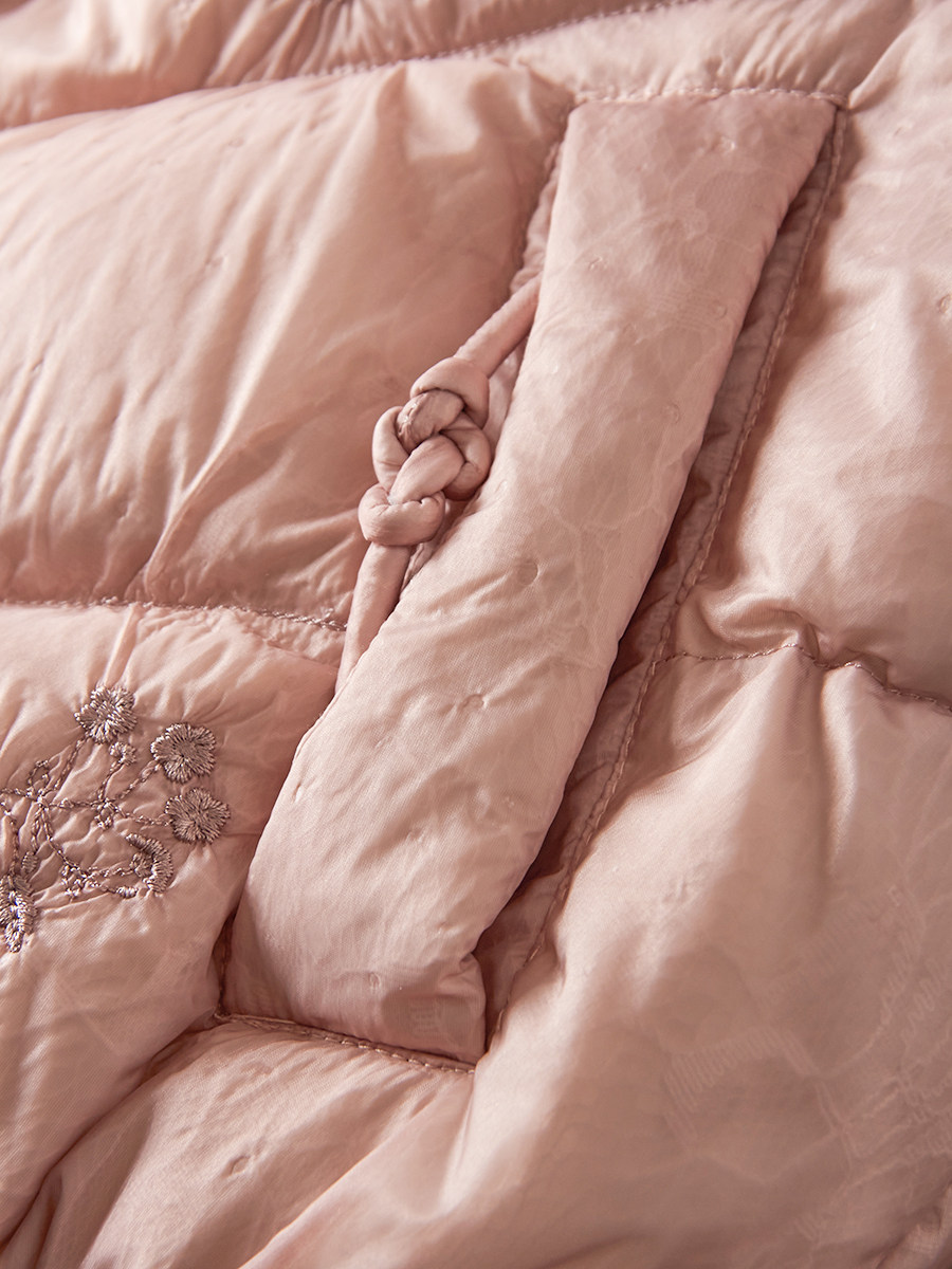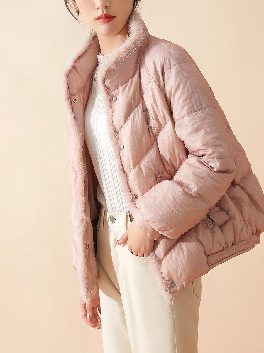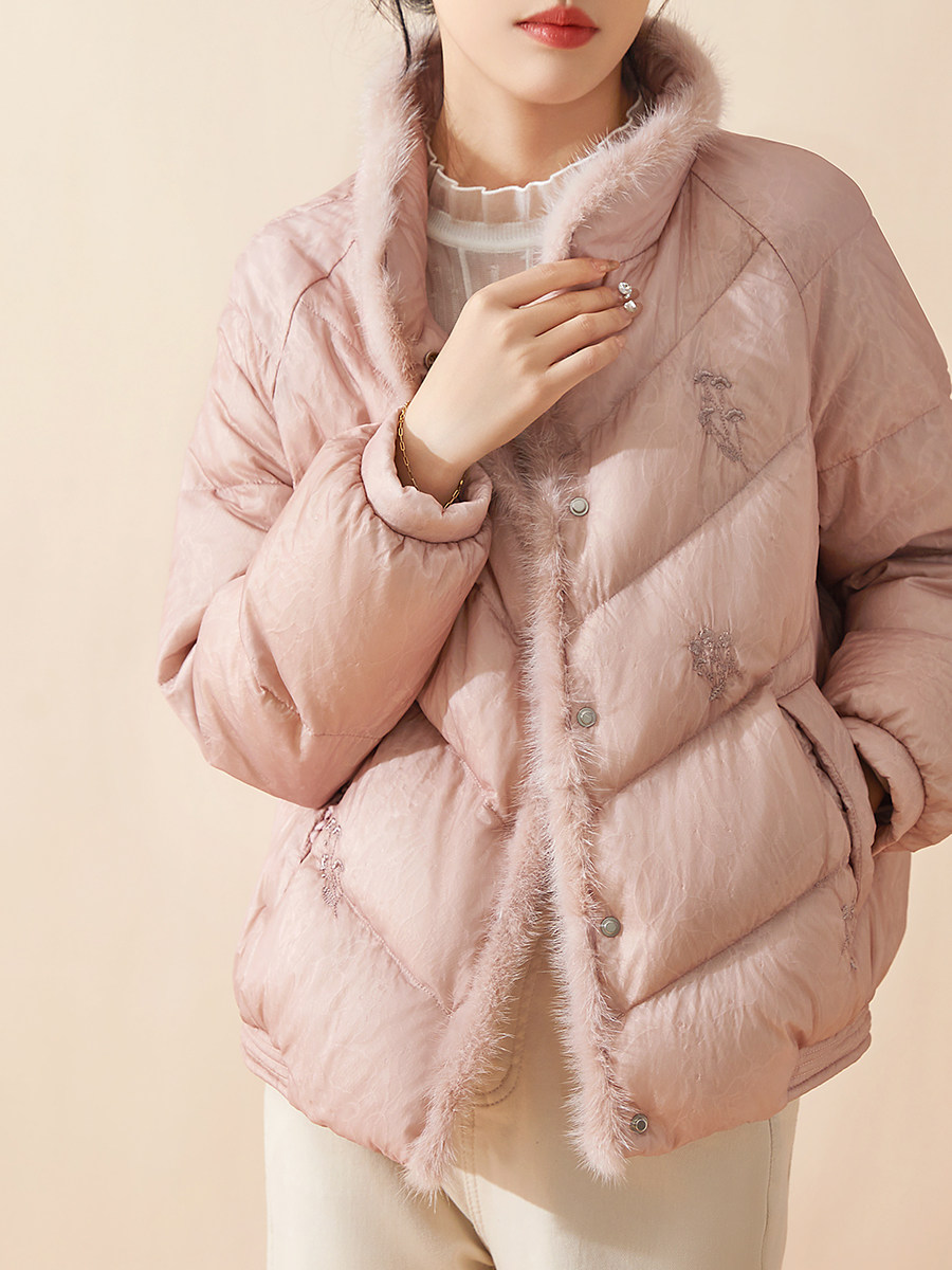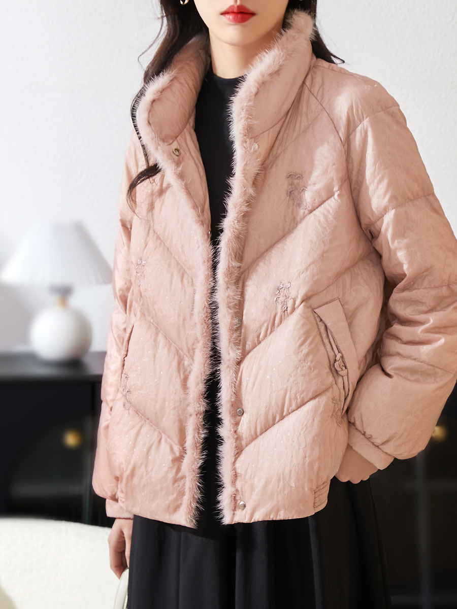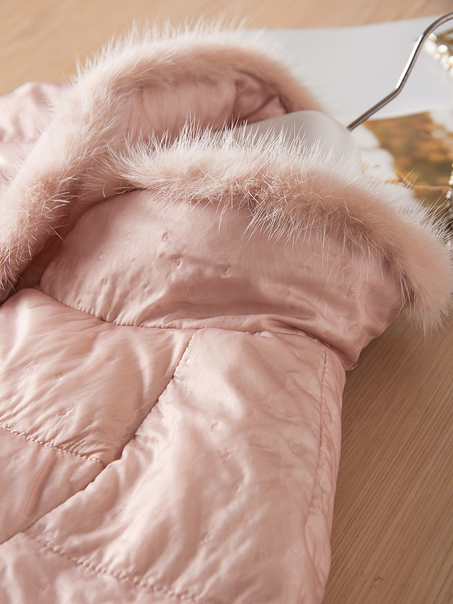 這 款 水 貂 毛 拼 接 蕾 絲 肌 理 羽 絨 服