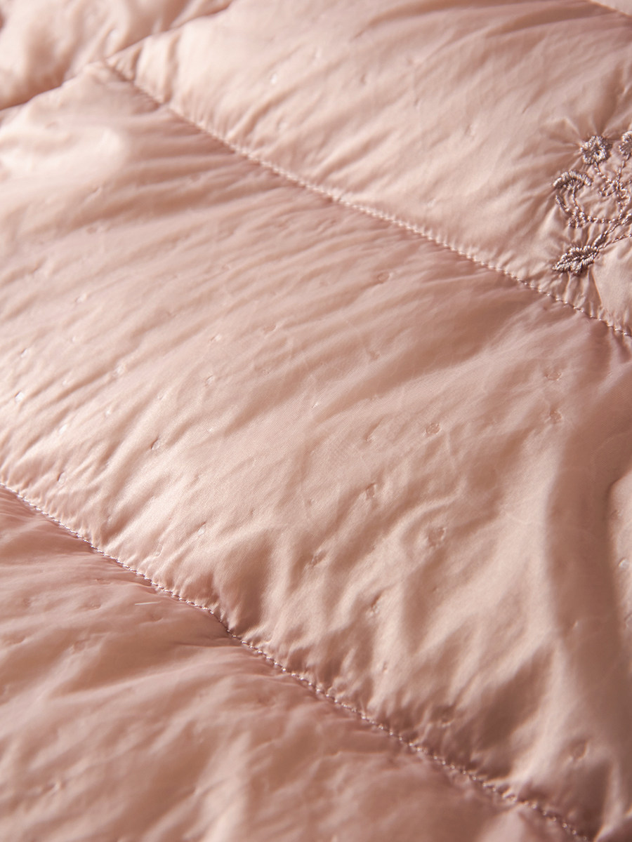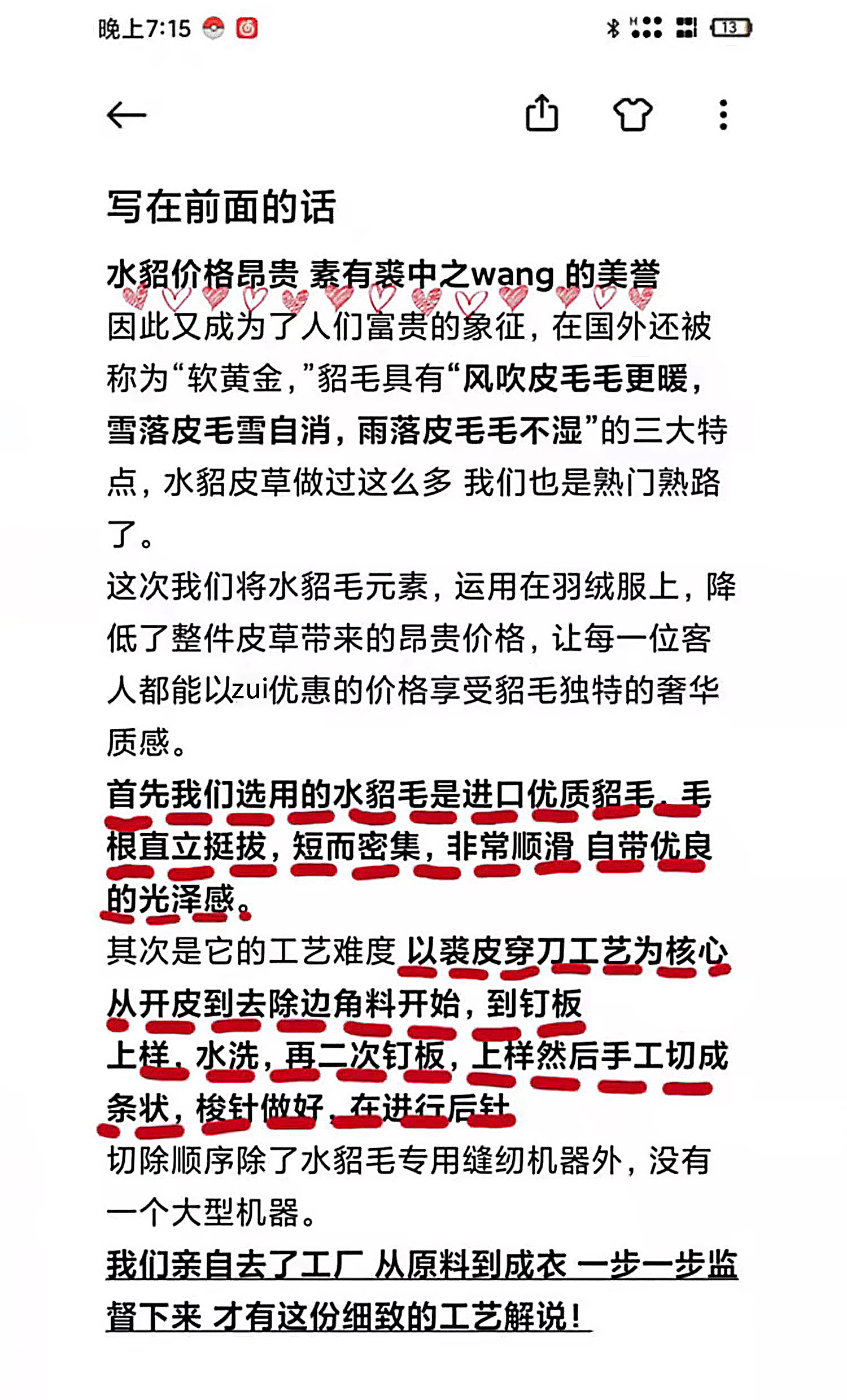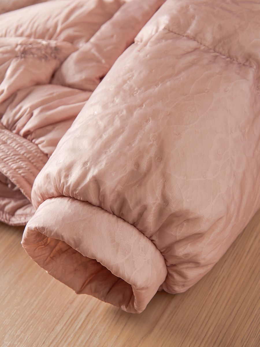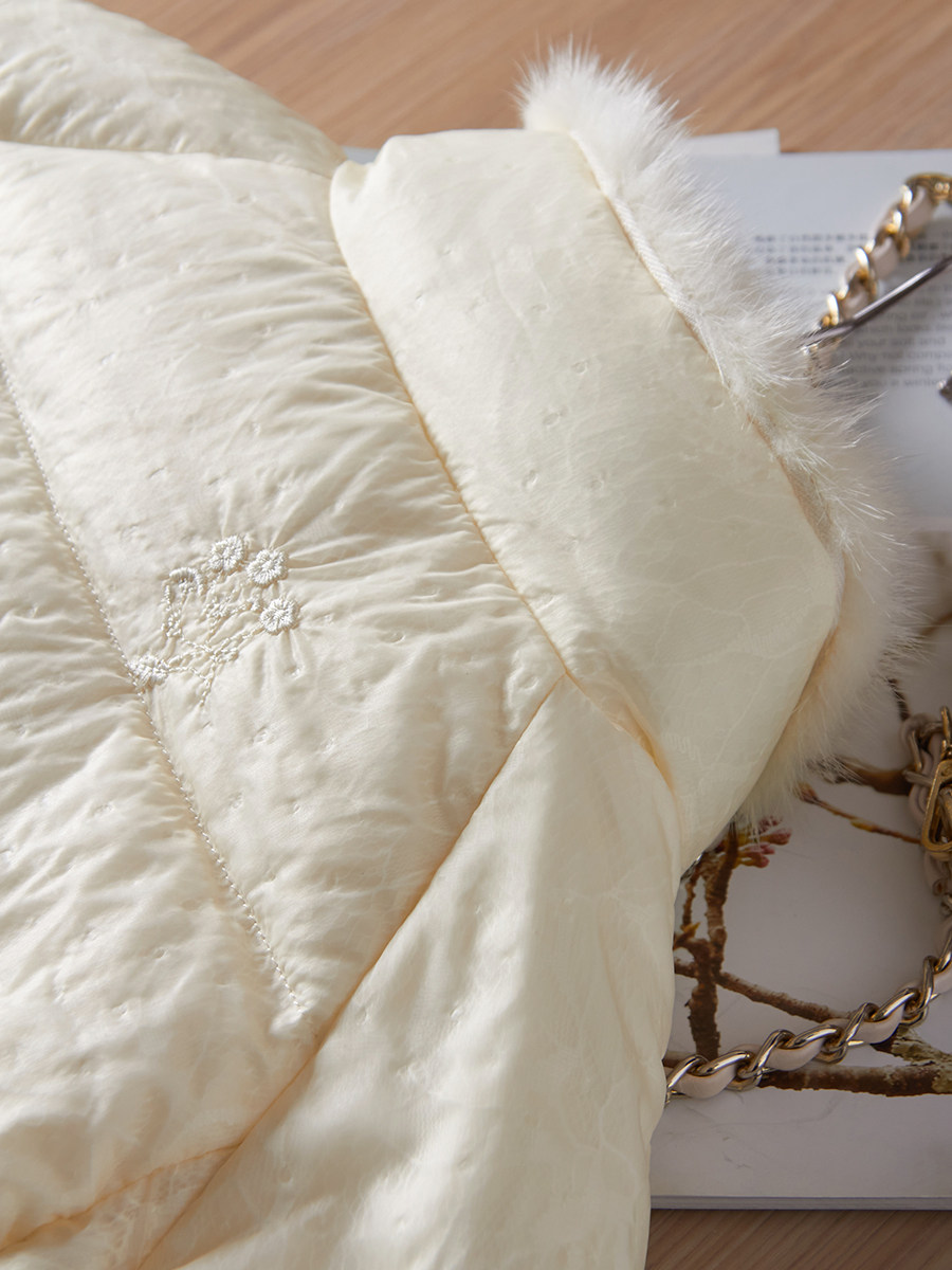 這 款 水 貂 毛 拼 接 蕾 絲 肌 理 羽 絨 服