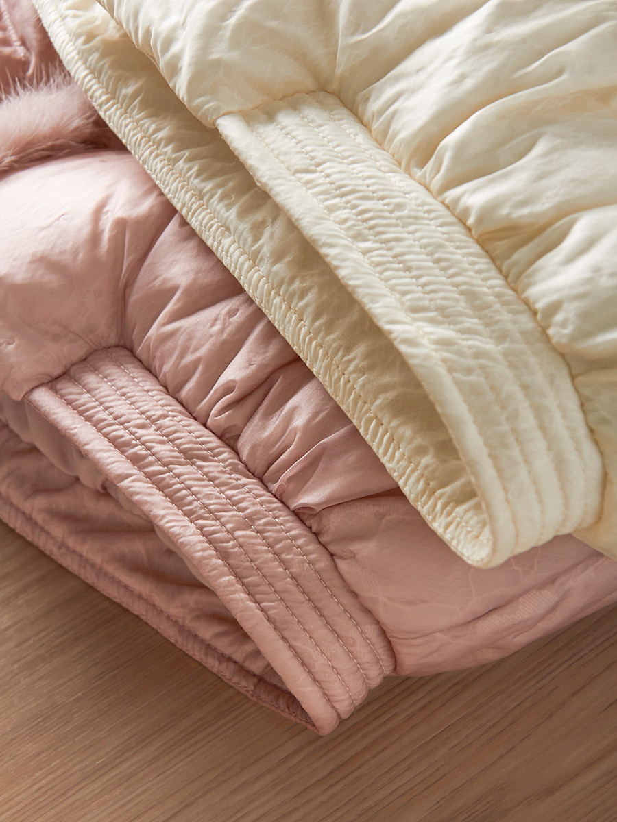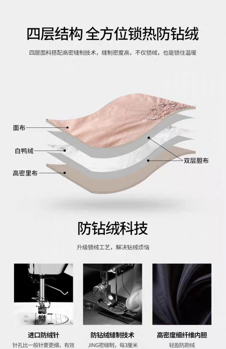 絨子含量更高,飛絲/羽絲含量更少,保暖更出眾