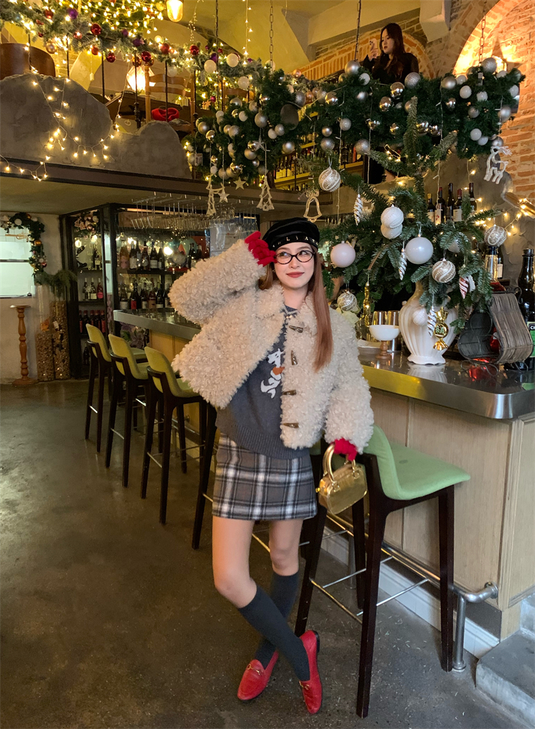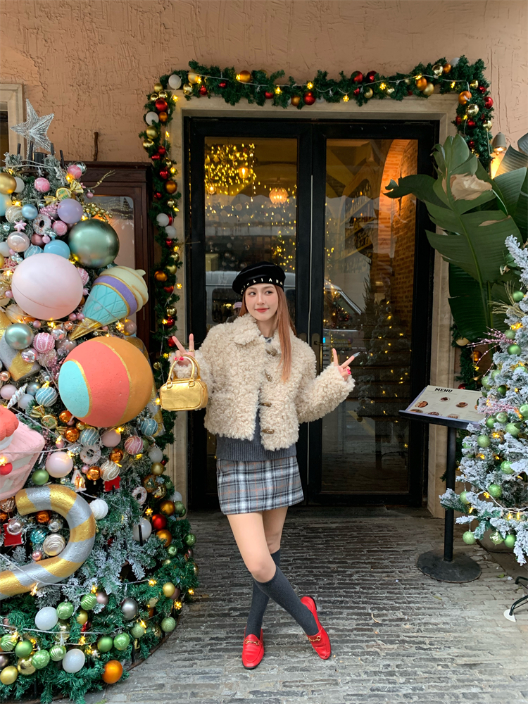 領子是一個可愛的小翻領設計,無論是搭配什么樣的內搭都hen能出彩!