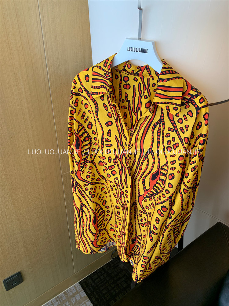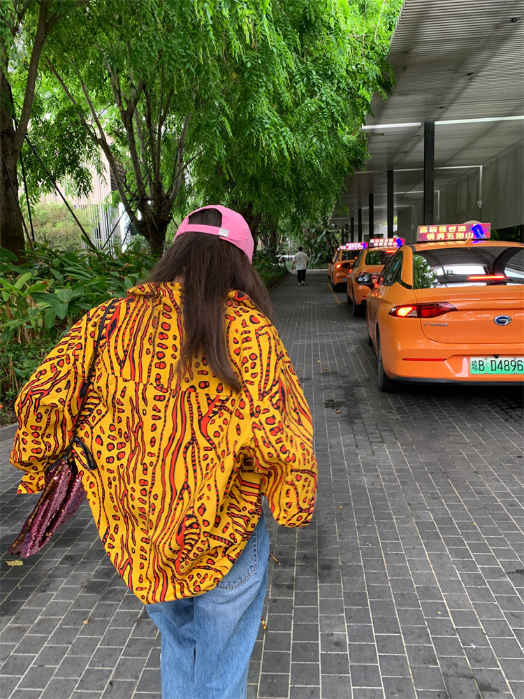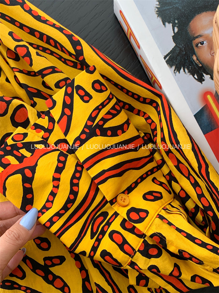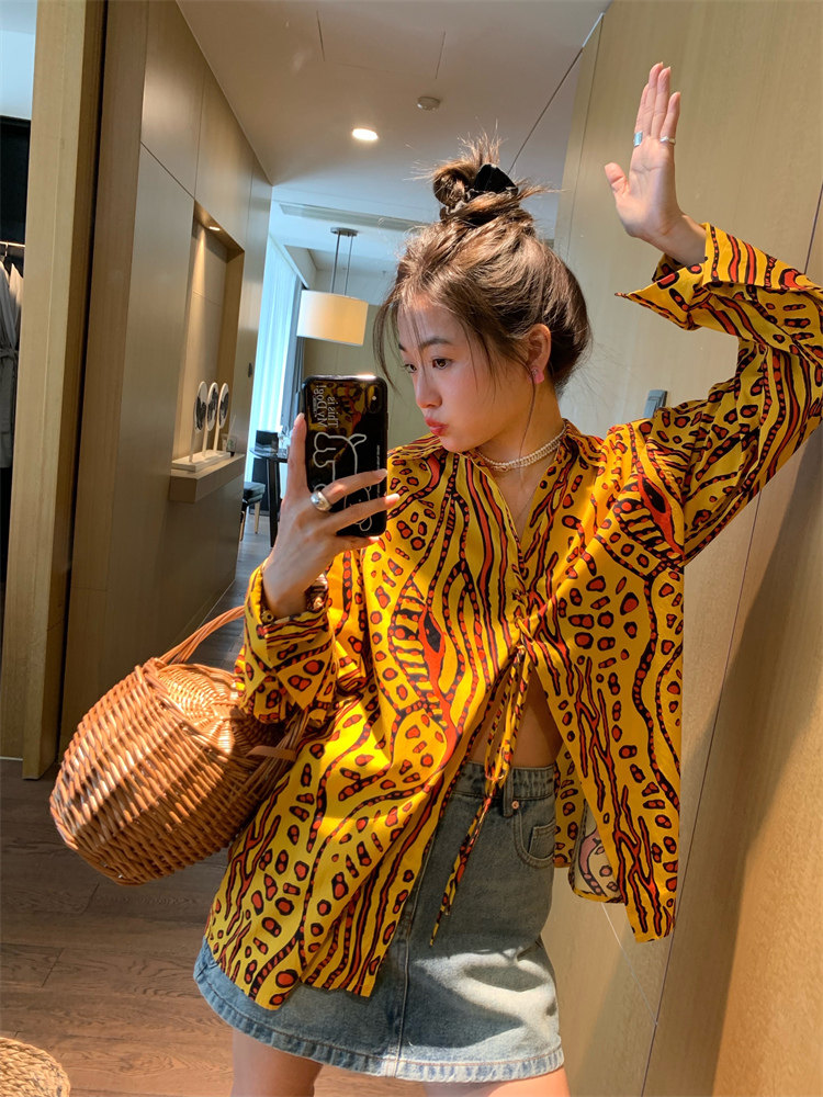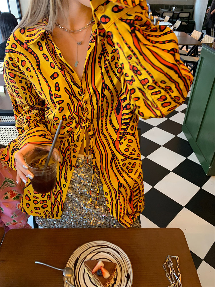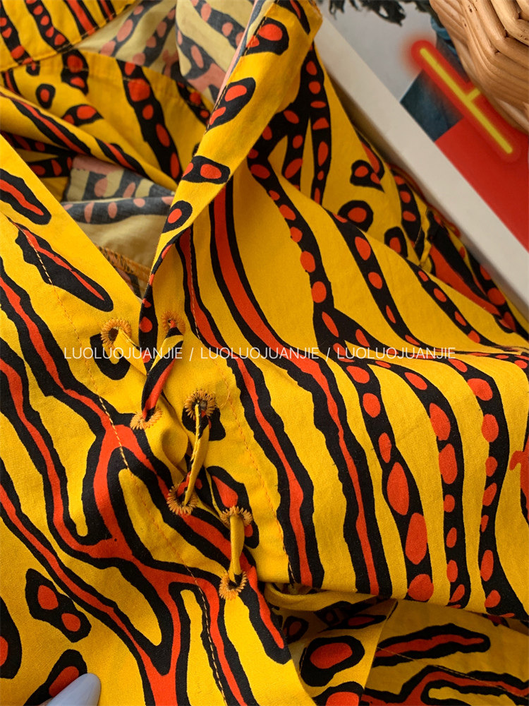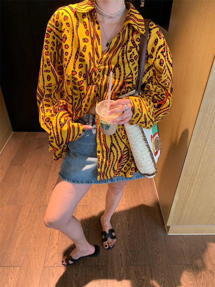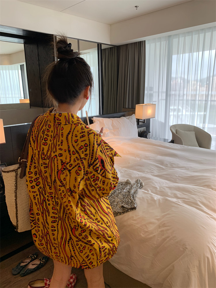 這款襯衫的豹紋區別于普通棕色豹紋,是一個黃色調的花斑豹紋!
