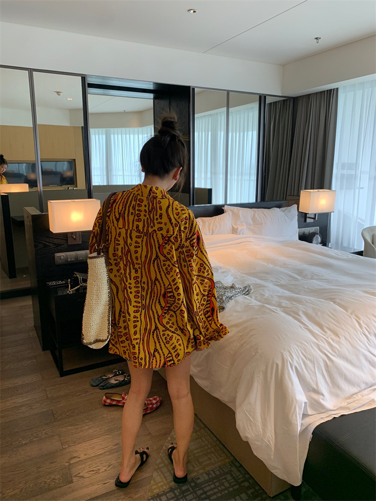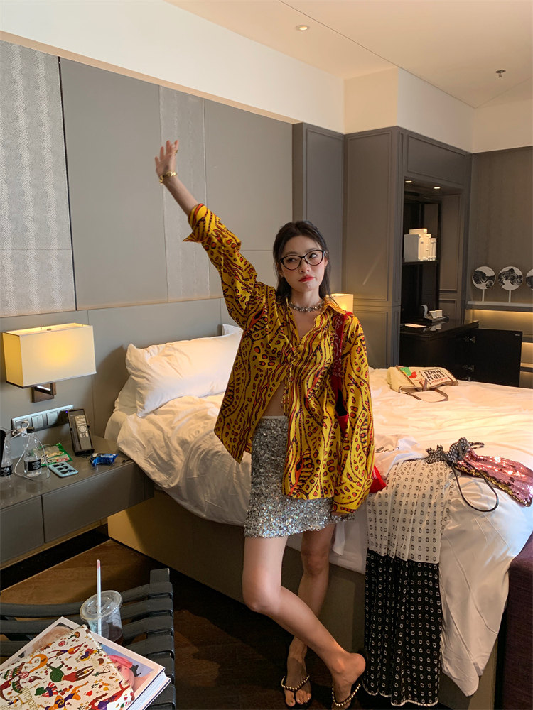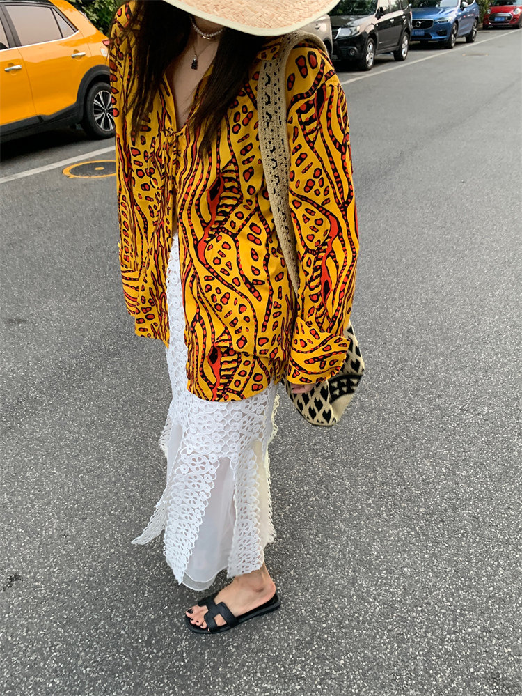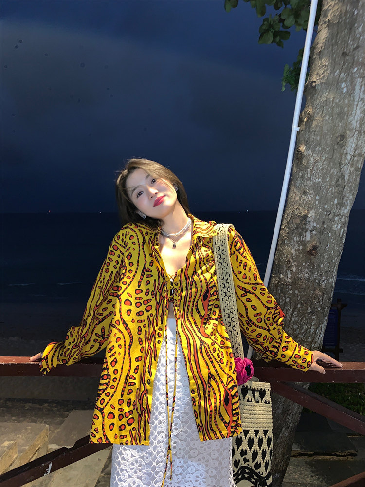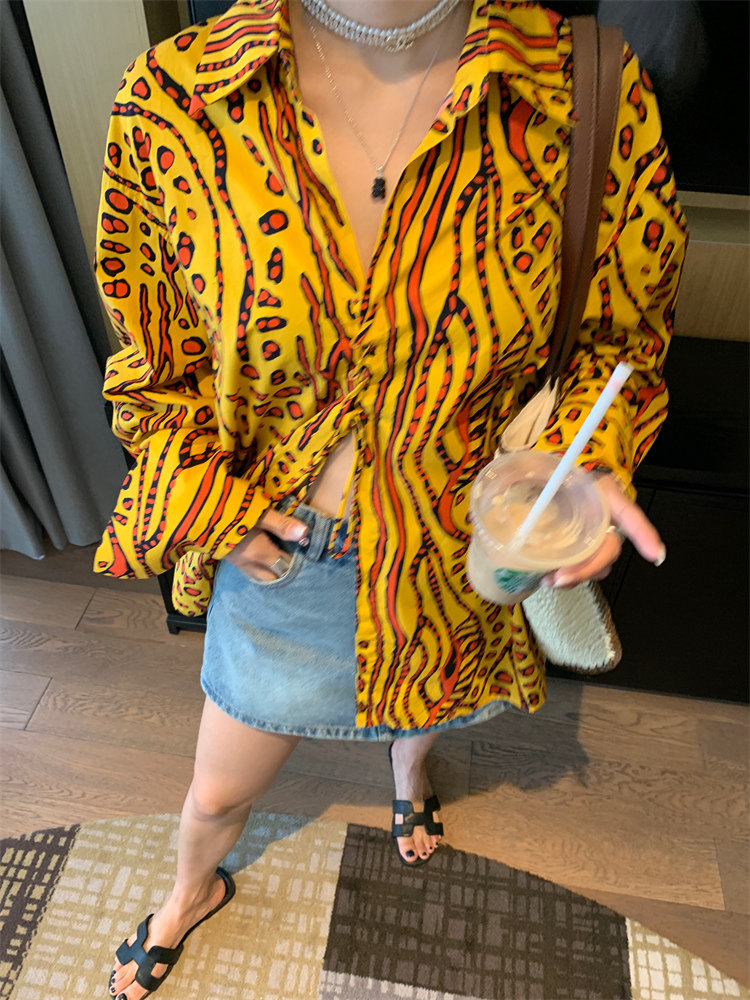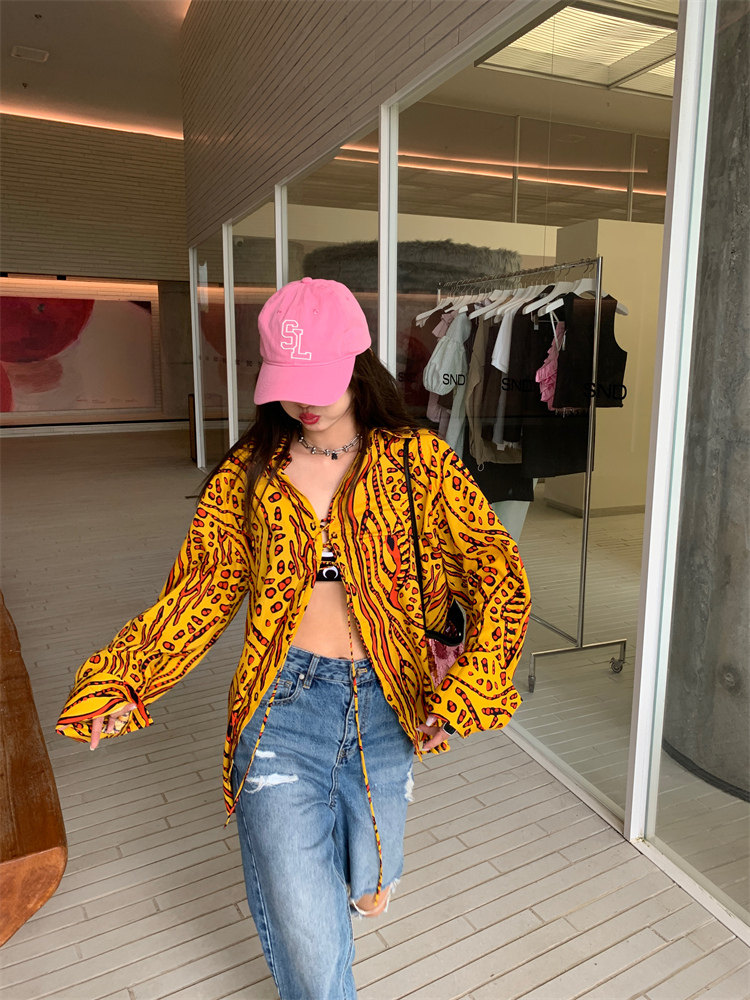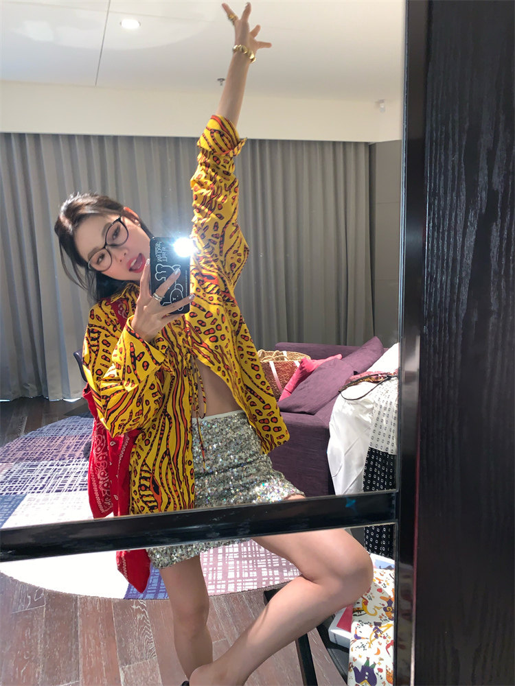 這款襯衫的豹紋區別于普通棕色豹紋,是一個黃色調的花斑豹紋!