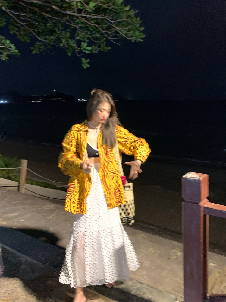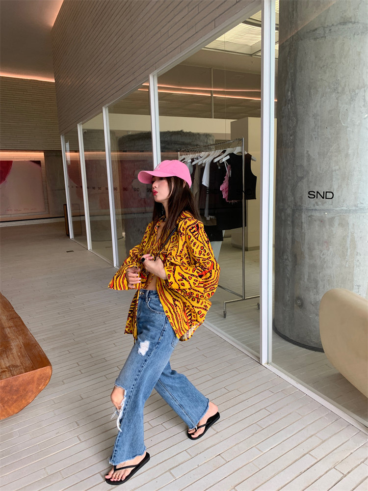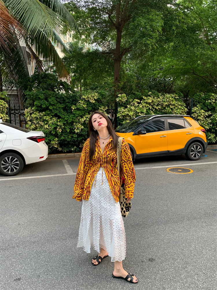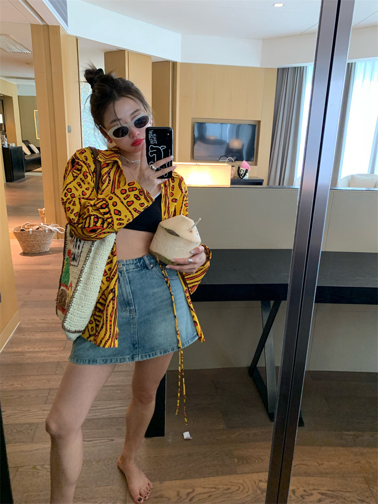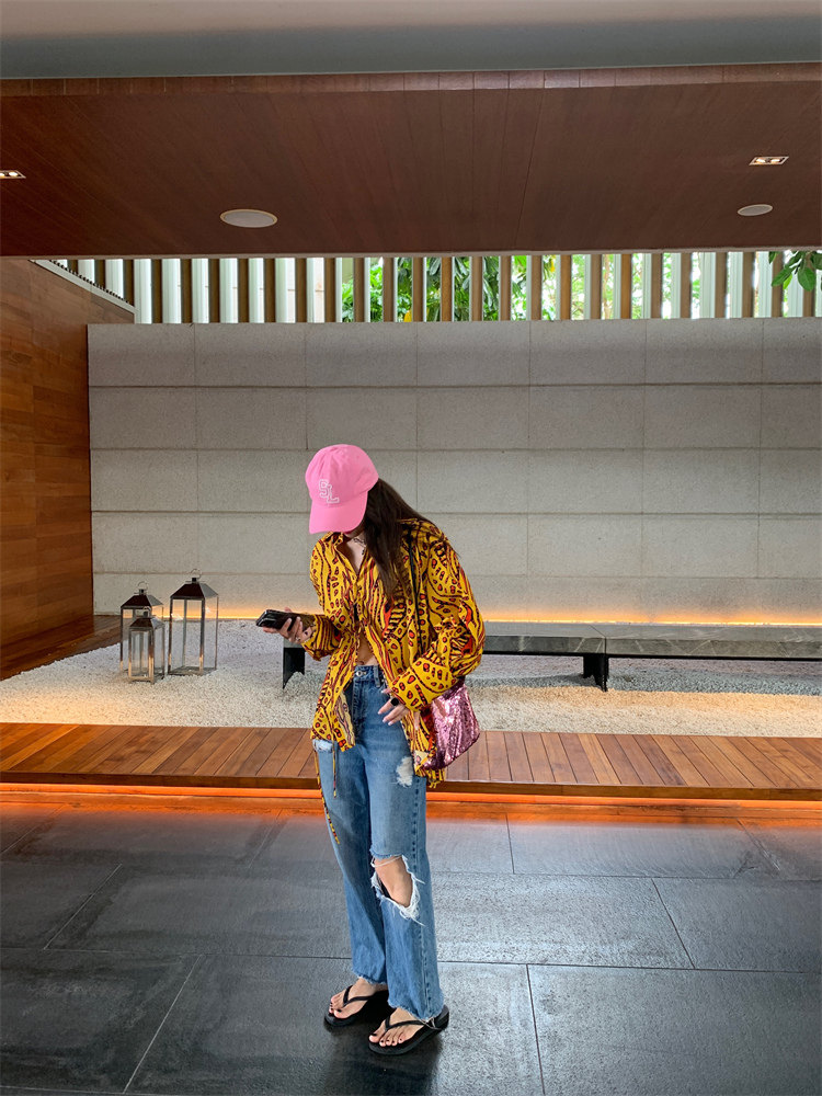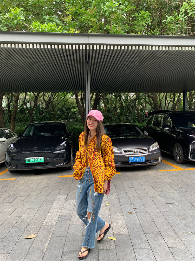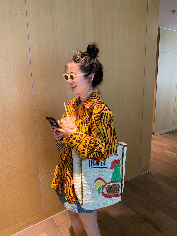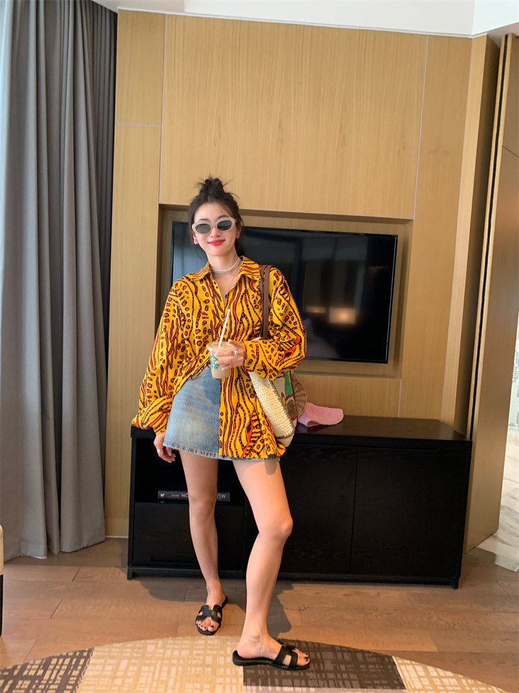 這款襯衫的豹紋區別于普通棕色豹紋,是一個黃色調的花斑豹紋!