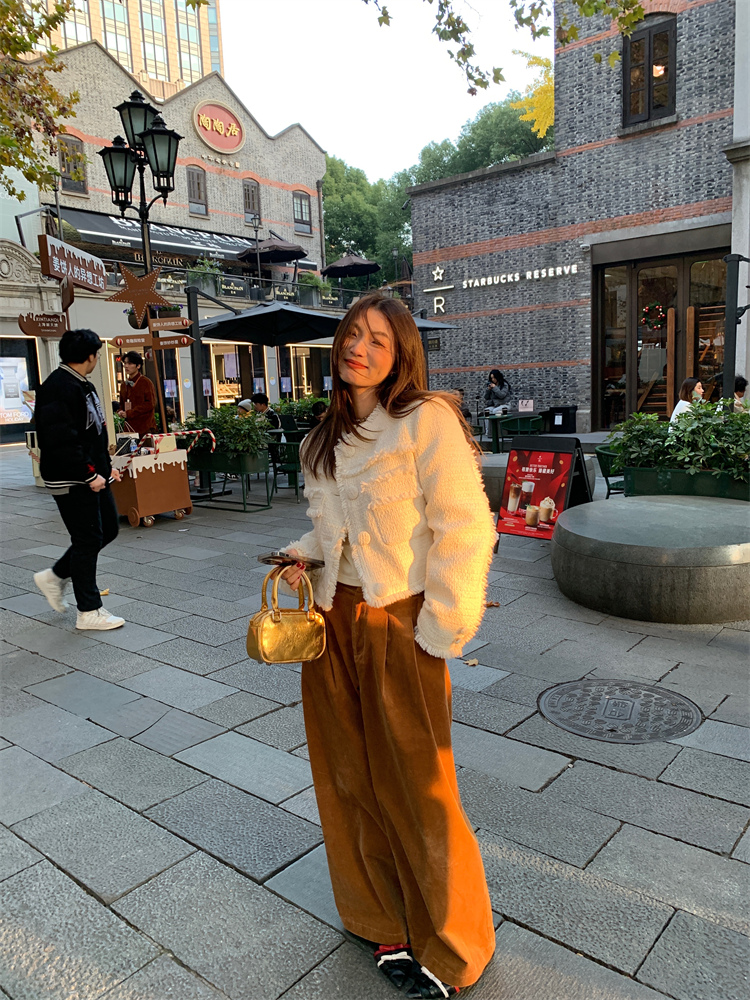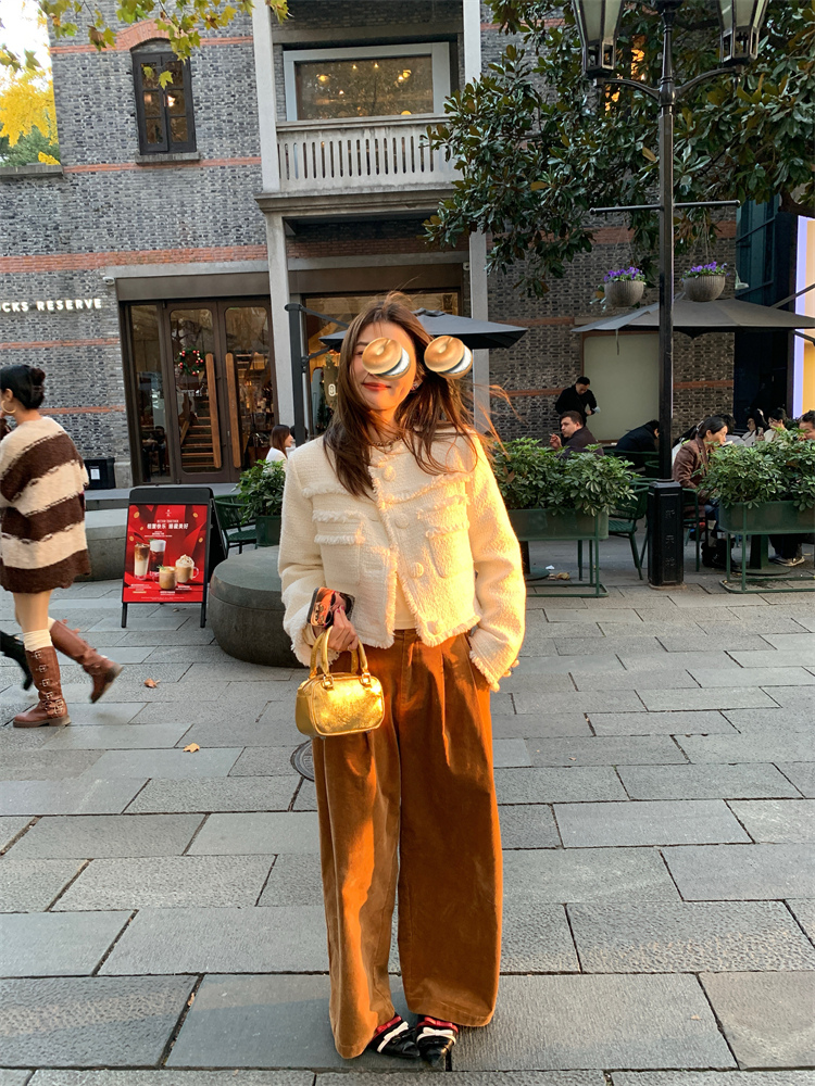 日常搭配闊腿褲,里面搭配件白/黑T,街頭又優雅~