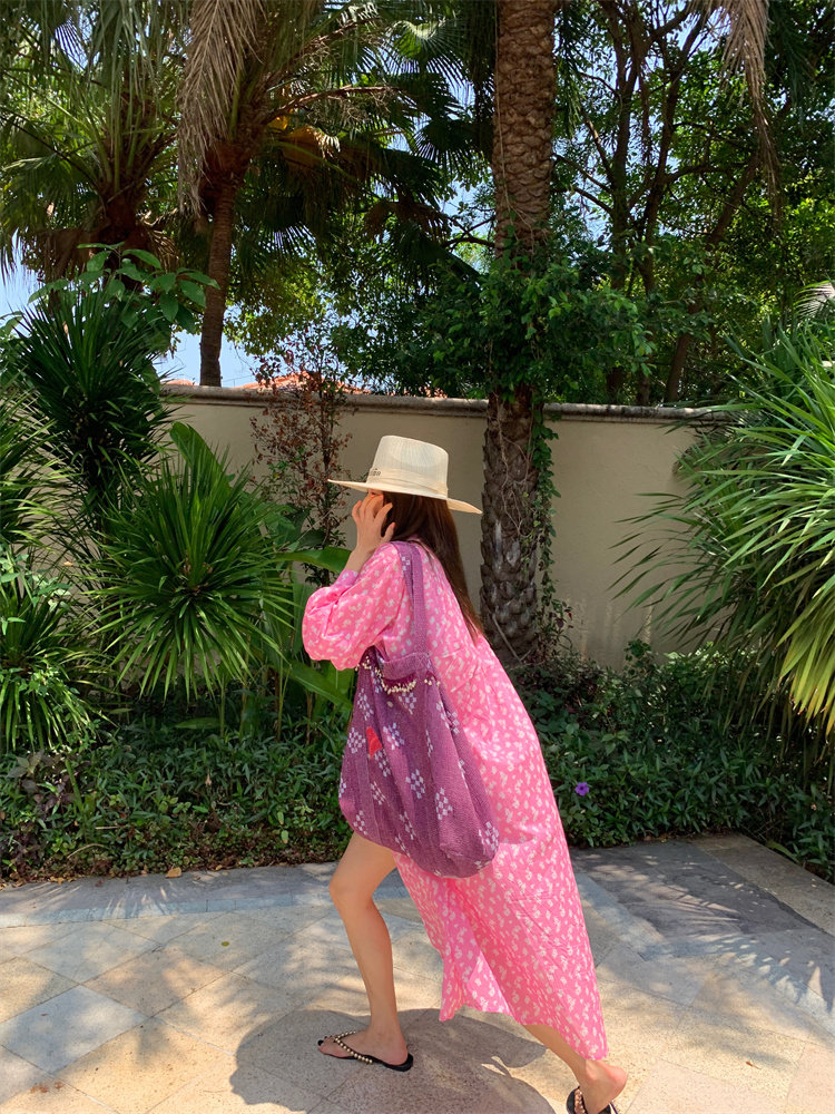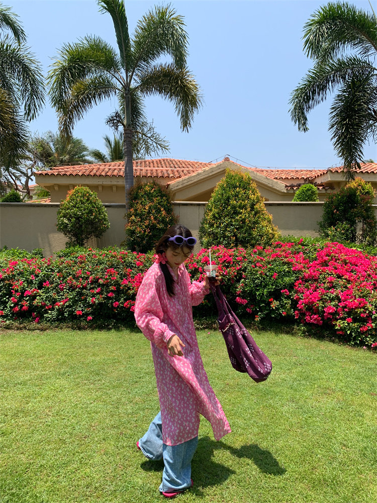 這款裙子的面料是那種hen輕薄細膩的棉印花料,手感hen是輕薄!
