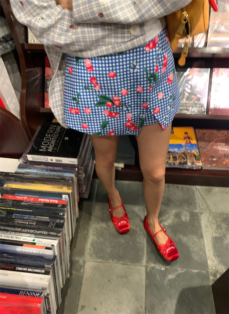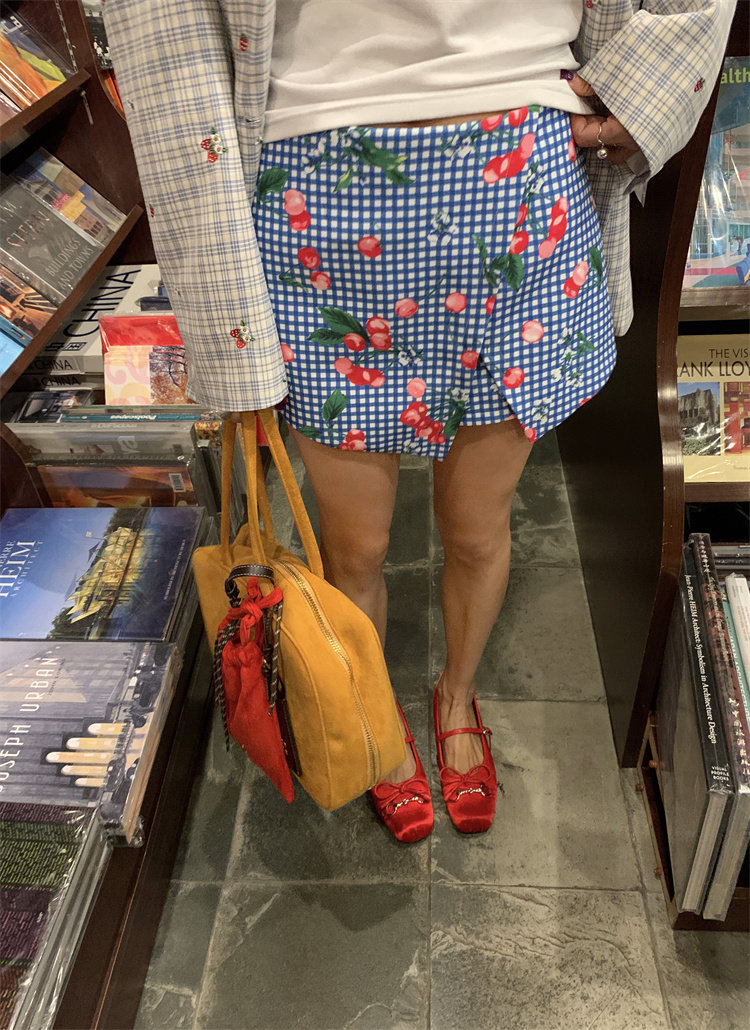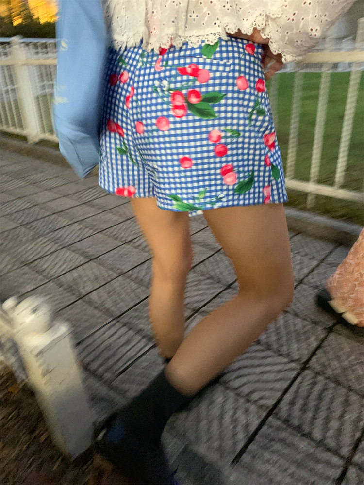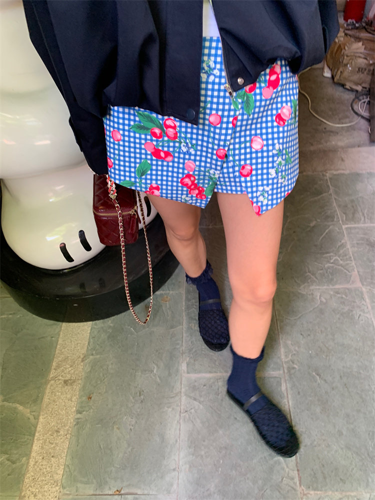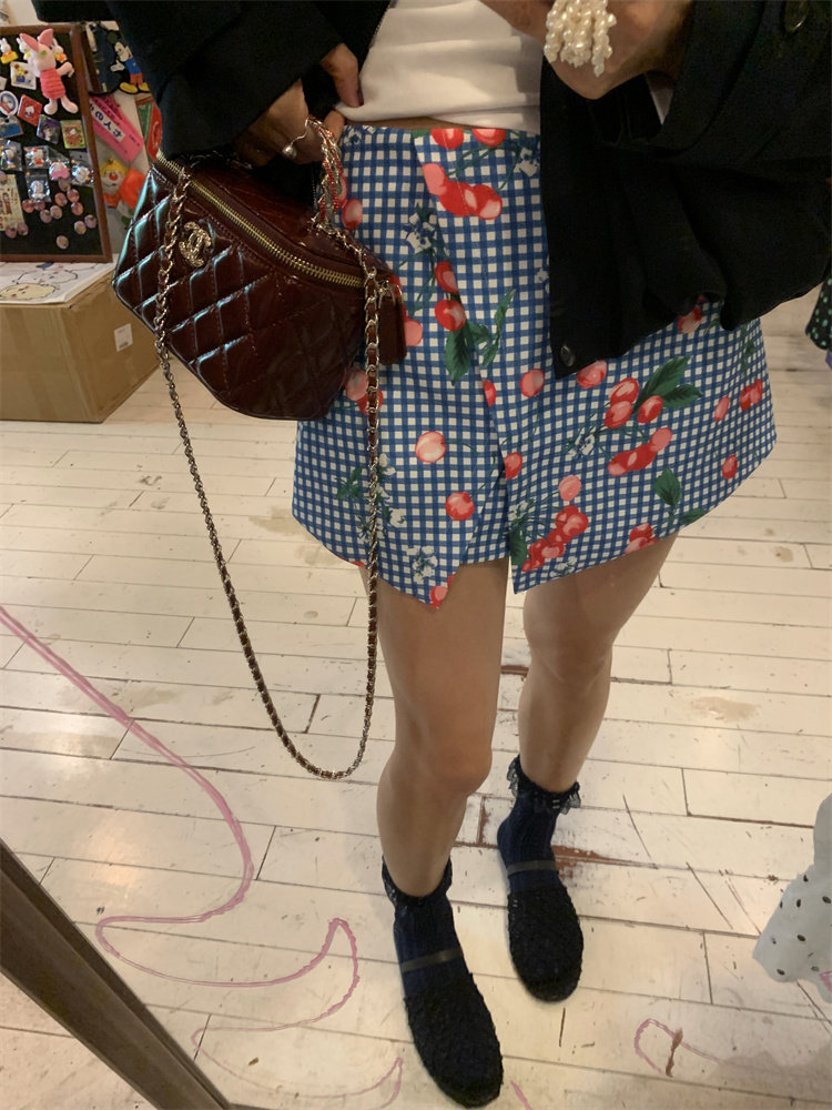 褲裙前片的設計也hen有個性,不是常規一整片的,而是做了兩片斜角的設計!