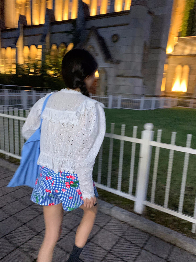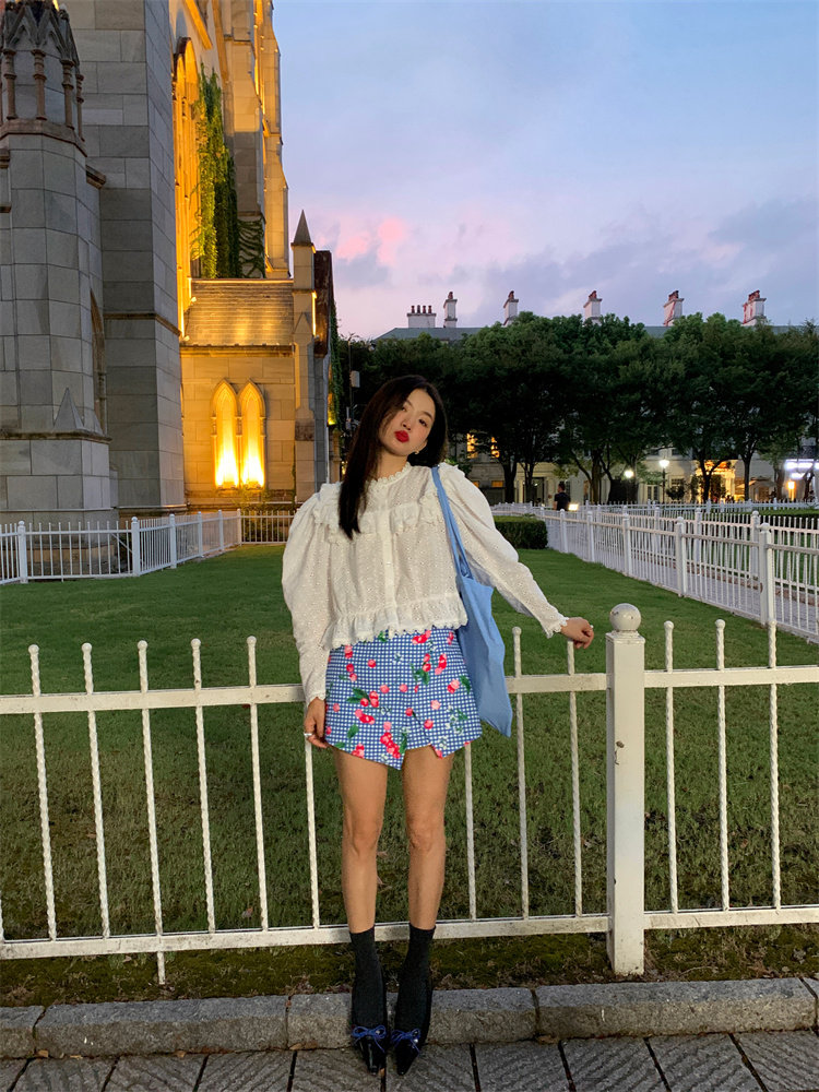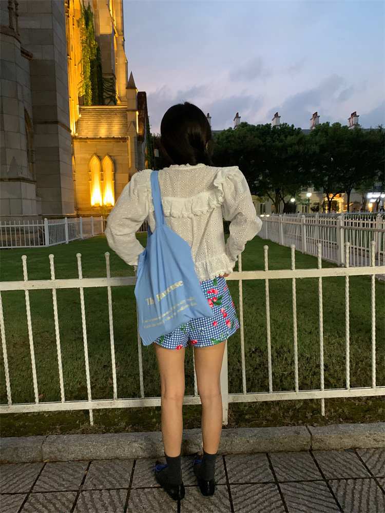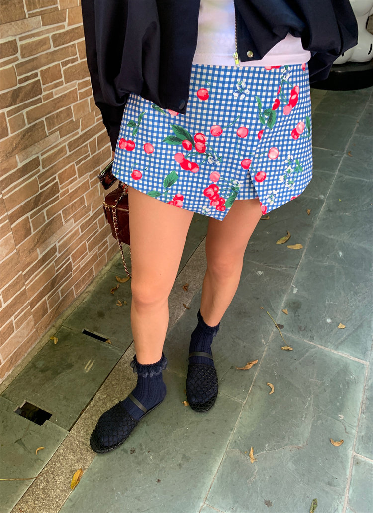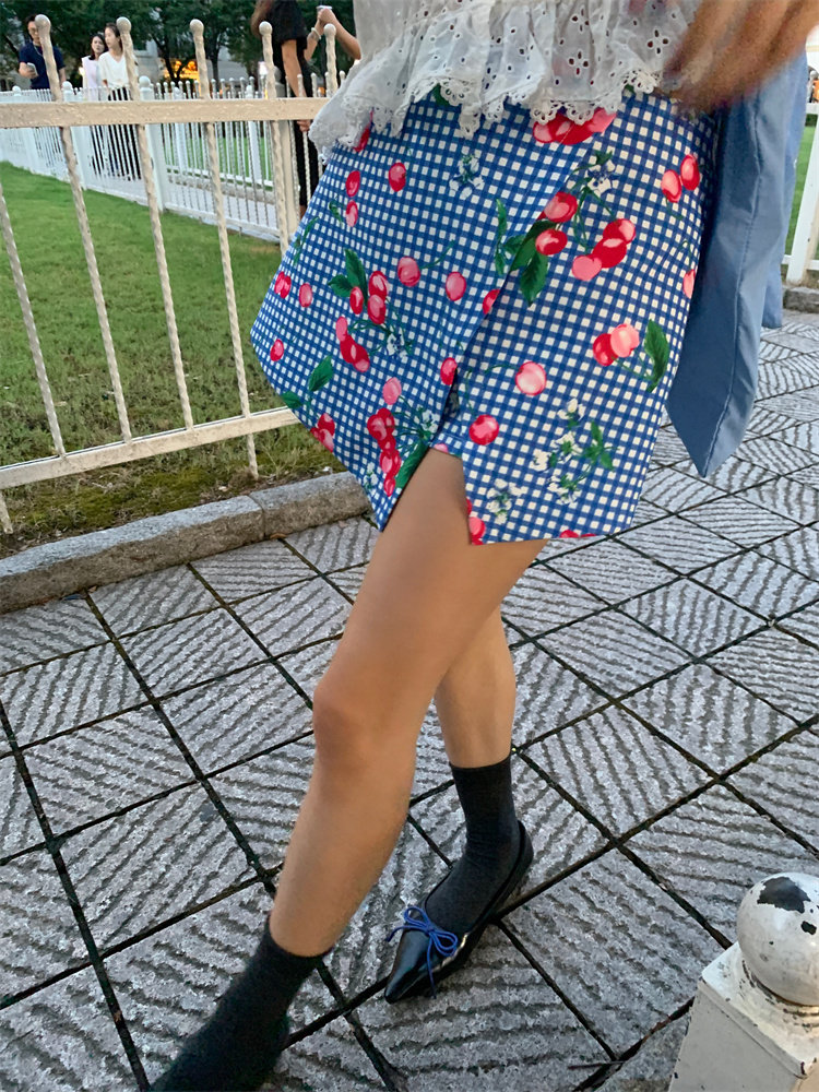 褲裙前片的設計也hen有個性,不是常規一整片的,而是做了兩片斜角的設計!