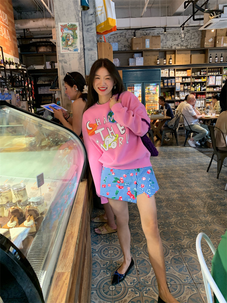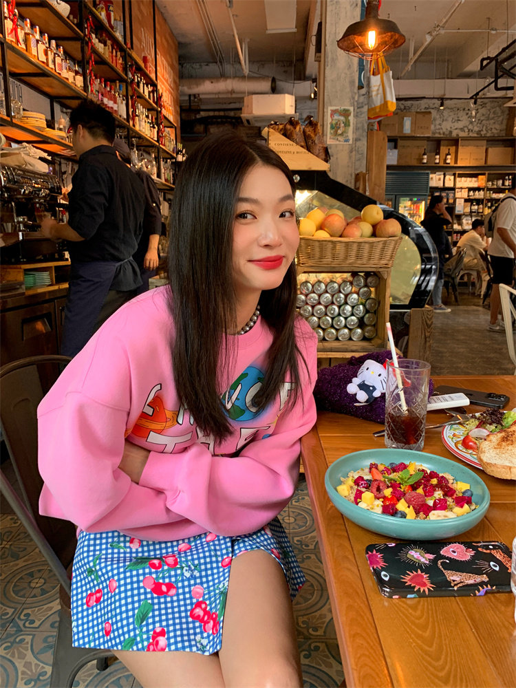 搭配上的話,像tee、襯衫、吊帶、小衫,春秋季搭配毛衫那也是jue jue子~