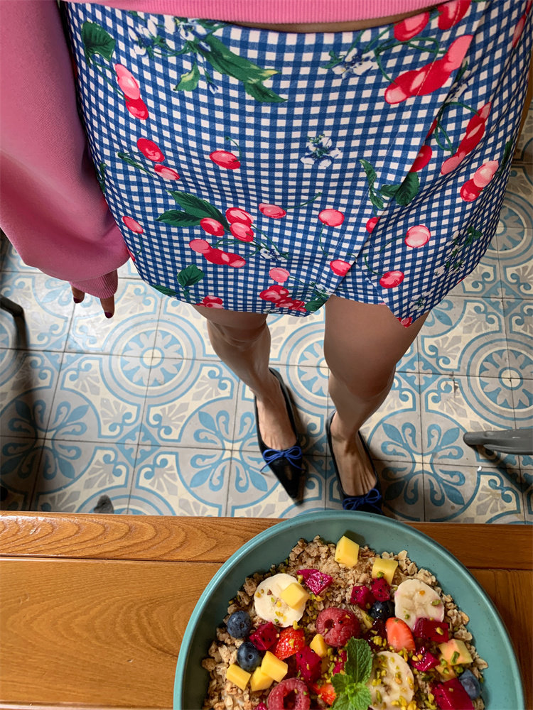 選用的是一種名為彩云斜的彩色印花面料,顏色飽和度高,吸睛靚麗!