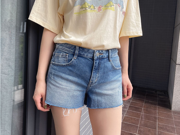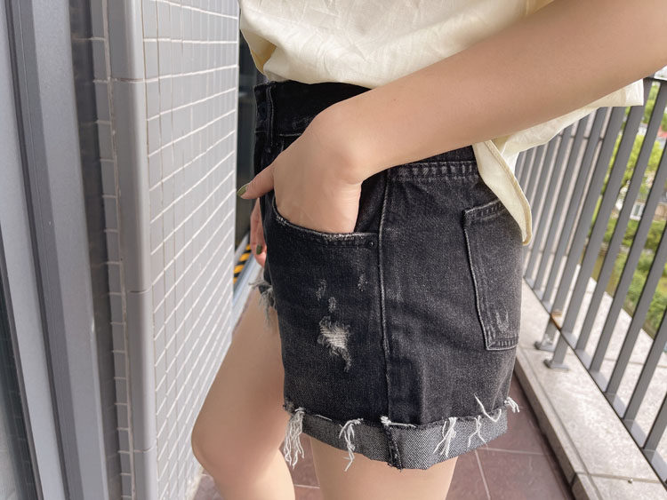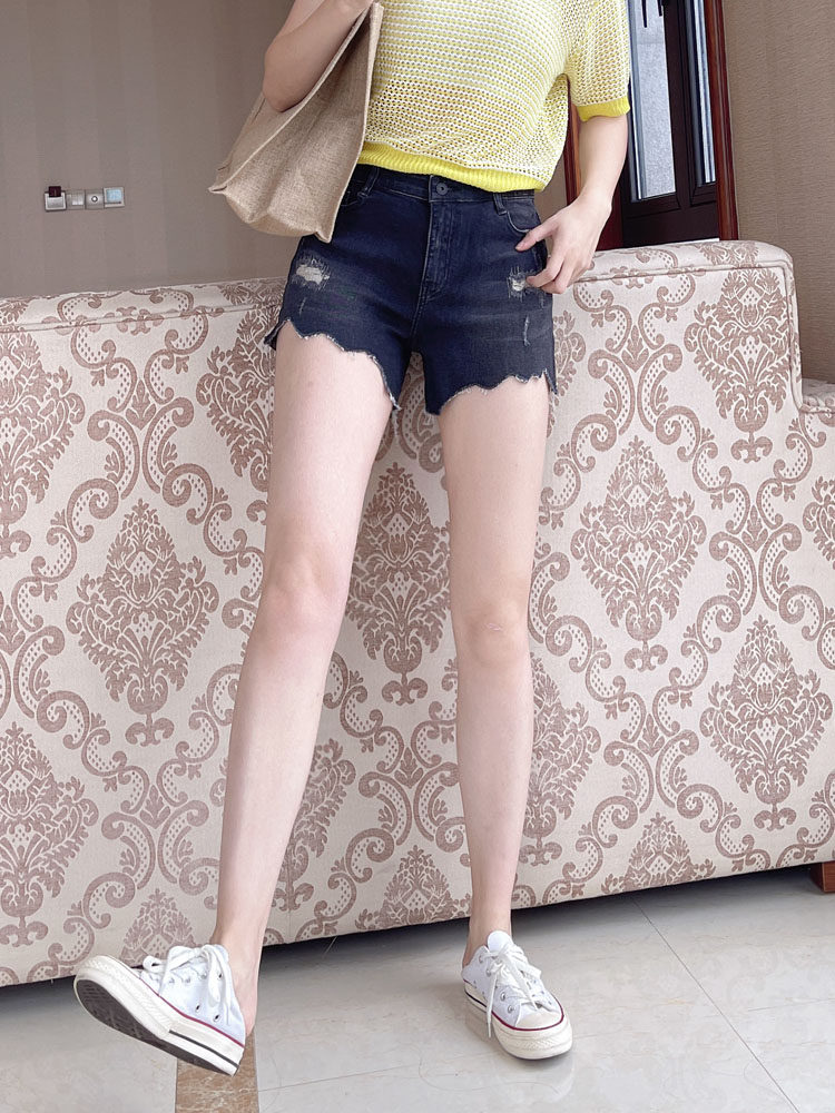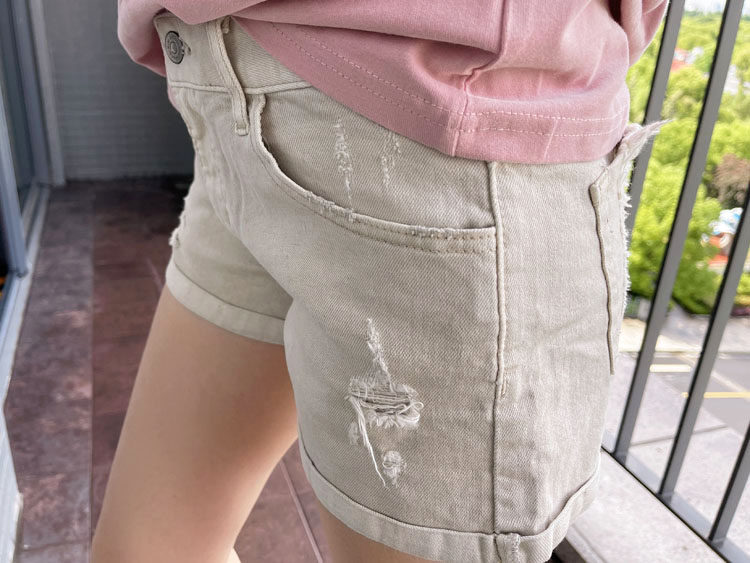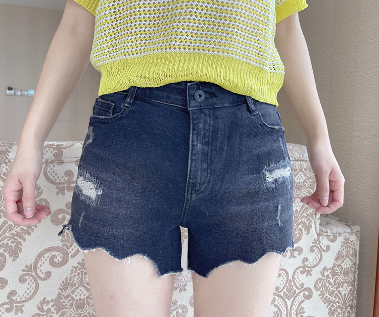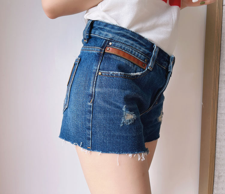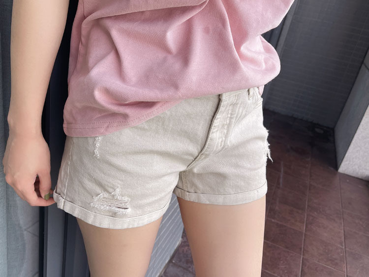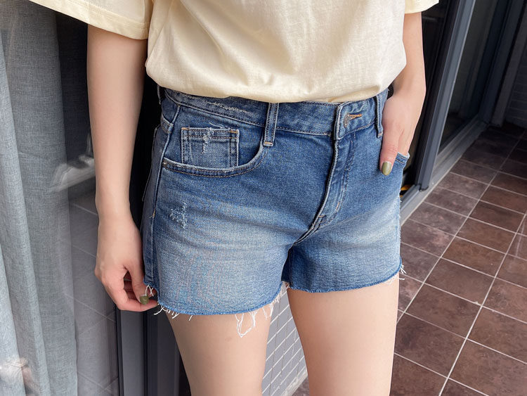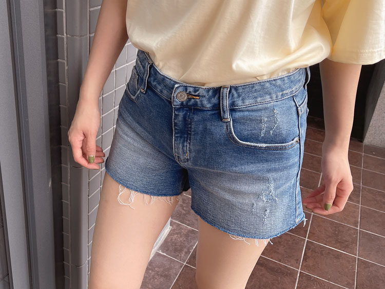 2021夏季新款熱褲,超顯瘦假破洞牛仔短褲