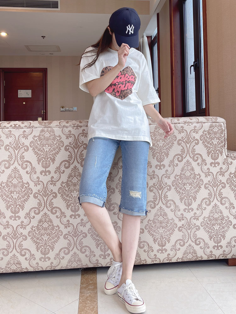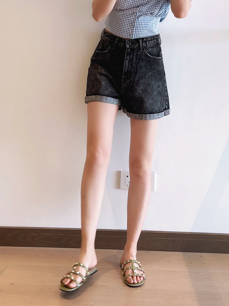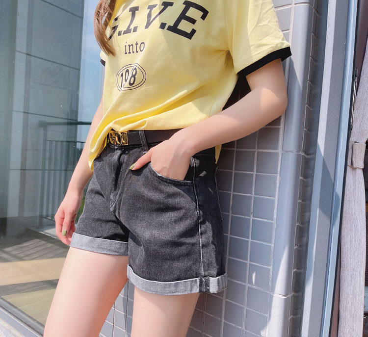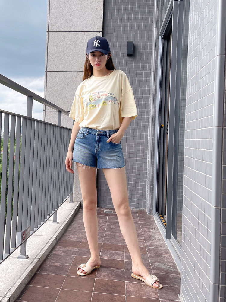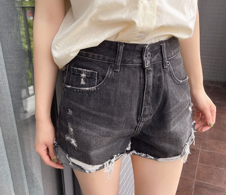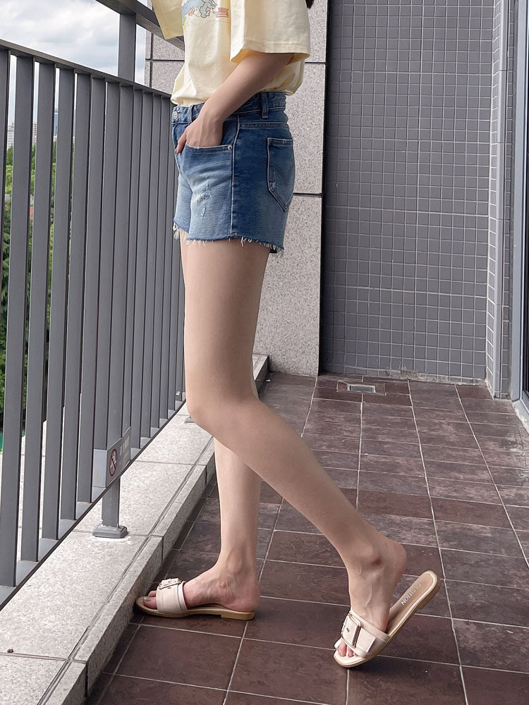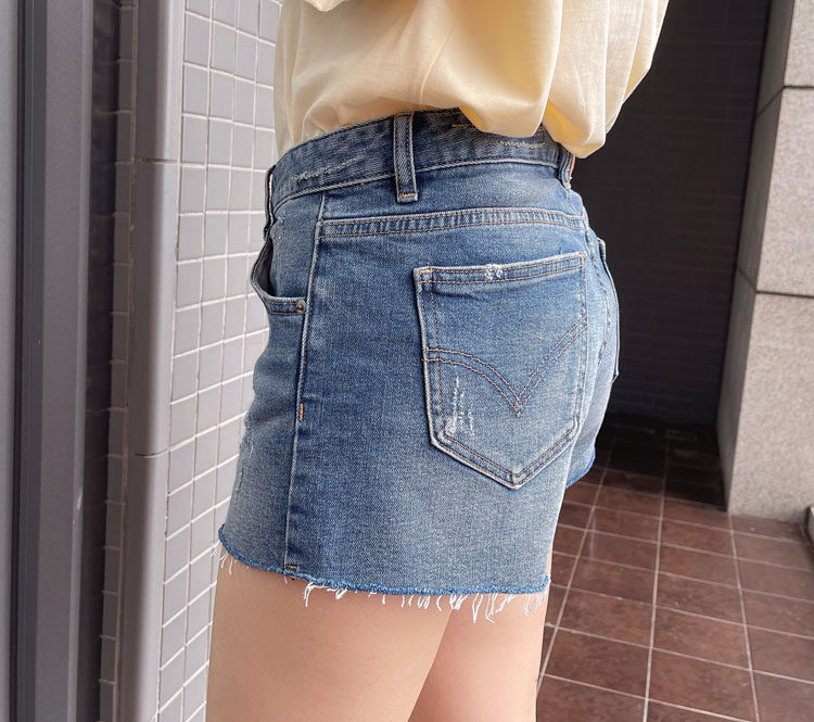 2021夏季新款熱褲,超顯瘦假破洞牛仔短褲